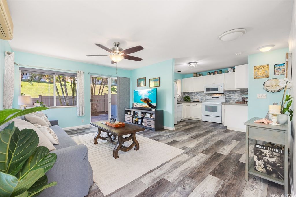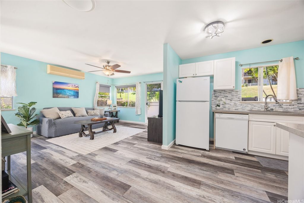 Welcome to your meticulously maintained retreat in lush Launani Valley! This bright 3-bedroom, 2.5-bath attached home features split air conditioning and stylish vinyl flooring, enhanced by modern light fixtures and ceiling fans. Set on an end lot, ti offers stunning views and a private, fenced yard"” perfect for gatherings. Enjoy a two-car garage and driveway with guest parking access. Located just minutes from Schoolfield, Wheeler AFB, H2 Highway, and the renowned Leilehua Golf Course, you'll benefit from unparalleled convenience. The community boasts tennis courts and adelightful playground, ensuring plenty of options for fun and relaxation. Just a short drive away, the breathtaking North Shore beaches and vibrant Honolulu town await. Don't miss out on this stunning home!