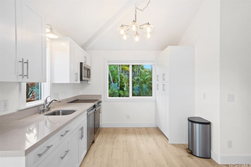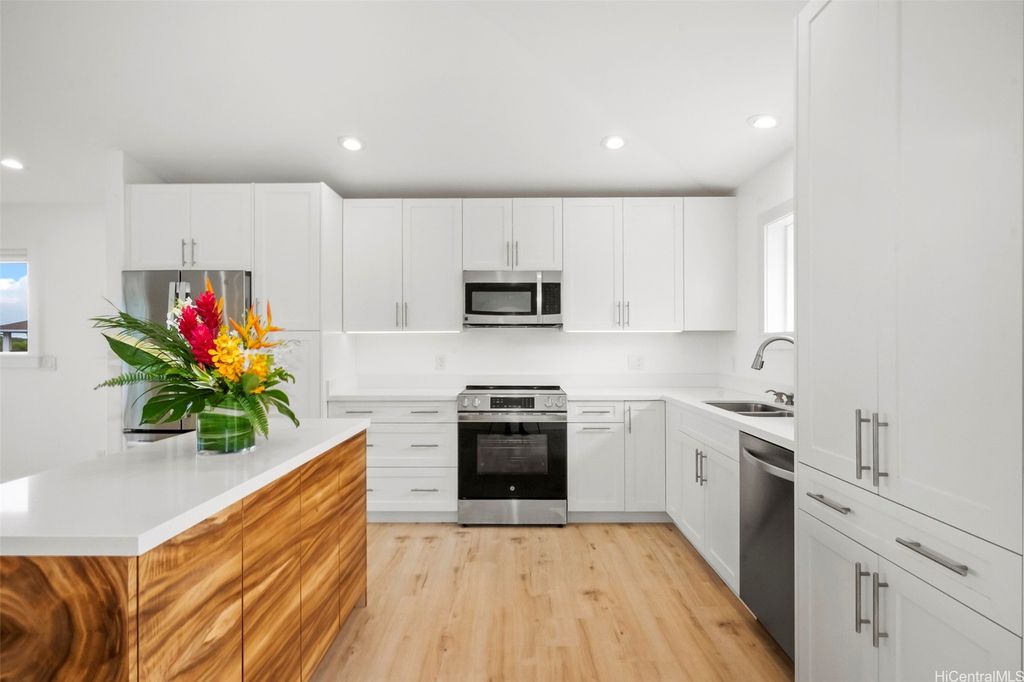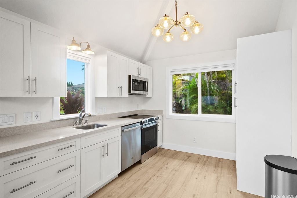 Fully renovated beach-style 3 bd, 2 ba home, only a short stroll to one of the finest beaches on Maui, located in Kamaole Heights in Kihei. Stunning views of West Maui Mountains, Haleakala, Kaho'olawe island, and gorgeous west facing sunsets. Property includes a permitted 2 bd and 1 ba ohana, and an additional 1 bd and 1 ba living space. The main home and ohana have new custom kitchens. The kitchen in the home showcases a tropical monkeypod island and has wide drawers and tall cabinets for extra storage. The ohana also has extra storage cabinets and all new appliances. The main home has new ducting for the central A/C. The ohana has new split A/C with 2 units and a fully insulated ceiling for cooling. A drop-down ceiling was added for extra soundproofing. Interior upgrades to all 3 units include new flooring, bathroom tiles and counter tops, windows, doors, and window coverings. Exterior upgrades include a rock wall, landscaping, pool transformation, new stairs and deck, paint, and concrete resurfacing. Two car garage with laundry. 54 PV panels keep monthly electric cost around $32 All comments, data is provided by seller or seller's representatives.