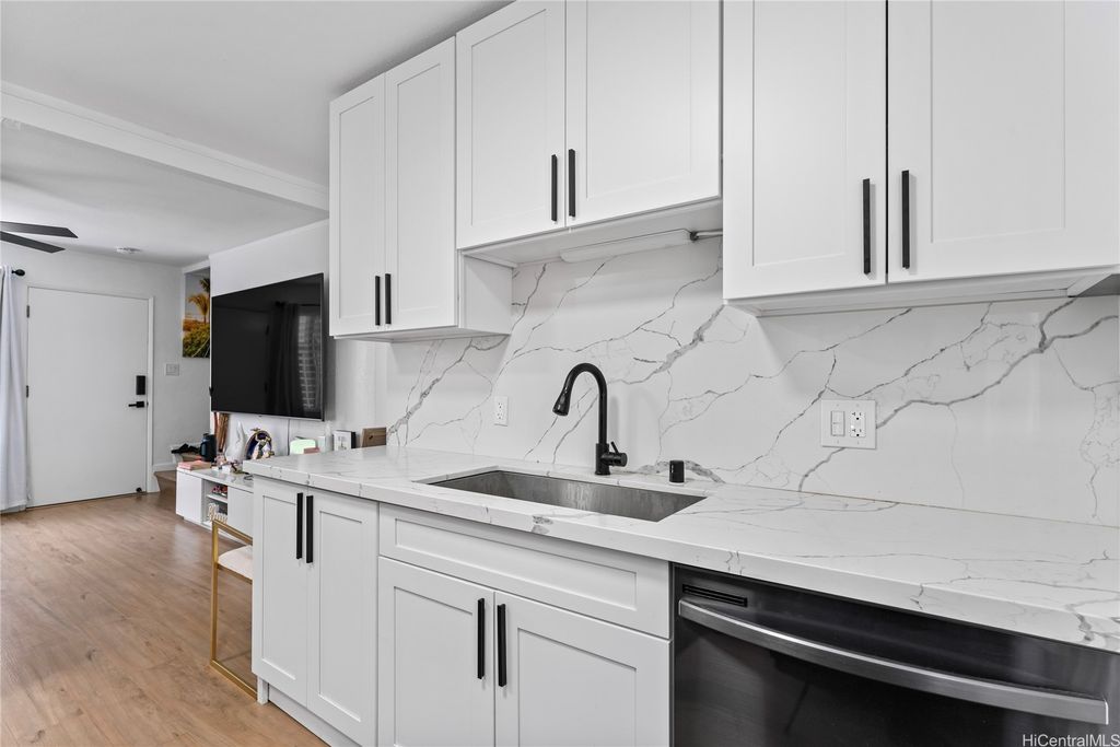 This beautifully 2-bedroom, 1.5-bath townhome offers the perfect blend of comfort, style, and convenience. The home features a updated kitchen with sleek stainless steel appliances, quartz countertops, and modern cabinetry, along with durable vinyl plank flooring throughout. A reserved parking stall just steps from the entrance adds to the convenience. Ideally located in a vibrant neighborhood, the townhome is close to shopping centers, restaurants, and local parks. Pearl City Shopping Center, featuring stores like Don Quijote and Daiso, is just a 15-minute walk or 4-minute drive away. Additionally, Pearl Harbor Naval Base is only a short drive. With easy access to public transportation, major highways, and great schools, this home is perfect for first-time buyers, or investors seeking a prime location.