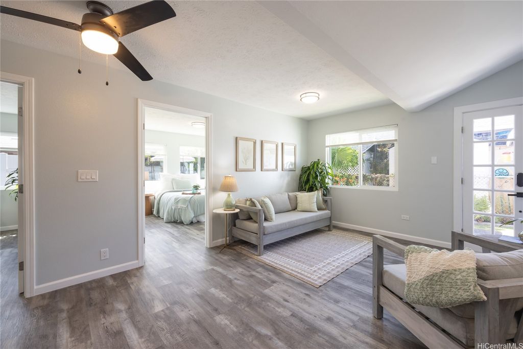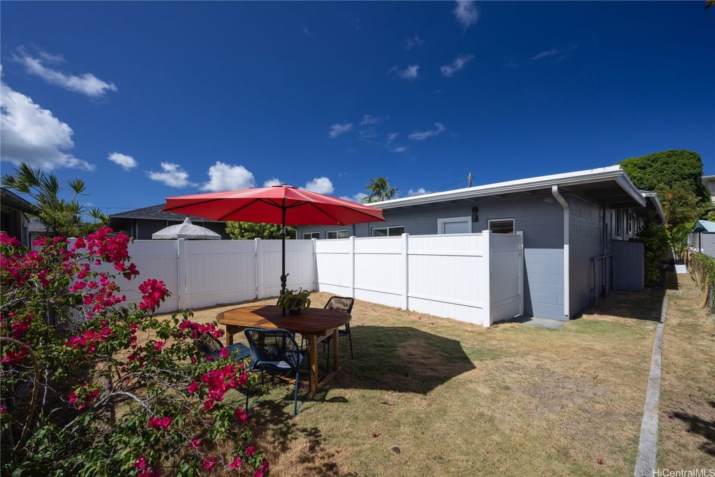 Rare 2.75% VA Assumable Opportunity in Kailua! Fall in love w/ this beautifully renovated home featuring a flexible floor plan perfect for multi-generational living or rental income. Main home offers a large open kitchen/living area, 3 bedrooms / 1 bath, LVP flooring & vinyl windows throughout. Attached is a spacious 2 bedroom/1 bath unit w/ its own kitchenette, laundry room and private backyard - ideal as a rental, guest suite, or extended Ohana space. Every detail has been updated - the home underwent a complete renovation in 2021, including splits, flooring, kitchens, and baths, and a new roof was installed in 2023. A large enclosed workshop off the 2-car carport provides room for tools, surfboards, bikes & all your lifestyle gear. The location is hard to beat - a short stroll to shops, restaurants & a quick bike or walk to world-famous Kailua Beach. Don't miss your chance to secure this low 2.75% rate & enjoy the best of island living! PI pmt/mo is $5860 & current Gap is ~$281k. Secondary financing may reduce Gap to ~$160k. Recently producing $6,700/mo rental income, Open Sat, Oct 18th 10AM-1PM.