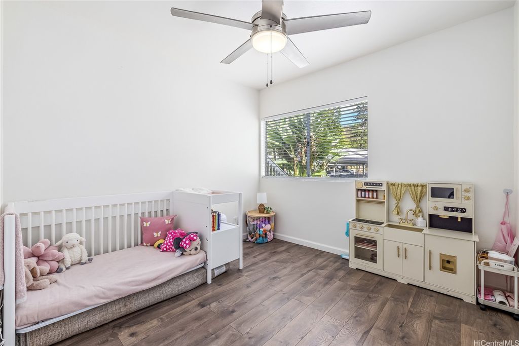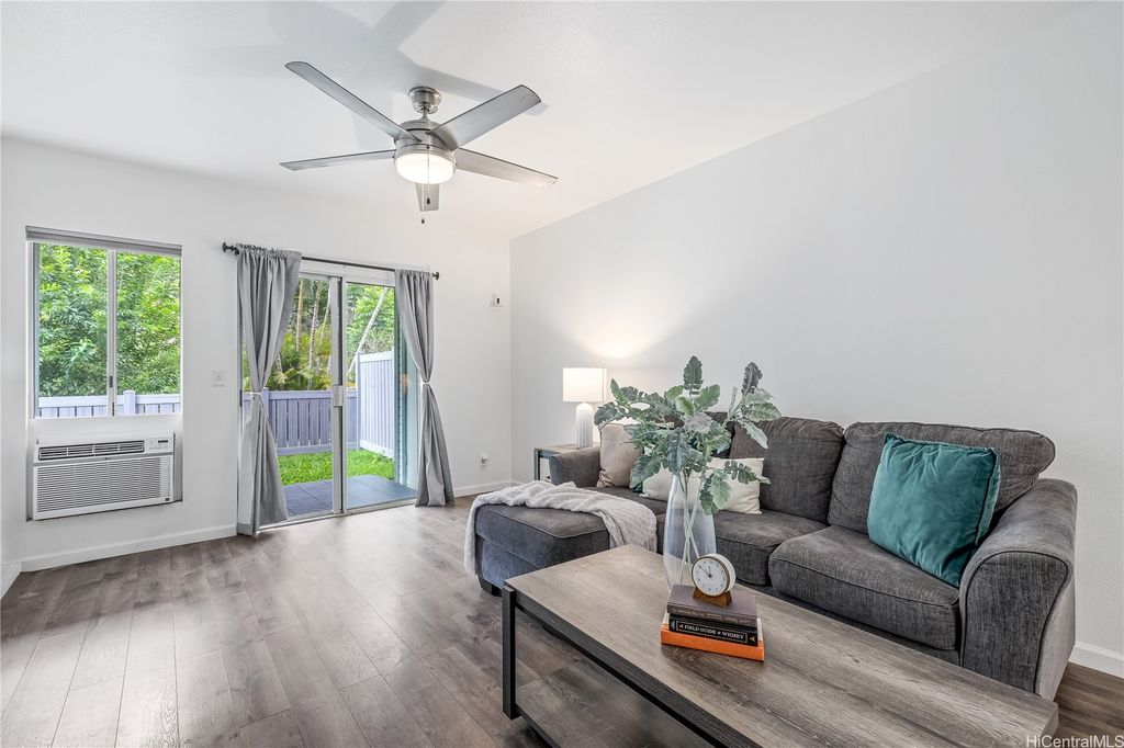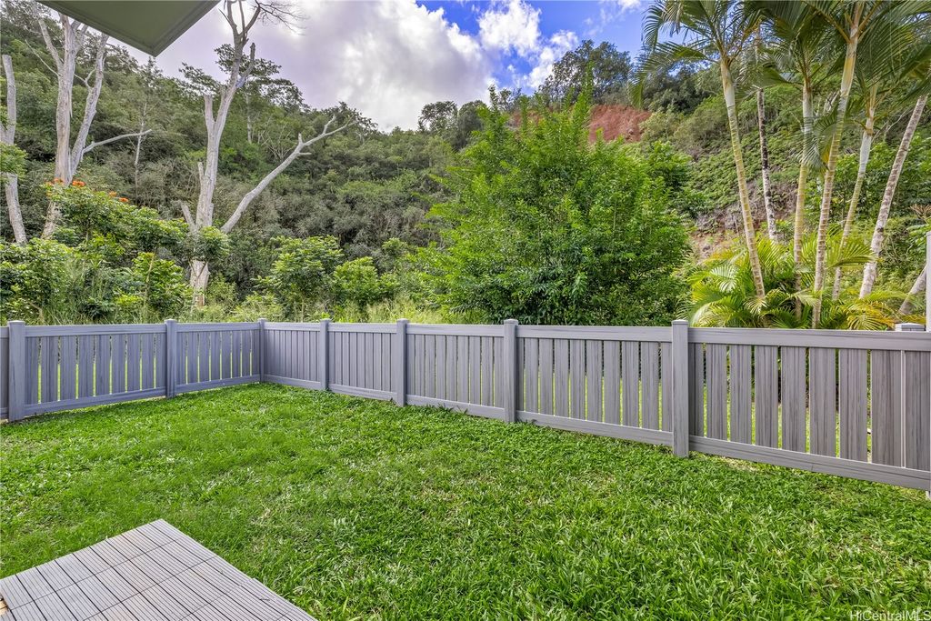 Welcome to Streamside at Launani Valley! Nestled in the serene and cooler climate of Launani Valley, this beautifully remodeled, ground-floor corner unit offers the perfect blend of comfort and nature. Featuring 3 spacious bedrooms, 2 modern bathrooms, and an open-concept living, dining, and kitchen area, this single-level home is designed for easy living.Inside, you'll find stylish vinyl plank flooring throughout the living and bedroom areas, while the kitchen and bathrooms boast ceramic tile flooring and brand-new vanities. The kitchen is equipped with sleek, stainless steel appliances, offering both function and elegance.One of the standout features of this unit is the fully enclosed, wraparound yard "” perfect for outdoor relaxation or entertaining. Just beyond your fence, a bonus yard and BBQ space await, while the sounds of a private stream and breathtaking mountain views provide a tranquil backdrop.As part of the prestigious and award-winning Mililani community, you'll enjoy the best of both worlds "” a peaceful, nature- filled retreat just minutes from the conveniences of town. Don't miss out on this incredible opportunity to own a piece of paradise in Launani Valley.