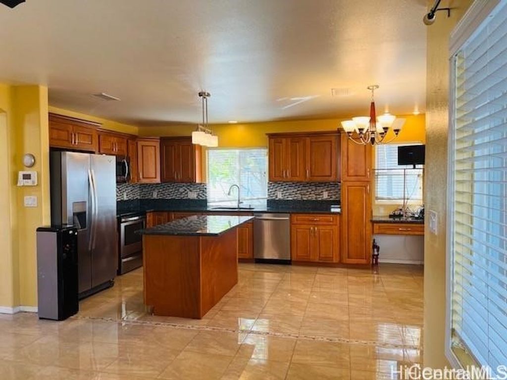 Desirable Ocean Pointe with 5-bedrooms/4-full baths with attached 2-car garage. A separate 5th bedroom and full bath by the garage. A bedroom and full bath on first floor, nice open living room with vaulted ceiling and a family room that can be used as formal dining room. The spacious kitchen was renovated with lots of cabinet storage, and equipped with stainless steel appliances. Laminate wood floor throughout ; Central AC and low maintenance fenced around yard. Extended covered patio to entertain families and friends for barbeque. A small covered patio by the front entry door. Rent is $4800/month and all utilities are paid by Tenants.
