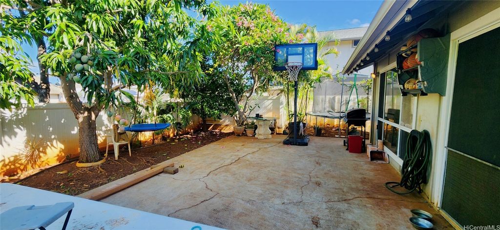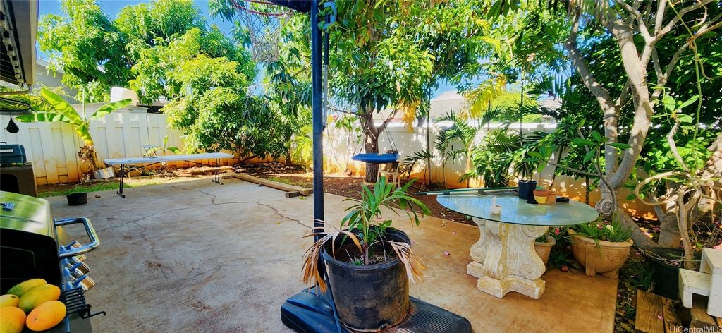 Excellent opportunity to customize this spacious 4 bedroom / 3 bath single-family residence. This home features a generously sized, first-floor layout, complete with a full bath and tons of storage space. Located in a cul-de-sac, this property boasts one of the largest lots in Sun Terra, featuring a fully fenced in wrap-around yard and an extended driveway capable of accommodating 3 - 4 vehicles. The back yard includes a plumeria tree, as well as mature fruit trees: 2 mango varieties, passion fruit, papaya, pomelo, and apple bananas.