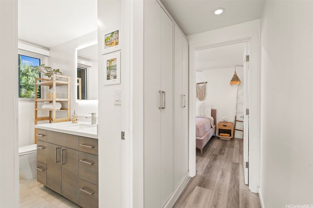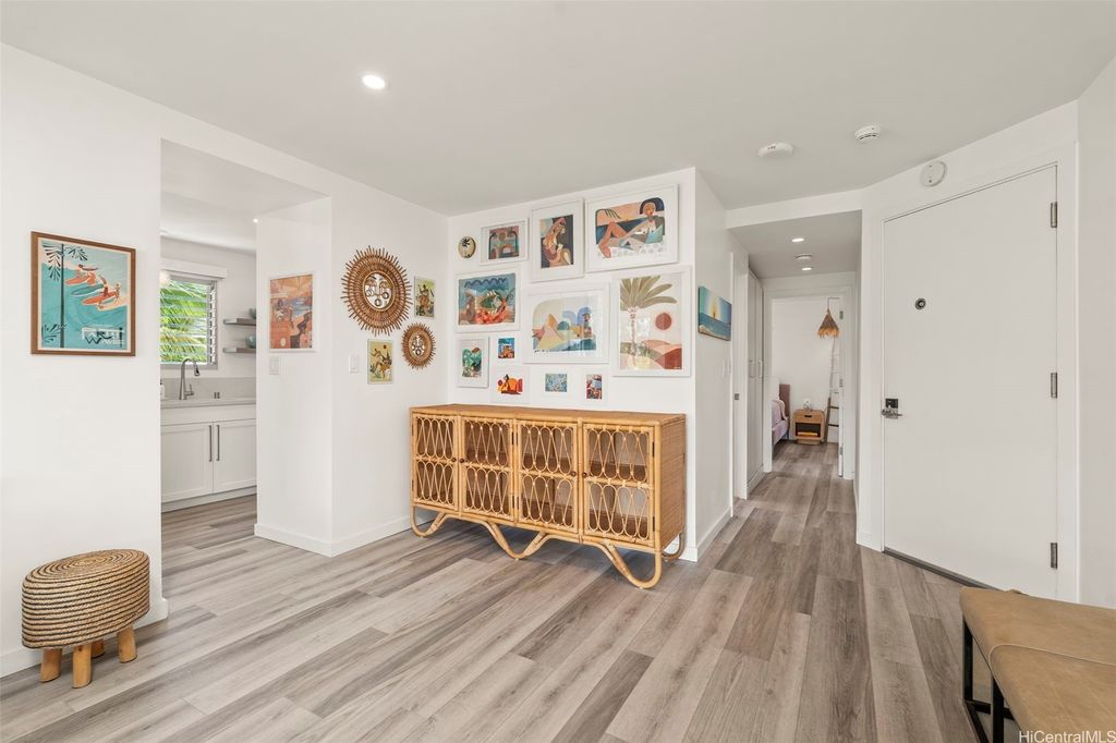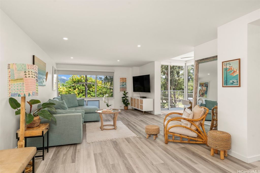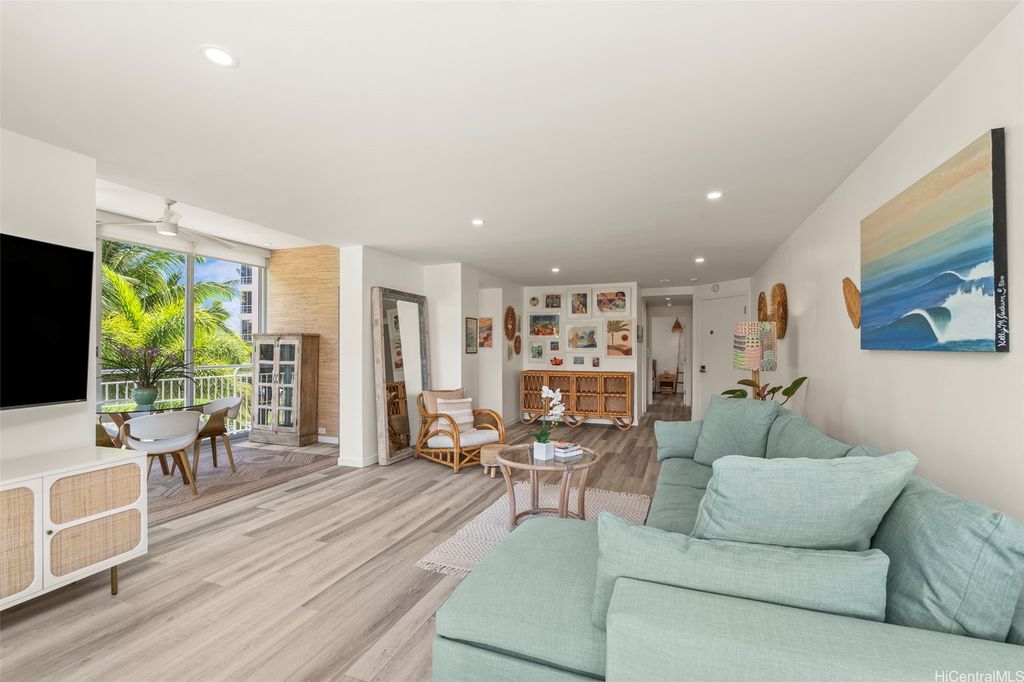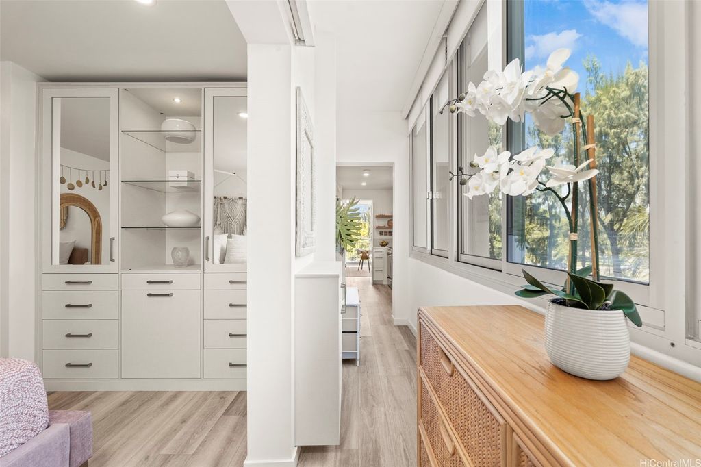 Highly regarded Diamond Head Apts. on Oahu's Gold Coast is an iconic building designed by renowned architect Vladimir Ossipoff. These apartments,in the much coveted Diamond Head neighborhood, offer resort-style living.Nestled in the shadow of DH crater steps from swimming, surfing,& snorkeling in the warm Pacific.Amenities include EV charging, porte cochere, a community grilling station, external storage units, laundry on the premises, dedicated parking,saltwater pool & a lounge area offering front row seats to spectacular sunsets. Just minutes from Waikiki's restaurants and nightlife, yet far enough to enjoy peace and privacy. The 1 bdrm,1 bath residence features a semi-private entry showcasing a collection of black and white images embodying past Island culture. Once stepping inside the apartment itself, you'll discover a tropical elegance of 1,100 sf of extensive first-class renovations, finishes, and furnishings. All rooms are enriched by peaceful lush views through new soundproof windows, of Kapiolani Park's beautiful atmosphere and serenity:The ancient Ironwood trees planted by the King, the historic Dillingham fountain, golden shower trees, and the lofty surroundings.