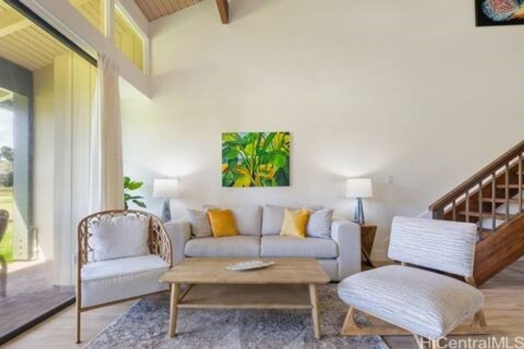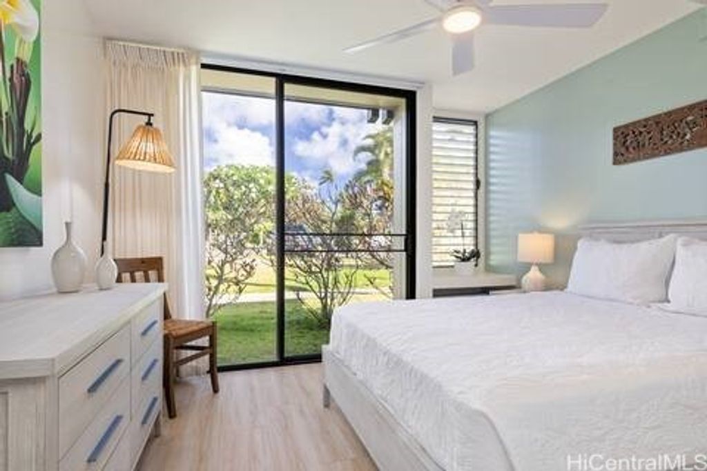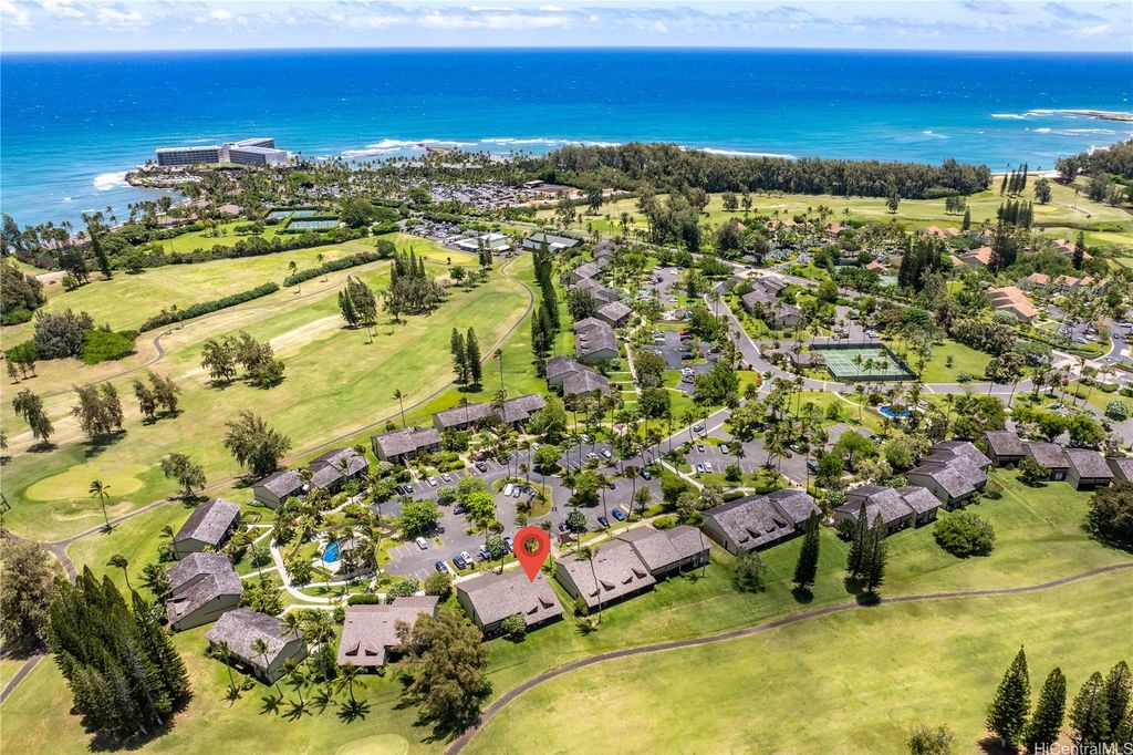 One of the only communities on the North Shore allowing short term vacation rentals. Come experience the oasis that is Kuilima Estates West. This luxury residence offers 2 bedrooms, 2 bathrooms, an additional spacious loft area, to sleep six - Add a sleeper sofa to now sleep 8. Over 1072 sqft of living space, complete with a covered lanai with serene golf course and stunning Koolau Mountain views. Embrace the quiet island lifestyle with access to three swimming pools, tennis or pickleball courts, and BBQ areas. Within walking distance to the 5-Star Turtle Bay Resort, picturesque beaches, dining, entertainment, this is an opportunity to embrace the best of Hawaii's North Shore lifestyle. Minutes from Lei Leis restaurant and Beach House by Roy Yamaguchi, Sunset Pool Bar, horseback riding, bike/hiking trails, and great surf and beaches. Adventure Awaits You or Guests - Hula Lessons,Deep Sea Fishing, Whale Watching, Surf Lessons, Helicopter Tours - All on the North Shore. Newly appointed with 2 AC window units and new paint throughout. Building was recently reroofed in 2025 with a fire resistant-shingle (Brava).