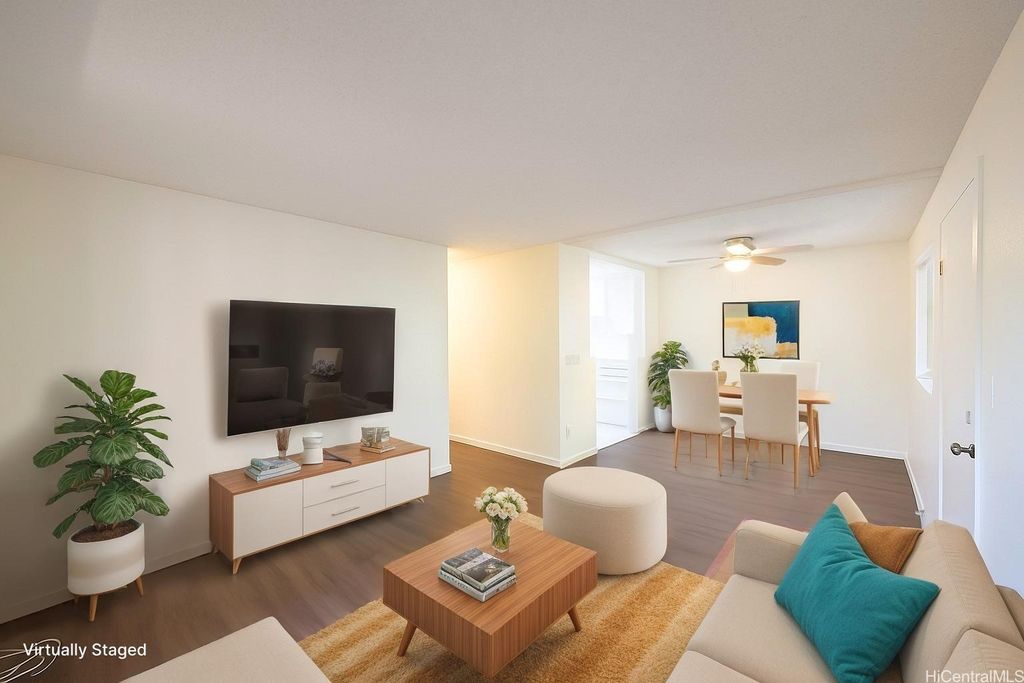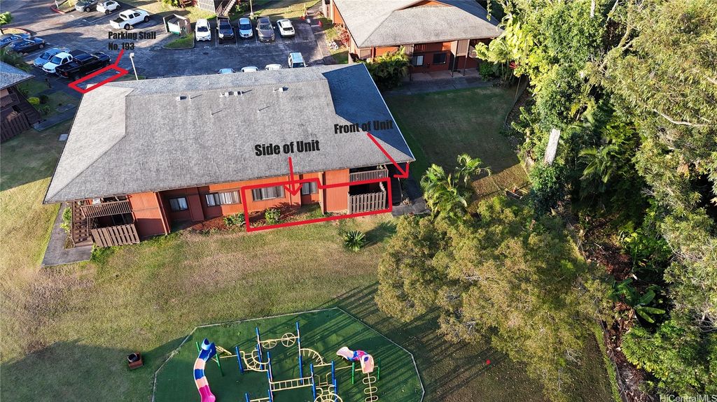 Located in Wahiawa Heights, this fee simple 2 bedroom/1 bathroom, corner end ground floor unit at Hidden Valley Estates offers country living near forested land away from the hustle and bustle of city life. Just minutes away from Schofield Barracks, Wheeler Army Airfield, Wahiawa Botanical Garden, schools, and shopping. Pet-friendly and includes two assigned parking stalls, as well as nearby guest stalls. Perfect for first-time buyers, investors, and those craving a simpler lifestyle.