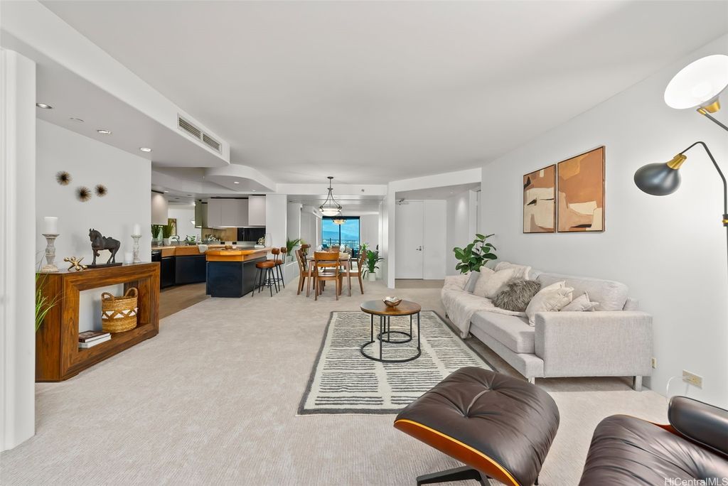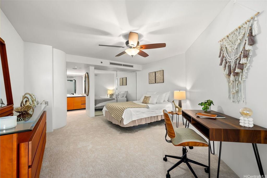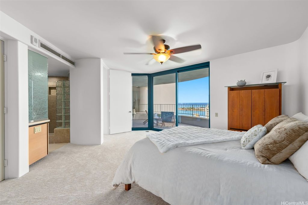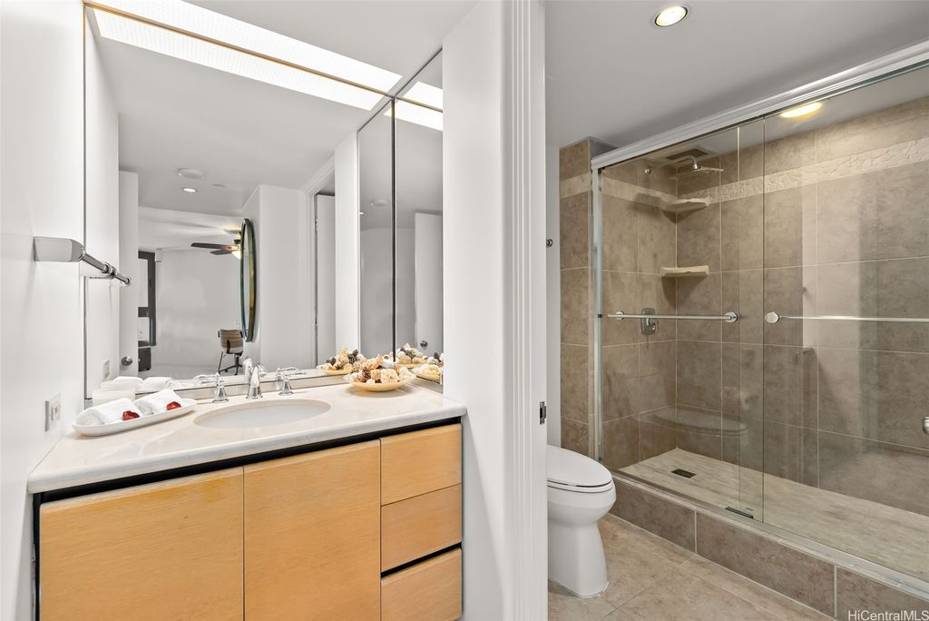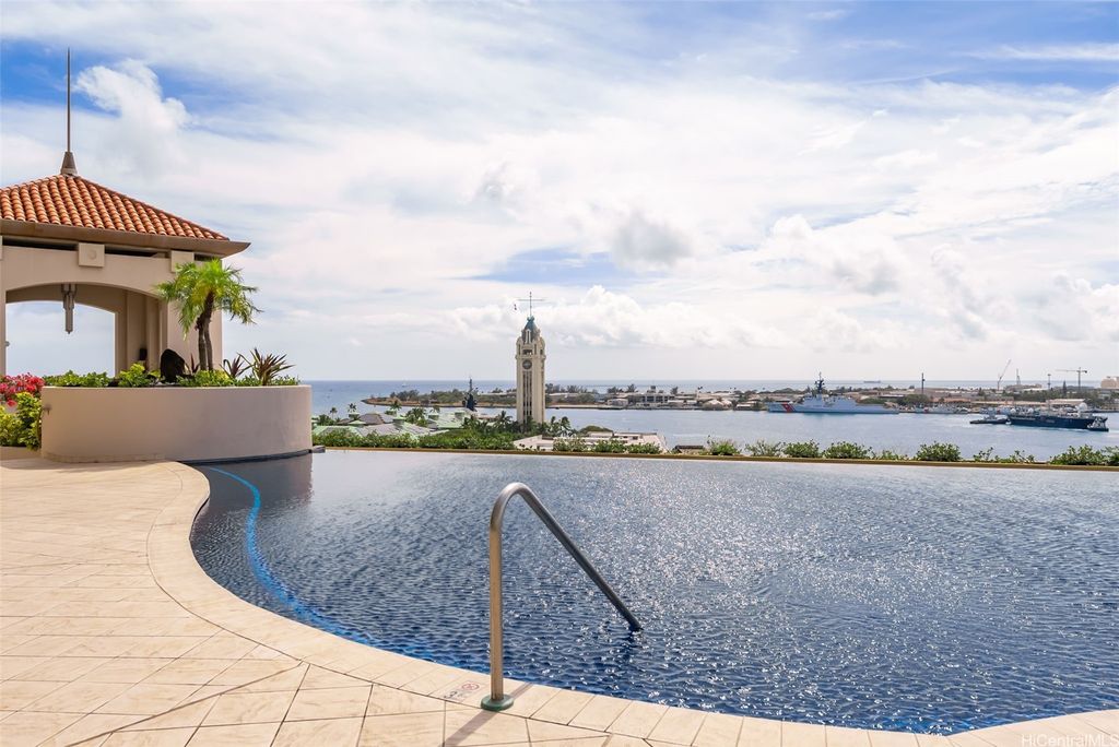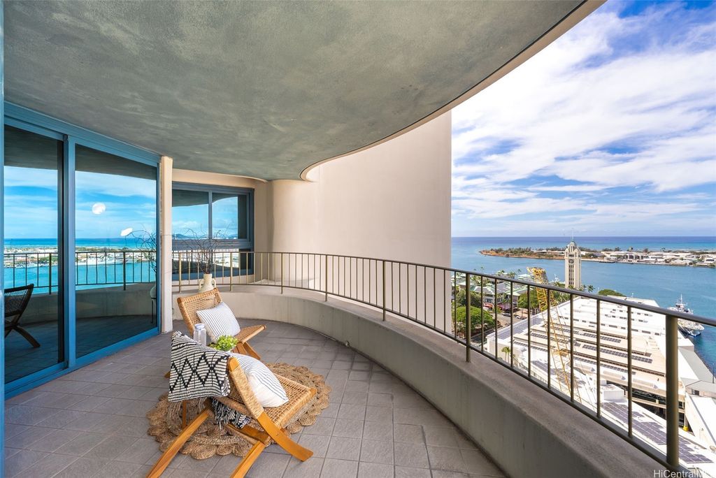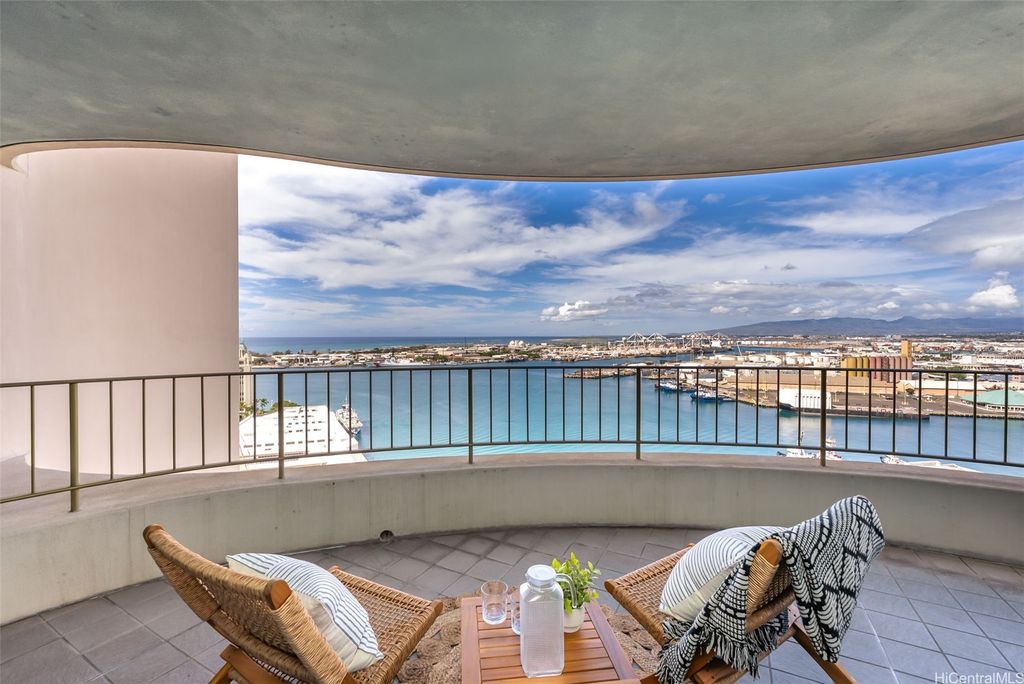 Waterfront gem in downtown Honolulu's iconic Harbor Court luxury condo - this high-floor unit offers a spacious open floor plan, floor to ceiling windows, two well-appointed bedrooms each paired with an en suite bathroom, and a generously sized lanai to enjoy stunning south shore Oahu views. Exuding refined living, each residential floor consists of just five units, and the 14th floor rec deck offers resort-style amenities - heated infinity pool, jacuzzi, al fresco bbq areas, conference room, rec space, fitness center, library, and of course an observation tower. Renowned Architect, Norman Lacayo's influence is seen in Harbor Court's landmark design elements - a monumental ground floor plaza, elegant fountains, and a tiered exterior form that artfully interacts with light and shadow. Abundant guest parking, an attentive residential manager, and 24-hr security ensure residents and their guests are taken care of. While surrounded by an abundance of downtown dining, shopping, and entertainment, a convenience store and fine dining restaurant, Pai, are also located in the lobby. Convenient, distinguished (and pet-friendly) - make this remarkable residence yours!