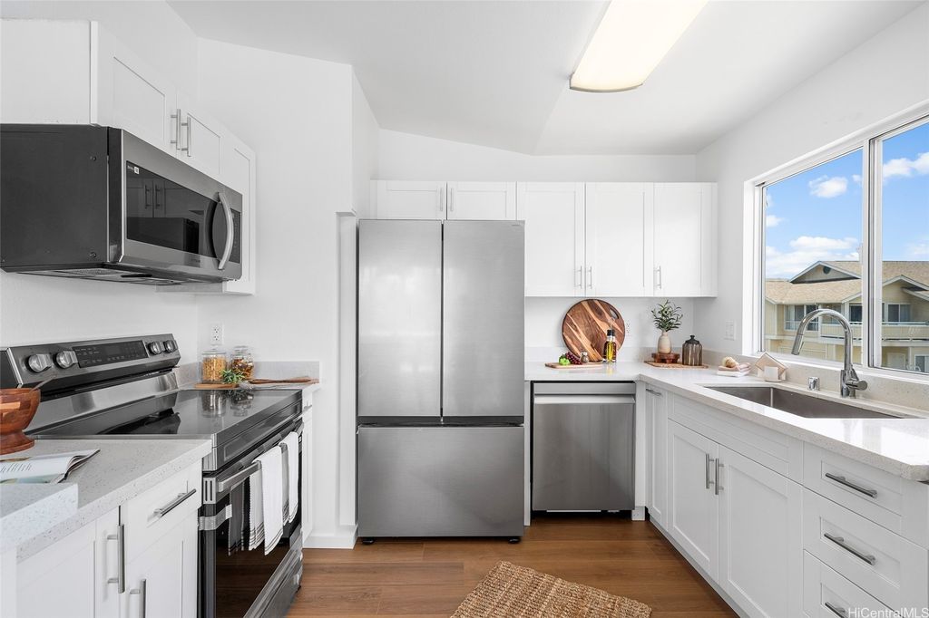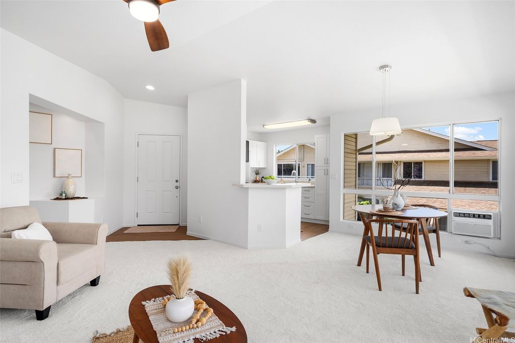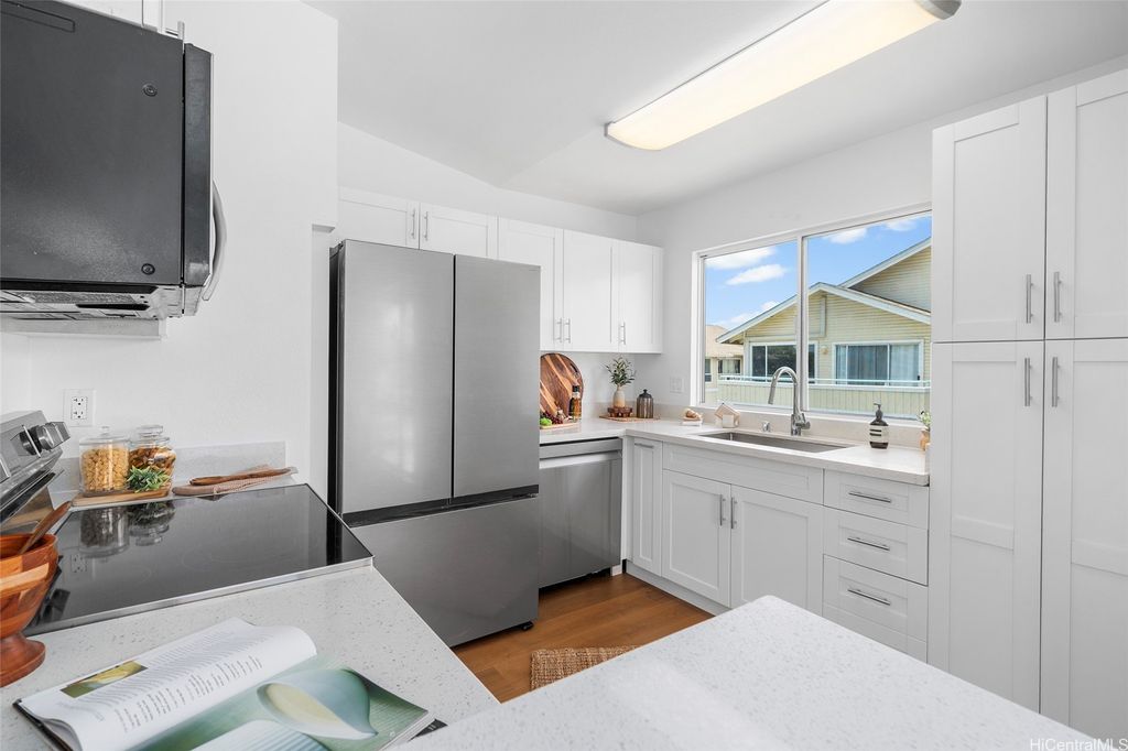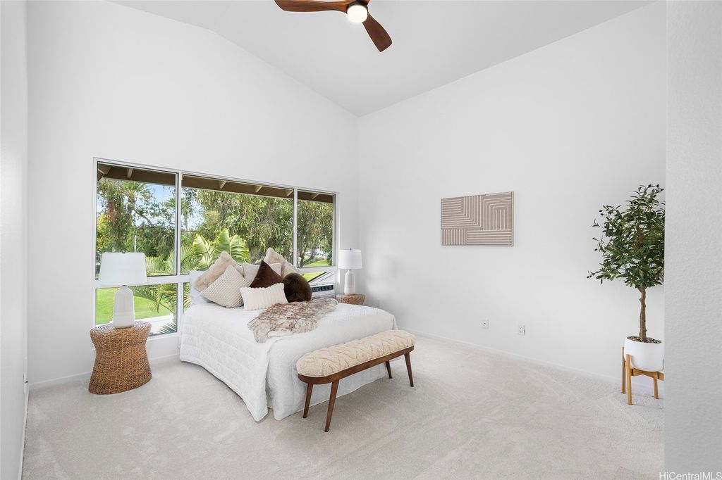 Freshly Renovated & Move-In Ready. Take in this beautifully updated home where comfort meets style. Featuring brand-new kitchen appliances, sleek new flooring throughout, and modern bathroom fixtures, every corner has been thoughtfully refreshed"”including a full coat of crisp, contemporary paint. The open layout is bright and airy, accentuated by high ceilings that create an expansive, elegant atmosphere. Natural light pours in, highlighting the fresh finishes and inviting warmth throughout the space. New window AC units and ceiling fans ensure year-round comfort, keeping the home cool and breezy even on the sunniest island days. Slide open the doors onto your outdoor lanai to find yourself enjoying a lush green lawn"”perfect for morning coffee, weekend lounging, or evening relaxation under the stars. Beyond the lanai, discover a private oasis designed for both fun and serenity: a sparkling swimming pool, BBQ area, and spacious recreation zone ideal for entertaining or unwinding. Whether you're a first-time buyer or looking to upgrade, this home offers the perfect blend of tranquility and turnkey convenience.