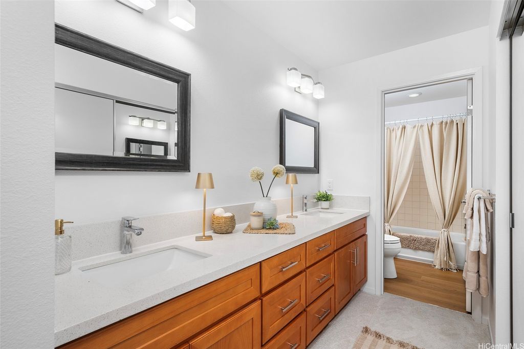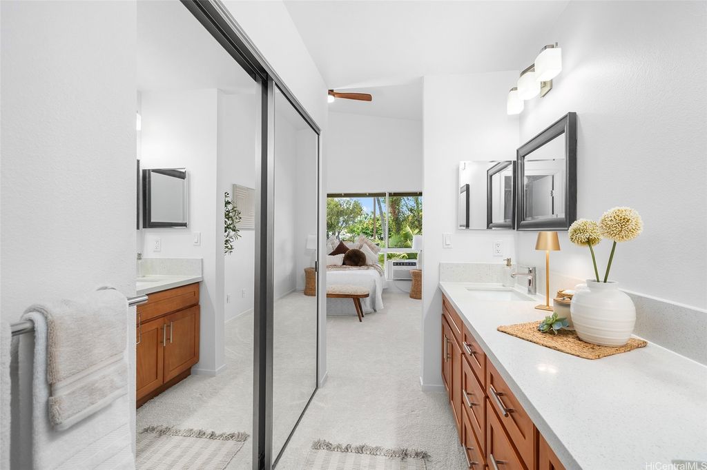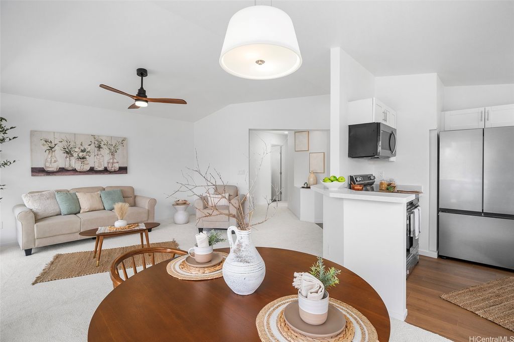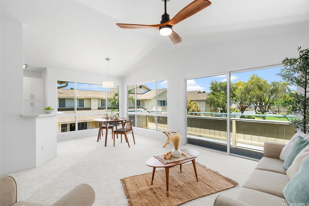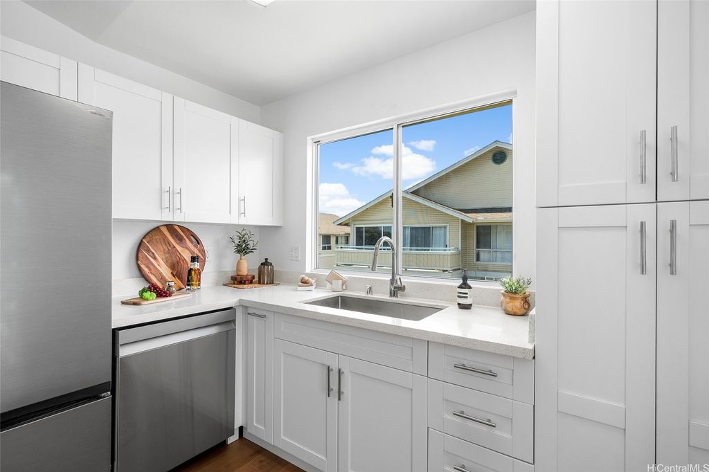 Freshly Renovated & Move-In Ready. Take in this beautifully updated home where comfort meets style. Featuring brand-new kitchen appliances, sleek new flooring throughout, and modern bathroom fixtures, every corner has been thoughtfully refreshed"”including a full coat of crisp, contemporary paint. The open layout is bright and airy, accentuated by high ceilings that create an expansive, elegant atmosphere. Natural light pours in, highlighting the fresh finishes and inviting warmth throughout the space. New window AC units and ceiling fans ensure year-round comfort, keeping the home cool and breezy even on the sunniest island days. Slide open the doors onto your outdoor lanai to find yourself enjoying a lush green lawn"”perfect for morning coffee, weekend lounging, or evening relaxation under the stars. Beyond the lanai, discover a private oasis designed for both fun and serenity: a sparkling swimming pool, BBQ area, and spacious recreation zone ideal for entertaining or unwinding. Whether you're a first-time buyer or looking to upgrade, this home offers the perfect blend of tranquility and turnkey convenience.