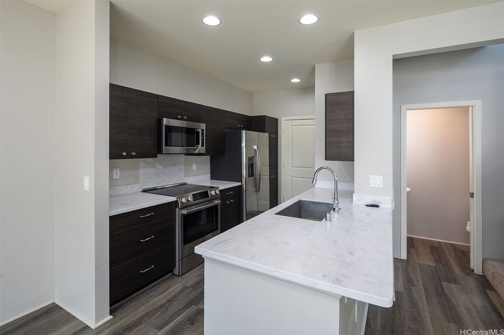 Immaculate newer built 3 bdr/2.5 bth home in Seabridge at Ewa Gentry. Downstairs features a spacious living room, dining area, and kitchen with quartz countertops and stainless-steel appliances. Upstairs features a den/office area along with a spacious primary bedroom suite with walk-in closet. Upgrades include 18 PV panels for huge electric savings and a solar water heater. Includes a 2-car garage and 1 open parking stall. Prime location close to Ka Makana Alii shopping center, restaurants, schools, and parks. 1 small pet under 25 lbs considered. NO VIRTUAL SHOWINGS. MUST VIEW IN PERSON BEFORE APPLYING. VIEWING MUST BE SCHEDULED ONLINE. To see details of all listings, schedule a viewing or apply go to: https://app.tenantturner.com/listings/pinnaclemanagementgroup (copy/paste on browser if needed).