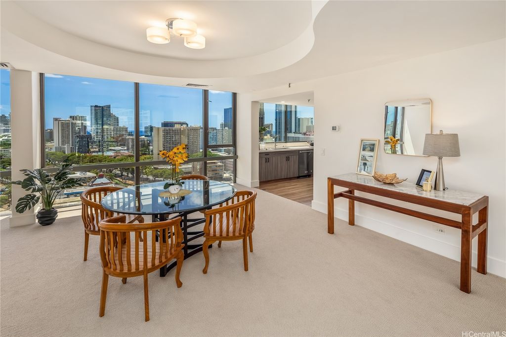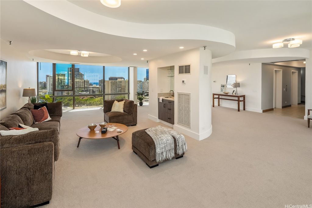 2,285 square feet of thoughtfully designed living space awaits in this exceptional Penthouse. Featuring 3 well-proportioned bedrooms and 3 bathrooms, this residence offers an abundance of versatility and comfort. The expansive layout features an open concept design, seamlessly integrating the living, dining, and kitchen areas. Abundant natural light fills the spaces through the expansive windows, creating a bright and airy ambiance. The Ohia flooring, newly installed Berber carpet, and modern lighting fixtures throughout add a touch of elegance and sophistication. The spacious kitchen boasts an abundance of countertop space and modern cabinetry, providing ample storage and preparation areas for the discerning chef. The primary bedroom and second bedroom offers an ensuite bathroom. Additional features include a spacious hallway, a private foyer, and breathtaking panoramic views of the city skyline and Diamond Head. Residents can also enjoy the on-site amenities, including a pool and tennis court, further enhancing the luxurious lifestyle. Meticulously maintained and tastefully updated, this condominium presents an ideal living opportunity in a desirable location.