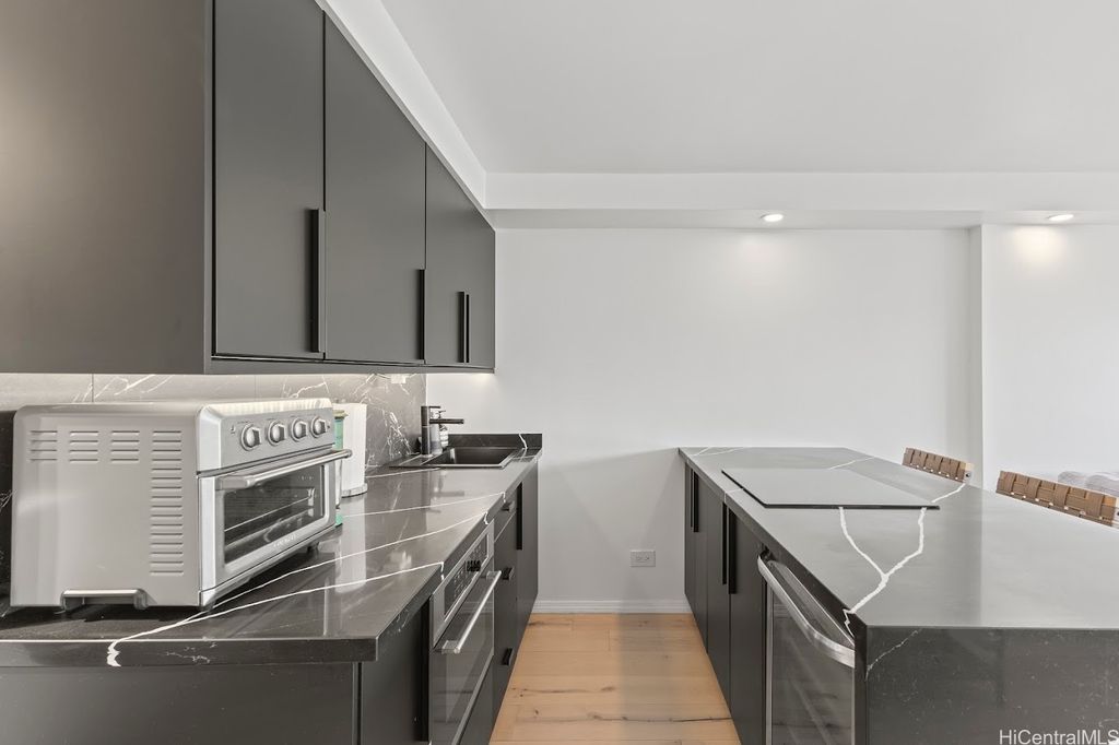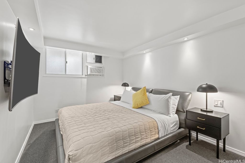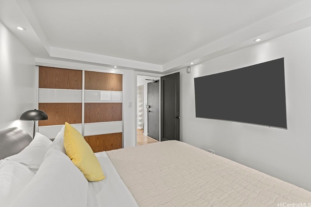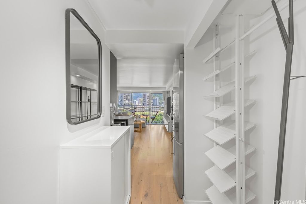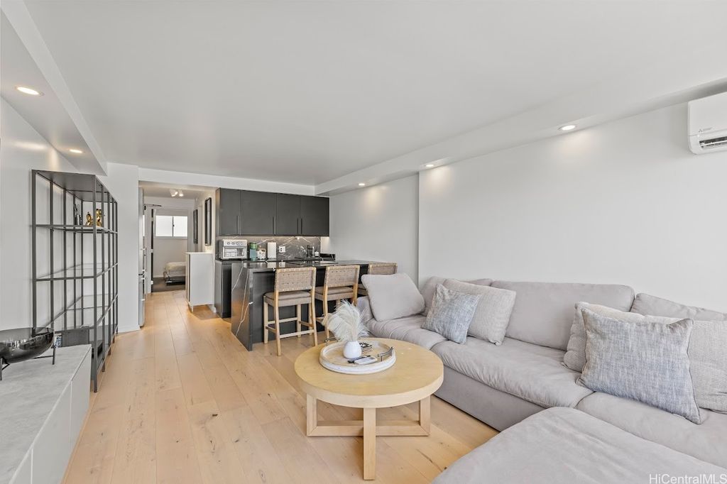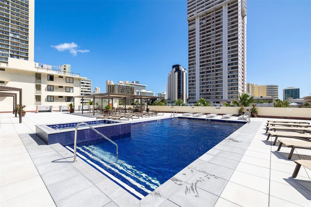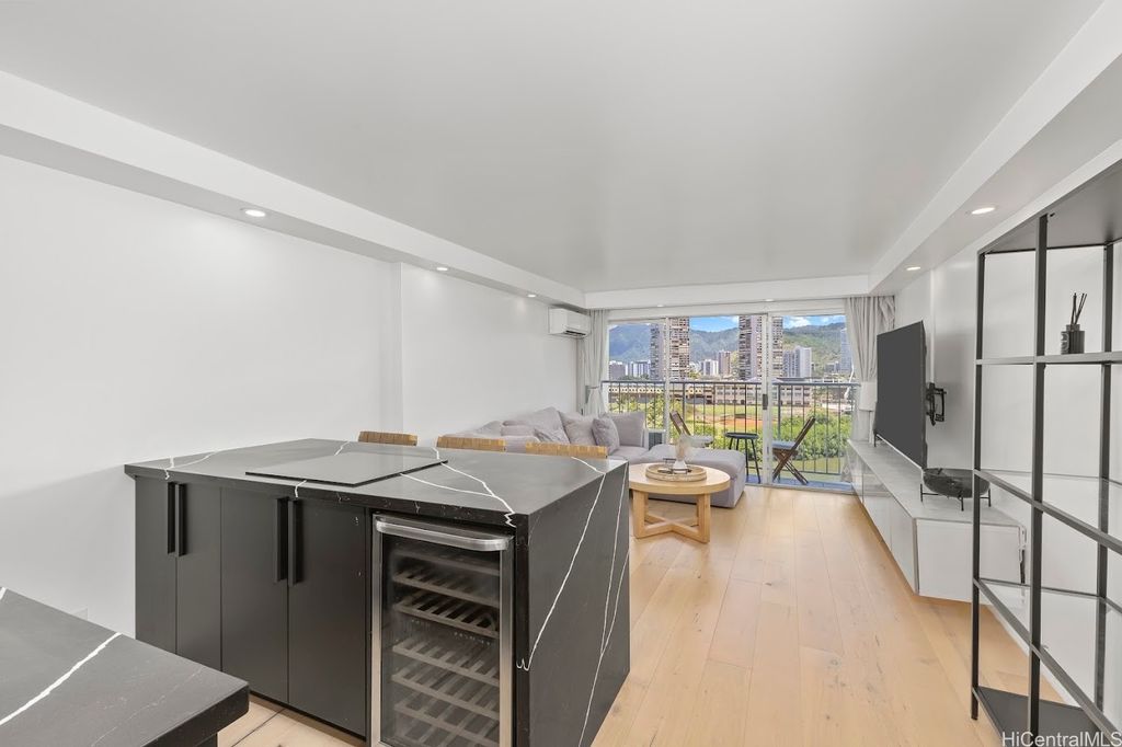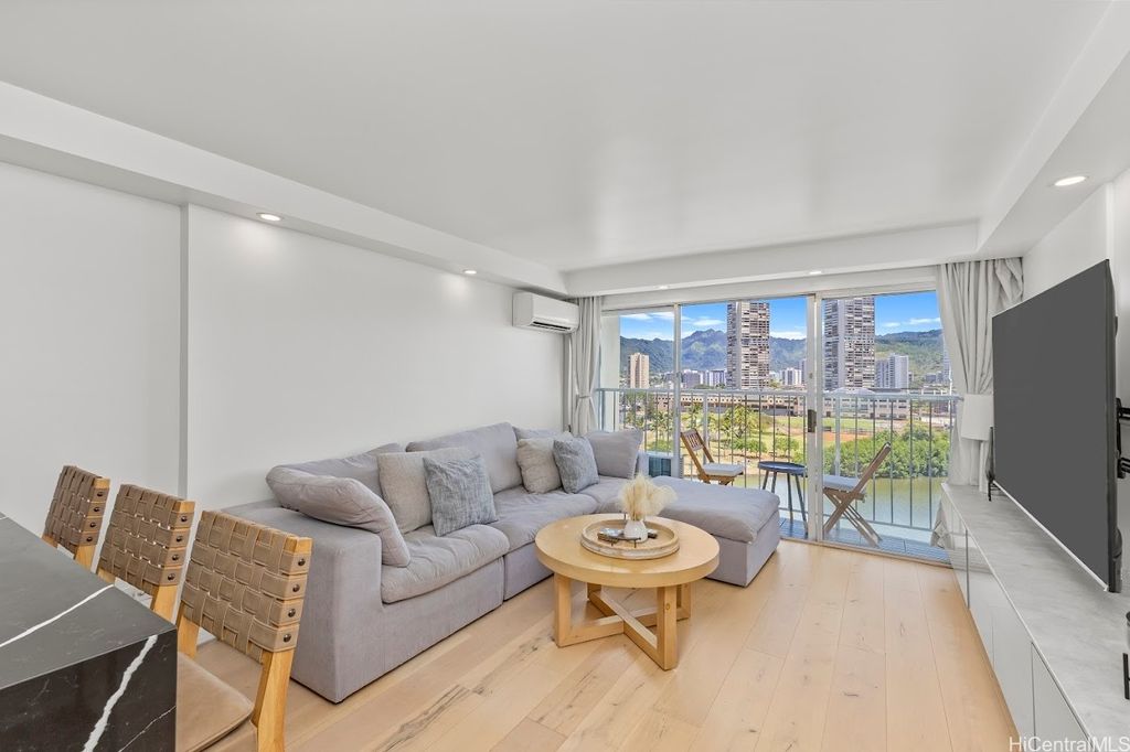 Extra larger unit with premier custom remodeled. 100% insured building this beautifully updated, fully furnished unit offers stunning, unobstructed canal and mountain views. With an extended living room featuring maple hardwood floors and a chef's kitchen with quartz countertops, induction cooktop, wine cooler, and built-in appliances, this space is both stylish and functional. Split AC in the living room and window AC in the bedroom ensure year-round comfort. Freshly painted and in excellent condition, it includes one assigned covered parking and additional storage. Located in the heart of Waikiki, Aloha Lani provides easy access to shopping, dining, and entertainment. The building boasts a newly upgraded pool, deck, BBQ areas, 24/7 security, and amenities including a gym, sauna, community laundry, and game room. This is a fantastic opportunity for your own private retreat. Pet-friendly (please verify with the association). This is a rare chance to own your own private retreat and enjoy all that world famous Waikiki has to offered. Tax assessment is based on 2024. Unit has been rented out for 30 day rental min around 3000/month previously prior to Sep 2025.