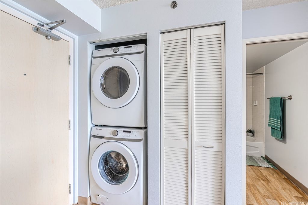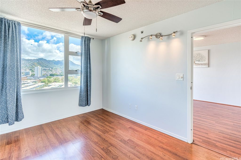 Enjoy beautiful city and mountain views from this bright and breezy high-floor 1-bedroom, 1-bath condo in the heart of Honolulu. This well-maintained unit features a private lanai, in-unit washer and dryer, window A/C, and one covered parking stall. Conveniently located at the gateway to Downtown, near Chinatown, Kaka?ako, the airport, major freeway access, and an abundance of shops and restaurants. 215 N King offers 24/7 security, a resident manager, secured entry, and plenty of guest parking. Whether you're a first-time homebuyer or investor, this move-in ready unit offers unbeatable value in one of Honolulu's most connected communities.