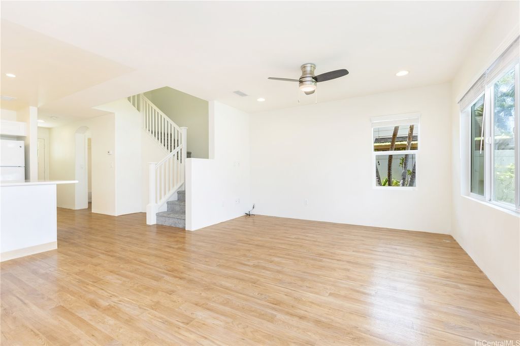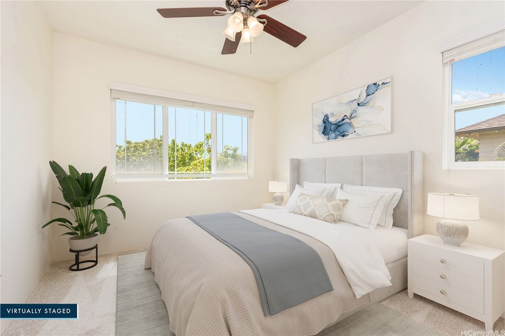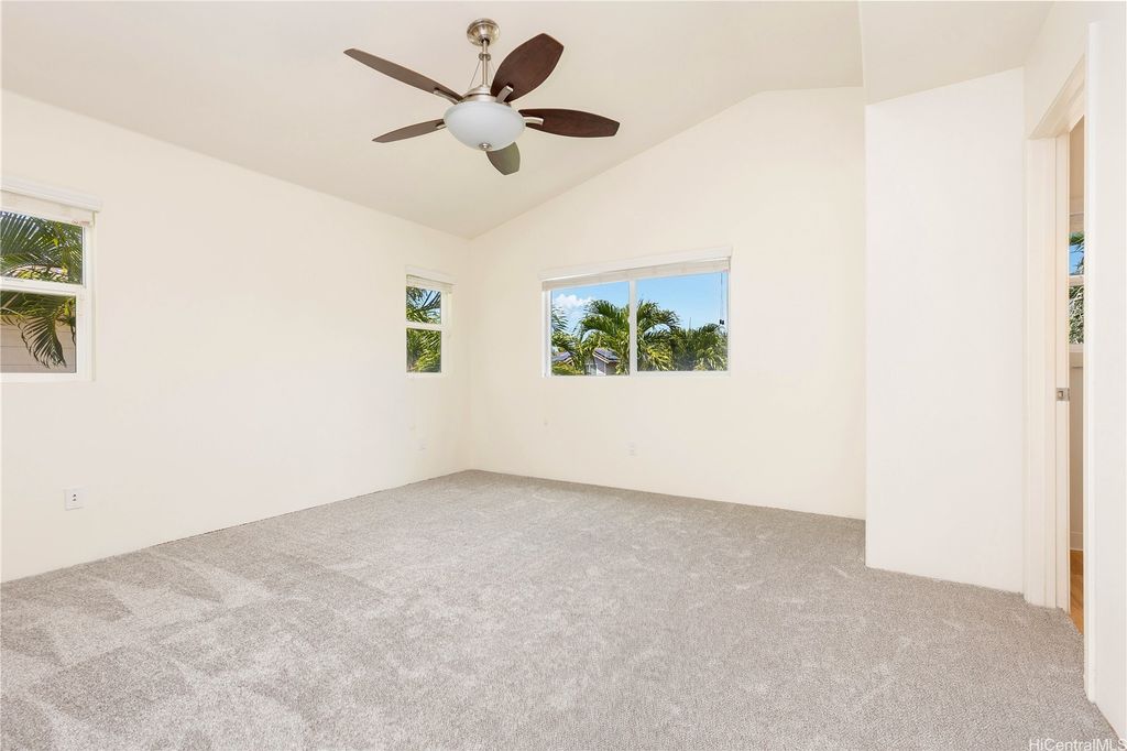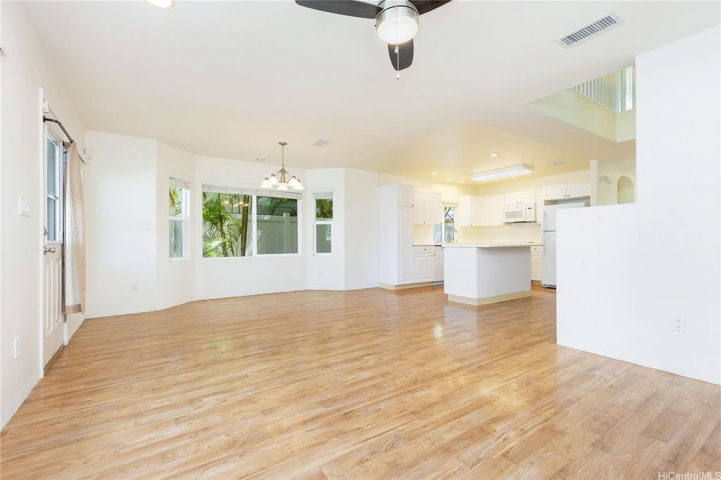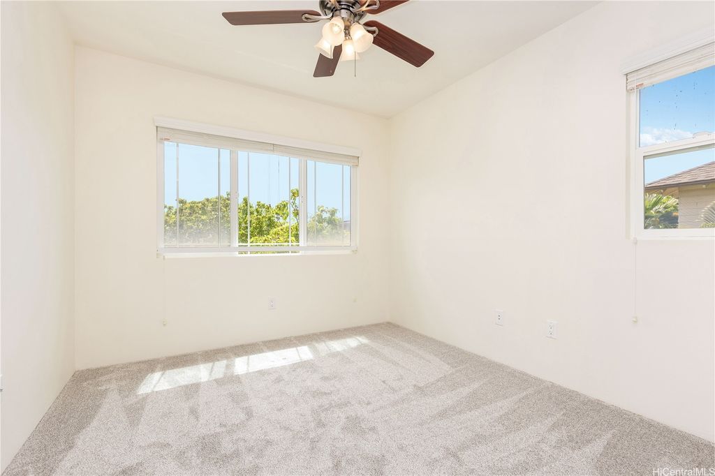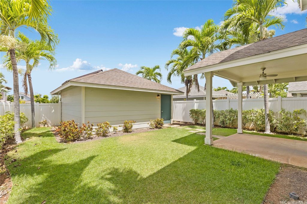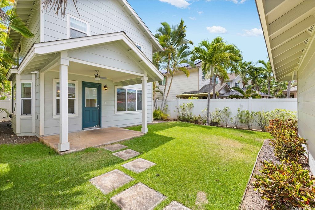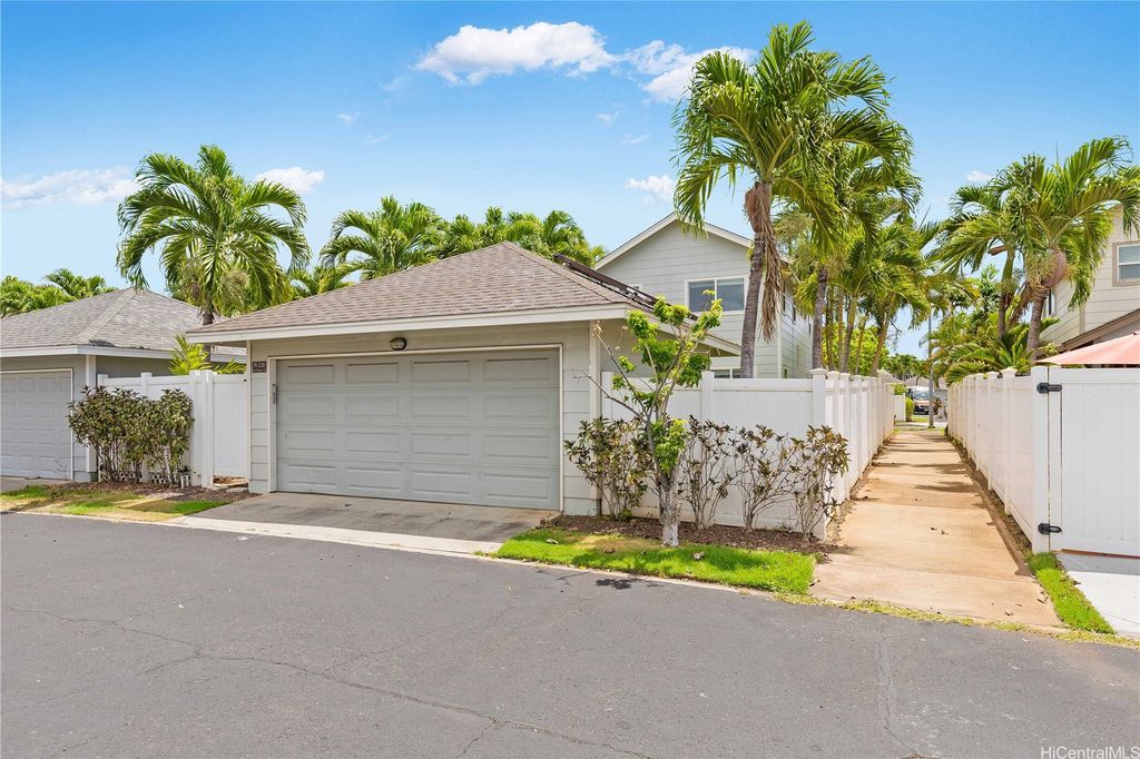 Super cute 4 bedroom 3 bath single family home located in Ocean Pointe. Owner is offering a $20,000 credit with full price offer to be used towards buyer's closing costs or to help buy down their interest rate! This home has a desirable downstairs bedroom and full bathroom which is great for entertaining out of town guests or extended family without having to climb stairs. Large Primary bedroom with high ceilings, walk in closet and a large en suite bathroom with double sinks. Two additional bedrooms are located upstairs with a work station in the hallway to help keep office clutter out of the main living area. Seller installed new carpeting upstairs in the office area and in bedrooms, a new dishwasher and new paint throughout. Home has central air and solar water heater. Home is part of the Ke Alohi Kai Sub Association and Ocean Pointe Community Associataion. The association fee break down is Ocean Pointe $62 and Ke Alohi Kai $86 per month. Conveniently located near a community park, walking and jogging paths, shopping complex, restaurants and more! Easy to see, ask your agent to call for a private appointment!