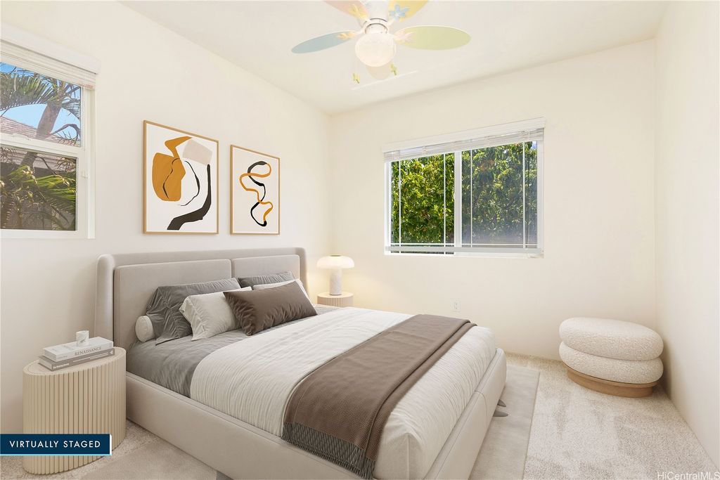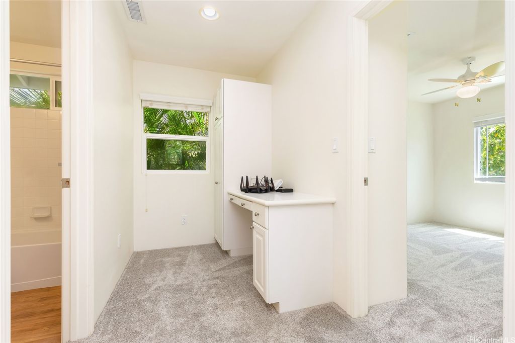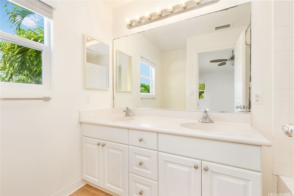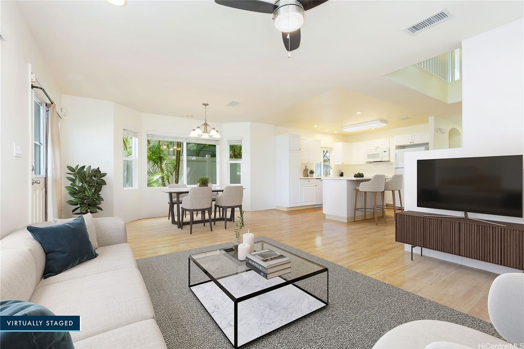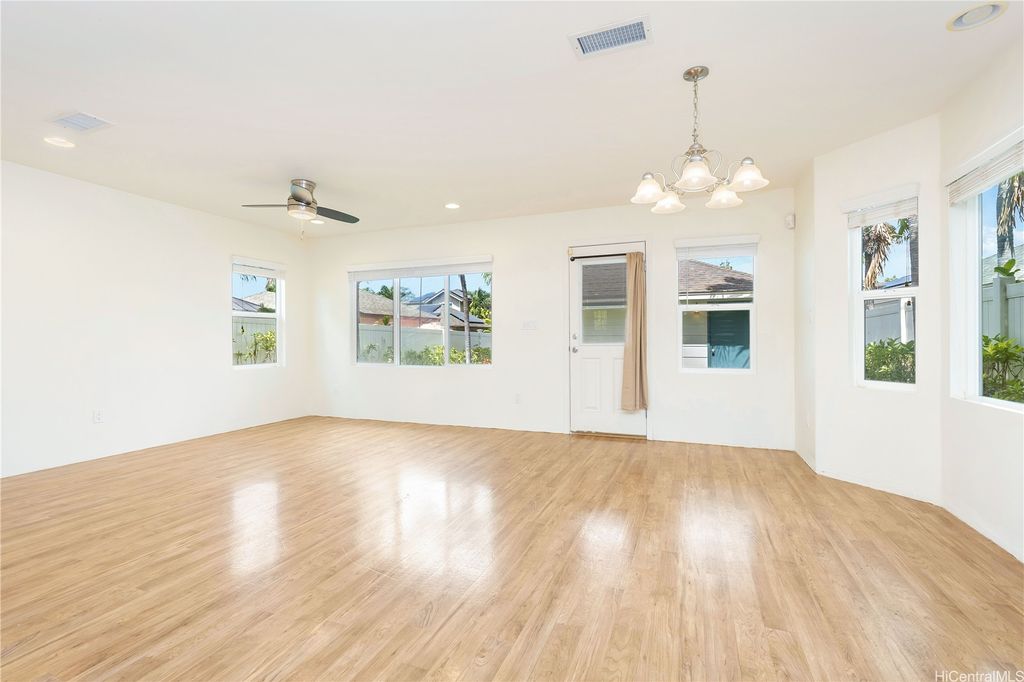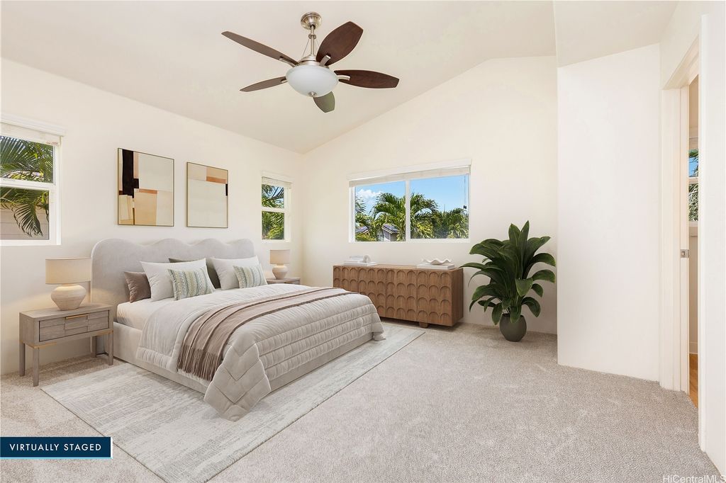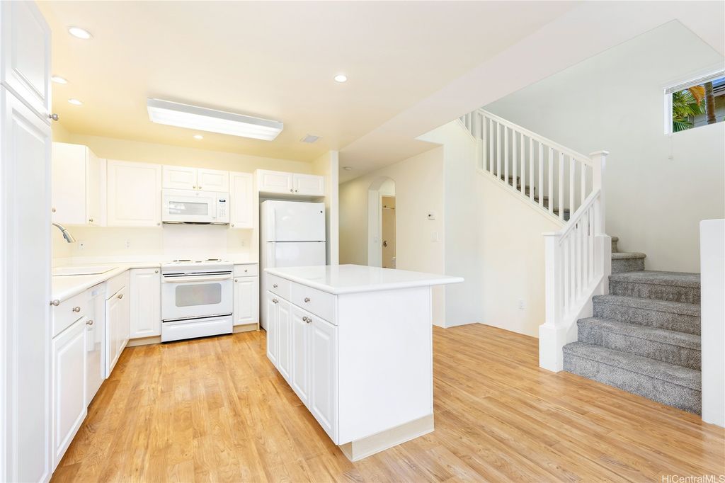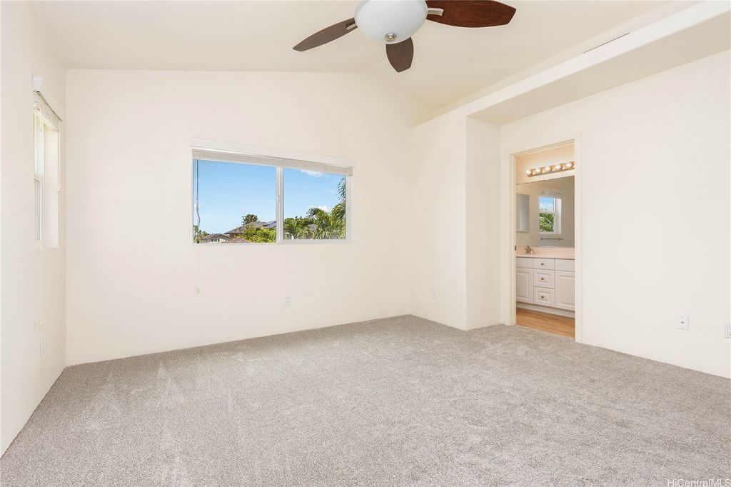Super cute 4 bedroom 3 bath single family home located in Ocean Pointe. Owner is offering a $20,000 credit with full price offer to be used towards buyer's closing costs or to help buy down their interest rate! This home has a desirable downstairs bedroom and full bathroom which is great for entertaining out of town guests or extended family without having to climb stairs. Large Primary bedroom with high ceilings, walk in closet and a large en suite bathroom with double sinks. Two additional bedrooms are located upstairs with a work station in the hallway to help keep office clutter out of the main living area. Seller installed new carpeting upstairs in the office area and in bedrooms, a new dishwasher and new paint throughout. Home has central air and solar water heater. Home is part of the Ke Alohi Kai Sub Association and Ocean Pointe Community Associataion. The association fee break down is Ocean Pointe $62 and Ke Alohi Kai $86 per month. Conveniently located near a community park, walking and jogging paths, shopping complex, restaurants and more! Easy to see, ask your agent to call for a private appointment!