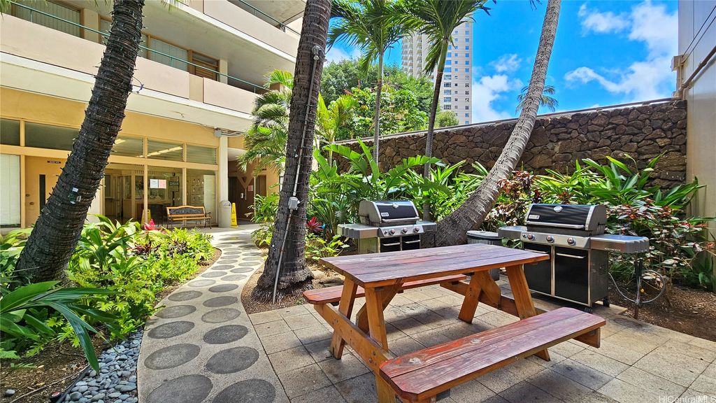 Welcome to the Tradewinds Hotel Inc! Step into this 1 bedroom. 1 bathroom, fully furnished unit and make this your next home or investment property. The building is wonderfully located off of Ala Moana and Hobron near the entrance of Waikiki, where everything happens! You're blocks away from grocery stores, night life, restaurants, Ala Moana Mall, Magic Island, and Friday night fireworks. The building features resort-style amenities, including a saltwater pool, BBQ area, secured entrance and 24 hour security! This unit is fully furnished with a queen pull out mattress for guests, TV's, a fully stocked kitchen, bedroom and lanai furniture. It will be an easy transition to start your new home, or keep using as an investment property. For those stormy days, protect your home with pre-existing storm shutters. For those hot days, open things up and enjoy the tradewinds. This property offers an all inclusive maintenance fee that covers your utilities and property taxes. Start your dream and make this place yours!