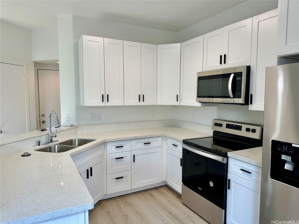 Recently renovated and landscaped! Perfect for first time home buyer. Desirable corner unit home in a great neighborhood. Painted interior and newer laminate flooring in the entire home. Fenced in yard for your pets! Close to the recreation center with swimming pool and cabanas, great for BBQ get together or parties. Conveniently located, minutes to Laulani Shopping Center with great stores and eateries, Safeway, Ross, City Mill, Buffalo Wild and many more. Close to park and schools. Make this your home today and add your own personal touches.