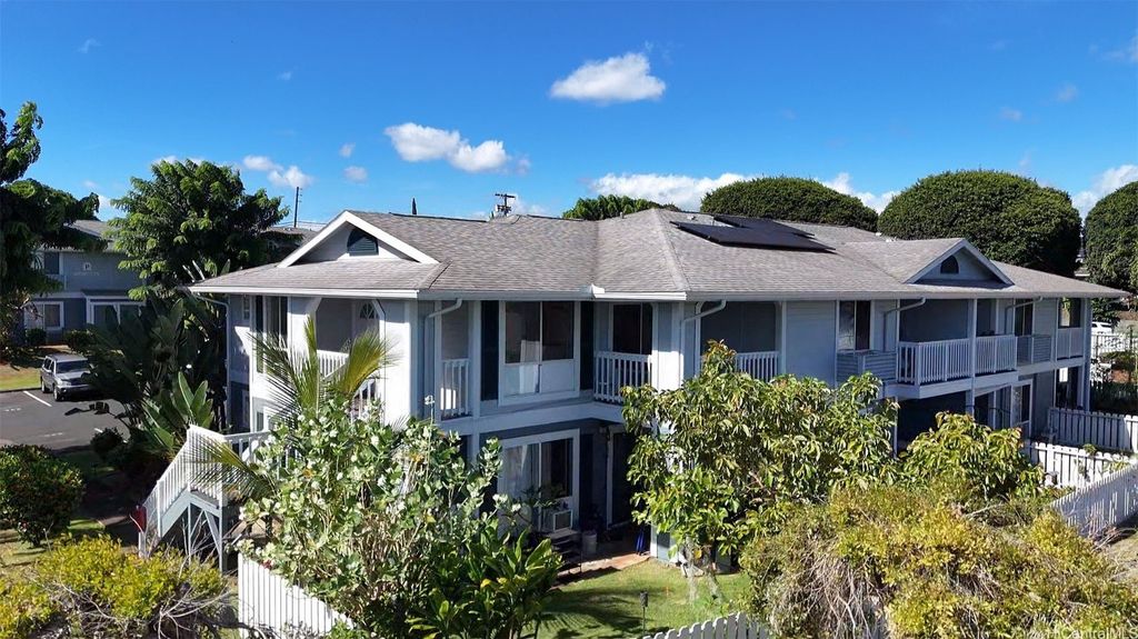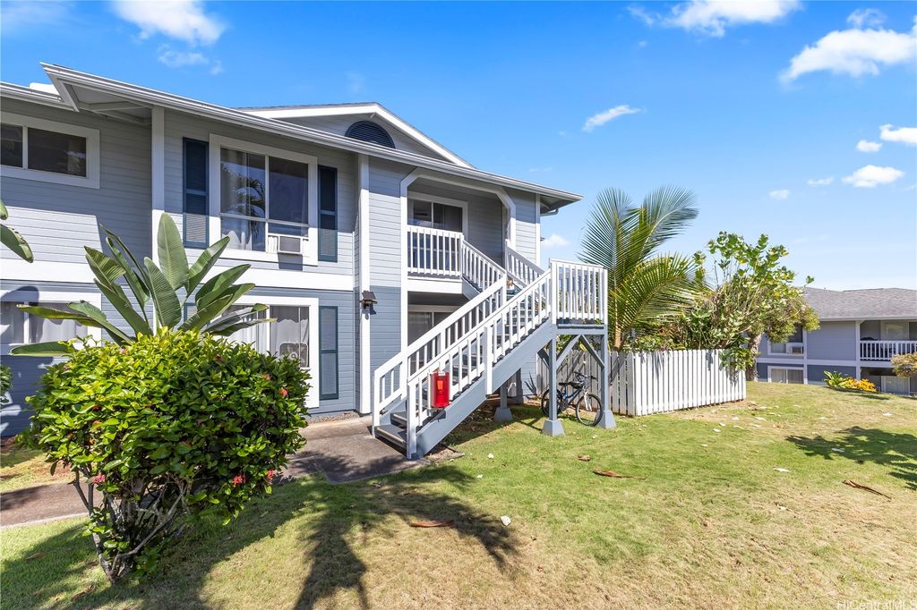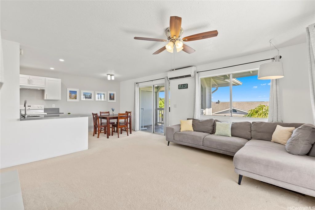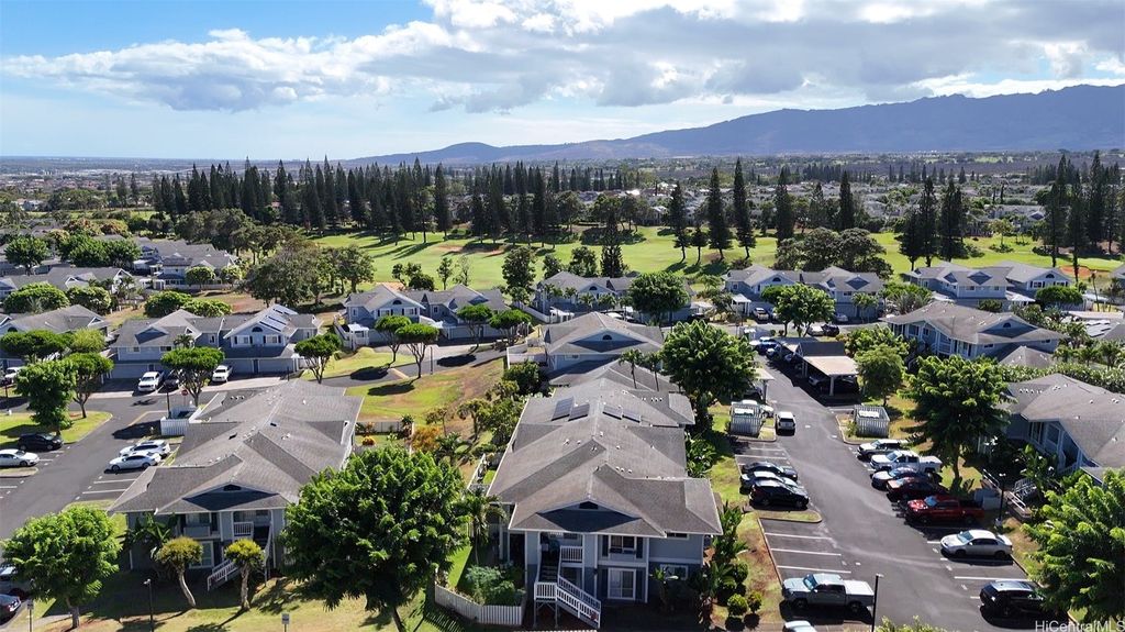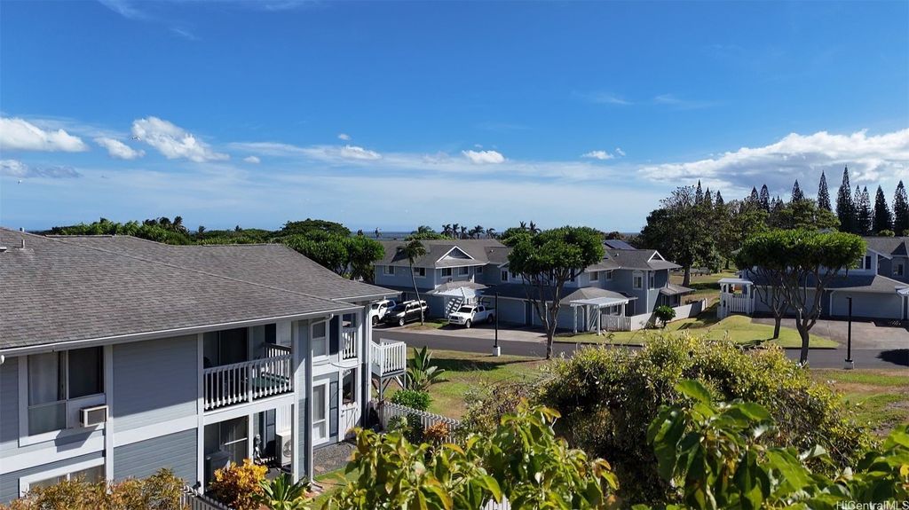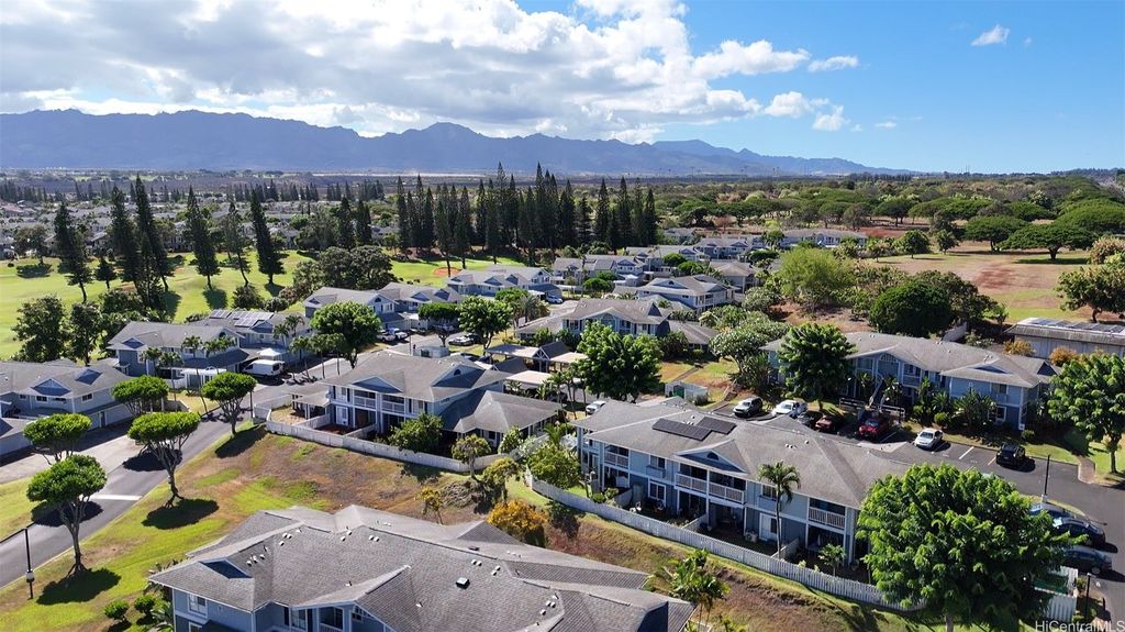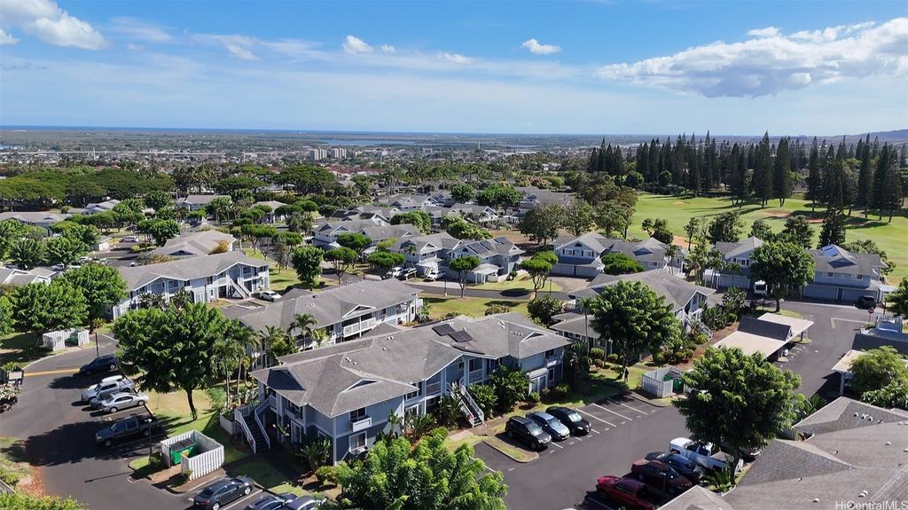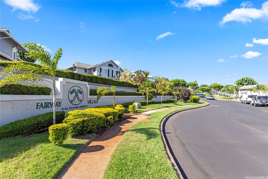 Desirable corner 2-bedroom 2-bath residence with partial ocean views in The Fairway Village at Waikele. This spacious unit of over 850 interior square feet and a 90+ square foot covered lanai has 2 assigned parking stalls. Features an updated kitchen with recessed lighting, quartz counter tops, hardwood cabinetry, and luxury vinyl flooring. The two baths provide modern tile surrounds, updated vanities, luxury vinyl flooring, lighting and new fixtures. A split AC in the living room and window ACs in the bedrooms will help you stay cool in the summer months. Convenient storage in the kitchen pantry closet and on your lanai. This pet-friendly and well-managed community has ample guest parking, a car wash, and access to the recreation center for gatherings and parties. Minutes to the Waikele Golf Course, Patsy Mink Community Park, Waikele Premium Outlets, Costco, Starbucks, Safeway, Foodland, Lowe's, and many other shops and restaurants.