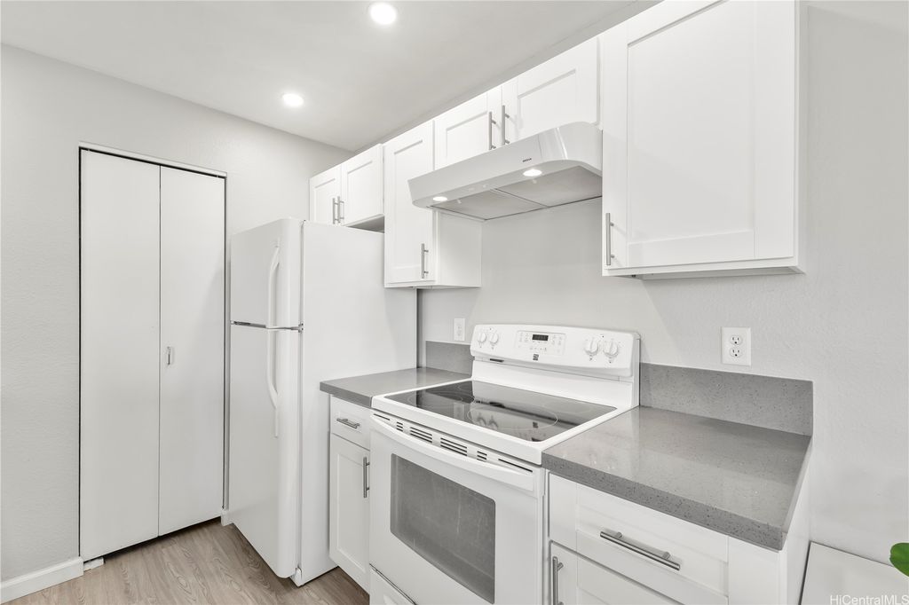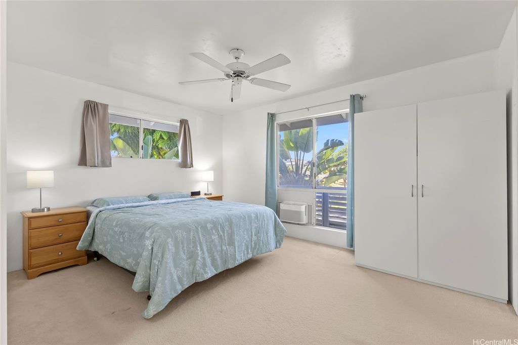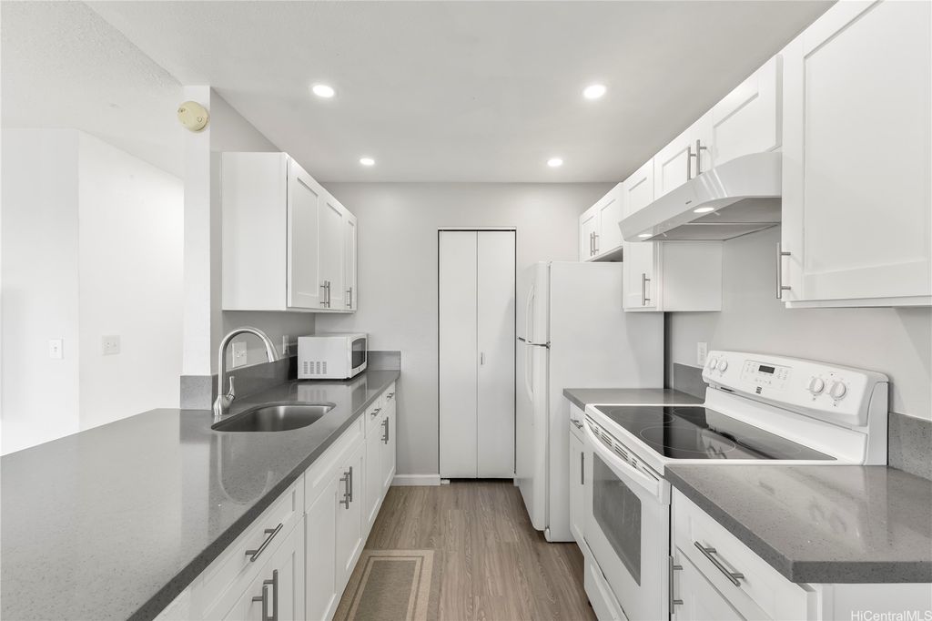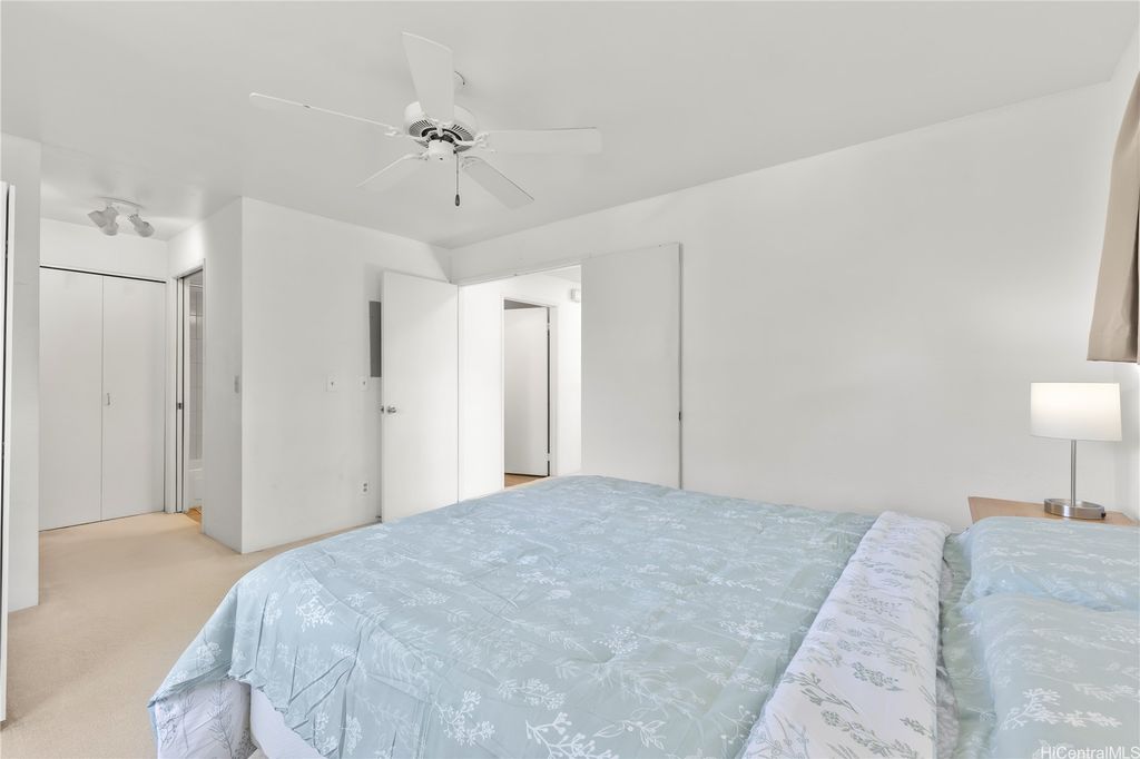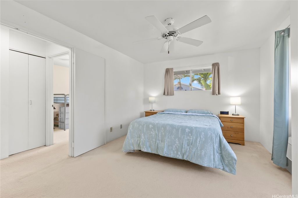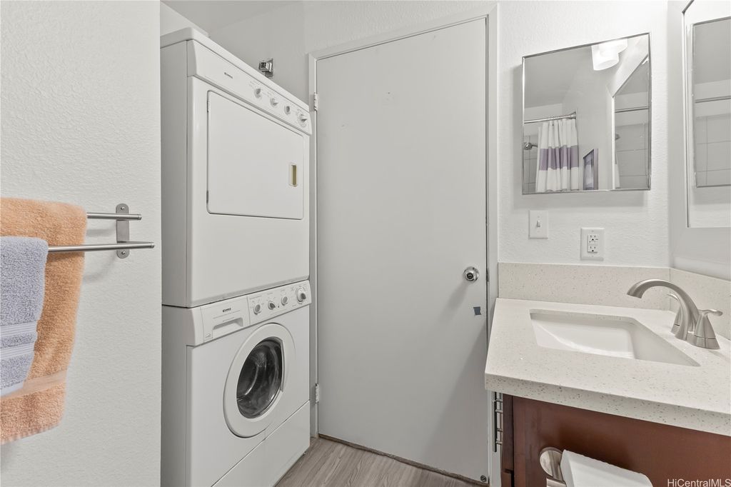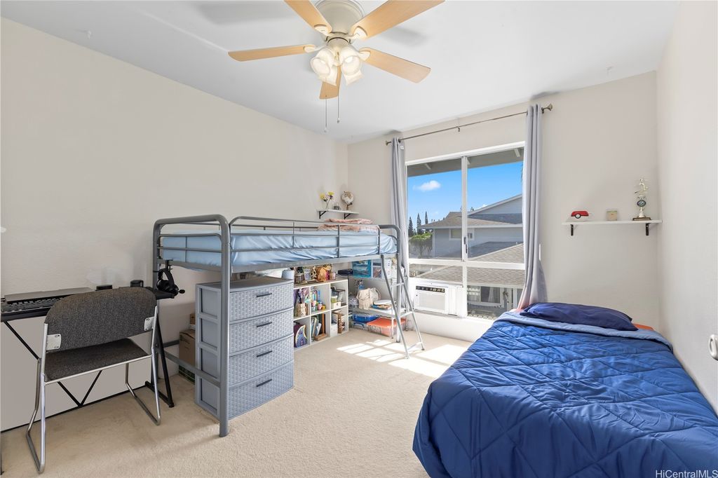 Desirable corner 2-bedroom 2-bath residence with partial ocean views in The Fairway Village at Waikele. This spacious unit of over 850 interior square feet and a 90+ square foot covered lanai has 2 assigned parking stalls. Features an updated kitchen with recessed lighting, quartz counter tops, hardwood cabinetry, and luxury vinyl flooring. The two baths provide modern tile surrounds, updated vanities, luxury vinyl flooring, lighting and new fixtures. A split AC in the living room and window ACs in the bedrooms will help you stay cool in the summer months. Convenient storage in the kitchen pantry closet and on your lanai. This pet-friendly and well-managed community has ample guest parking, a car wash, and access to the recreation center for gatherings and parties. Minutes to the Waikele Golf Course, Patsy Mink Community Park, Waikele Premium Outlets, Costco, Starbucks, Safeway, Foodland, Lowe's, and many other shops and restaurants.