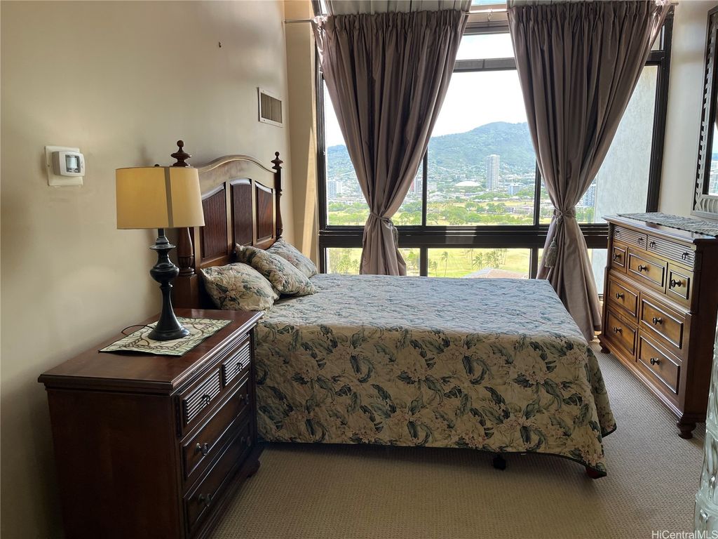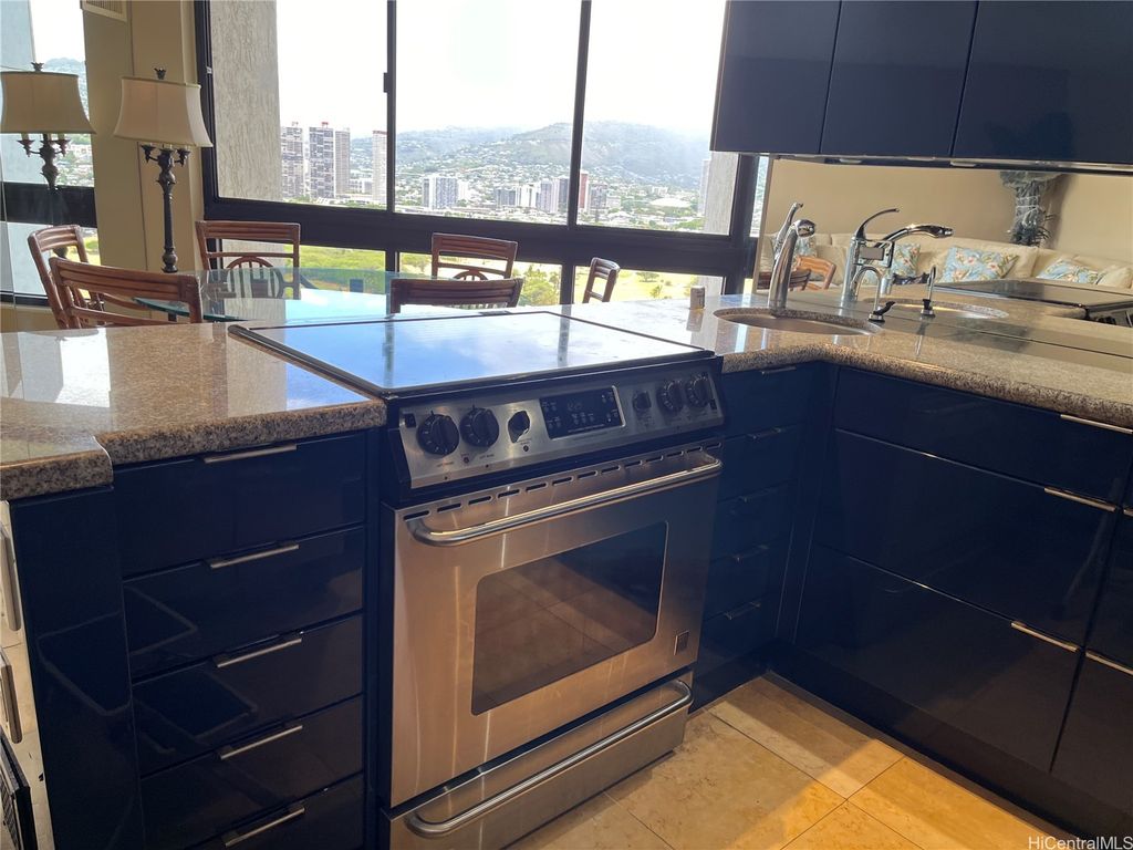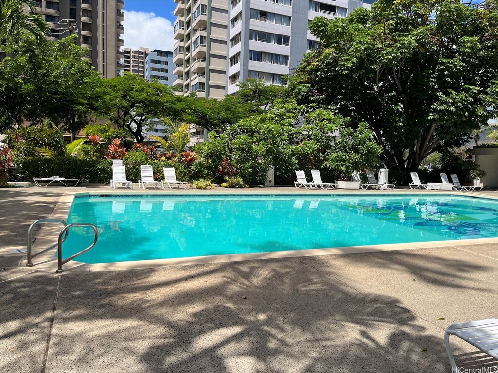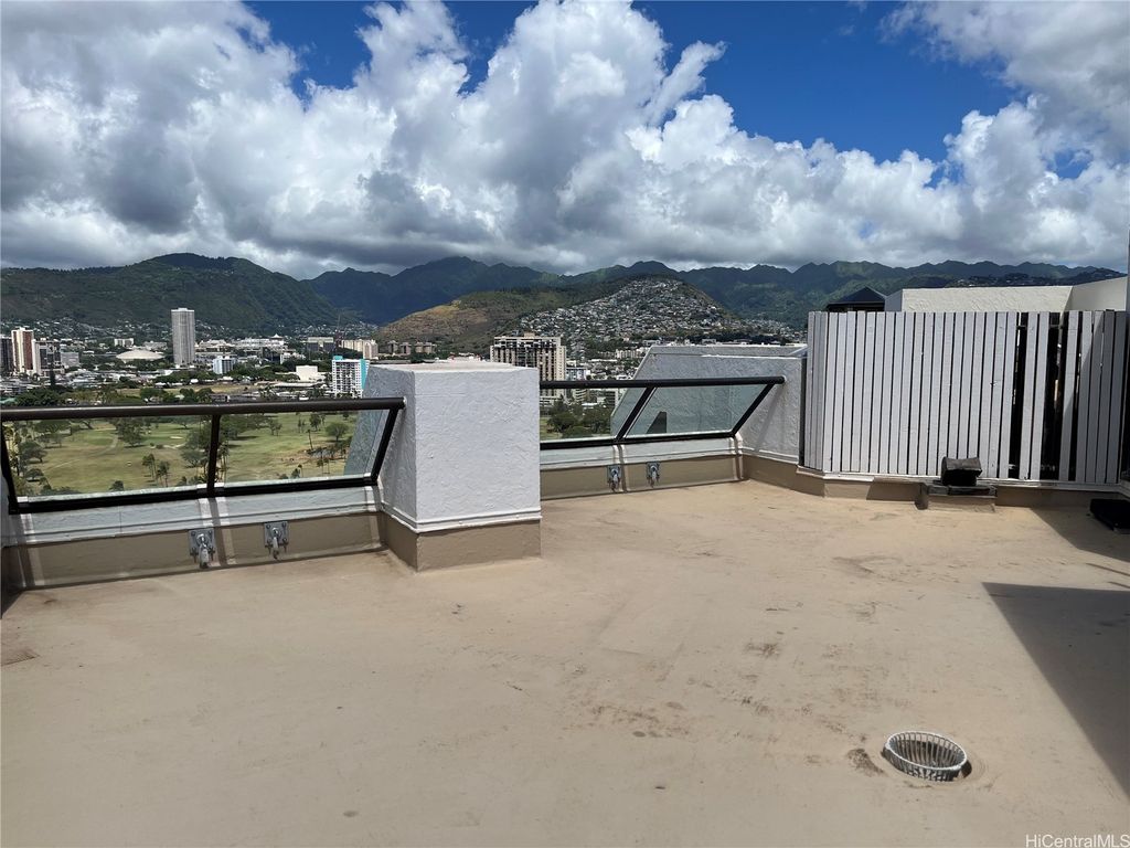 Rarely available Penthouse unit with your own private 450 square foot rooftop lanai. Beautiful mountain, golf course, city and partial ocean views in the King Tower of Liliuokalani Gardens. Enjoy entertaining guests on your spacious lanai or relax poolside with BBQ and recreation room. Liliuokalani Gardens is a secure community with a large pool, whirlpool, tennis courts, club house, roaming security and guest parking. Parking is available on a rental basis on a quarterly or yearly rate.