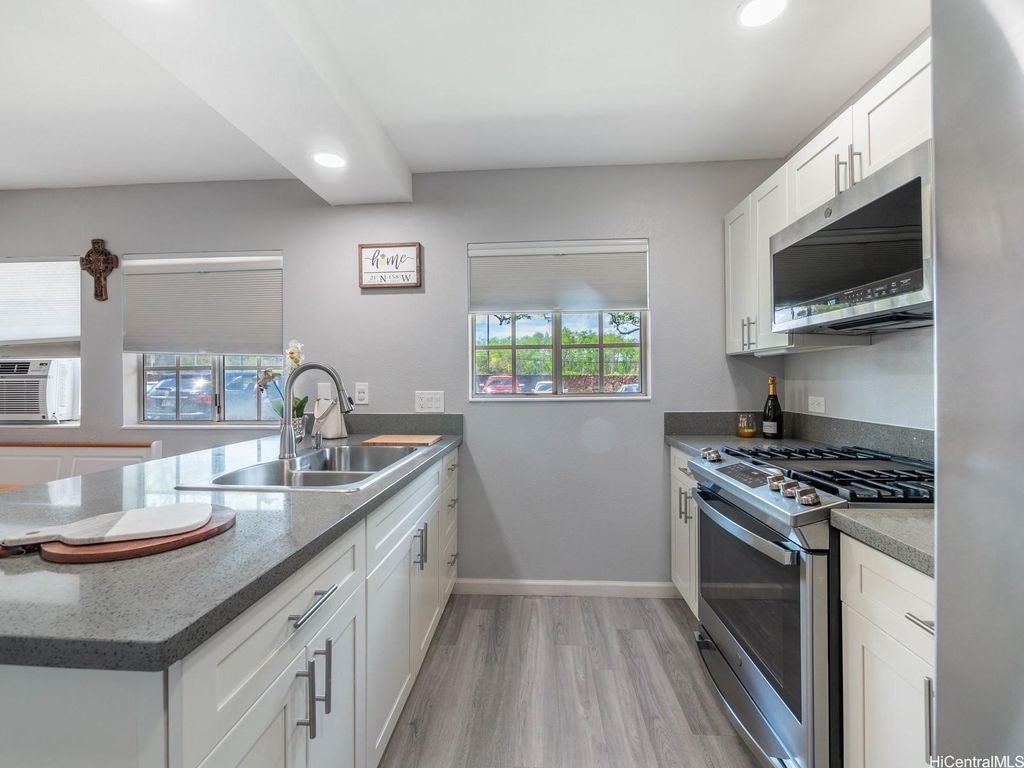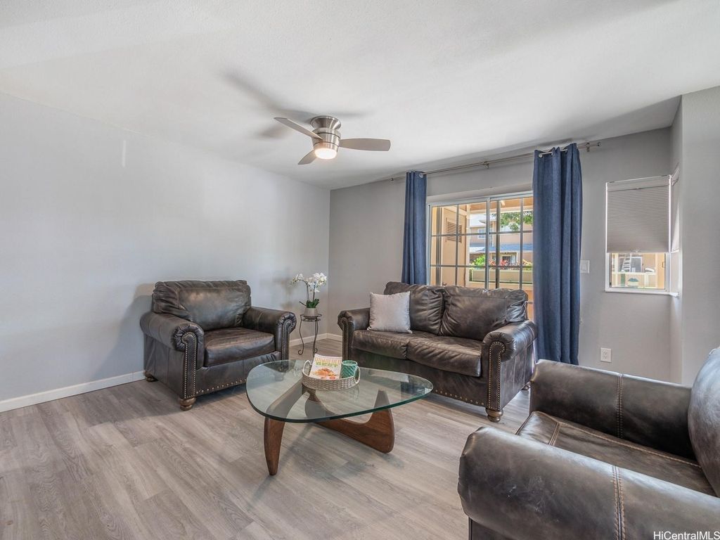 Enjoy the spaciousness of WestLoch Fairway with the proximity & sunrise view from Honolulu in tranquil North Ewa, minutes to West Oahu's Queens Medical Center, a Bayfront Golf Course, Walking Paths, with short drive to Waipahu proper, H1, Premium Outlets, Ewa Beach. This well designed, 1000+ Sq Ft. 2-Story, 2 Bedroom, 1.5 Bath Townhome has the upgrade you seek, from Quartz Countertops, Premium Cabinets, Plank vinyl Floor, Premium Stainless Steel Appliances and Newer Bathrooms. The Primary Bedroom features an in-built, modern Queen Murphy Bed & Storage Set along with its own en-suite Bathroom. The 40 Sq Ft fence Lanai easily connects with the living room & its perfect for outdoor entertainment with its own dedicated storage. If you have a larger get-togethers, easily meet your guest in the dedicated club room close by. Bright rooms with beautiful accent walls & custom furniture make this unique home in a sought out community ready move in. Very motivated seller.