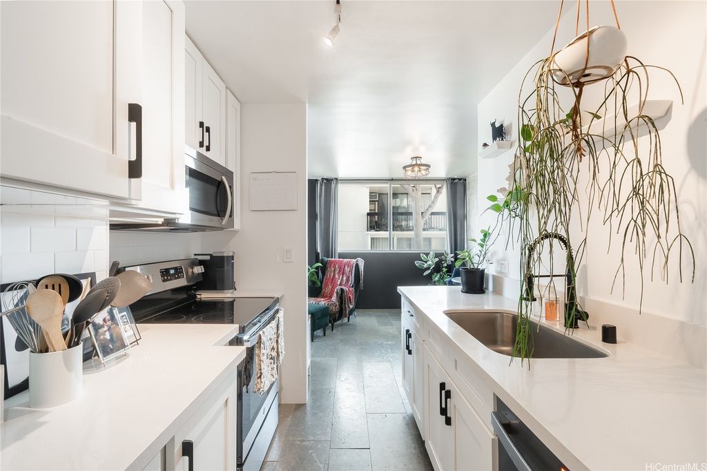VA Assumable at 4.375% with Low Gap! This farmhouse-inspired 2-bedroom, 1-bath condo in Makiki was renovated in 2022 and is fully move-in ready. The kitchen and bath showcase pristine white cabinets with fine-grain quartz countertops, while the bedrooms feature upgraded organized closets for added function and style. Enjoy sunset and city views from your private lanai. The secured building offers callbox entry, weekday resident manager, community garden, laundry facilities, two elevators, car wash area, one assigned stall, and visitor parking. Pet-friendly (verify) and fully hurricane insured. Centrally located near Ala Moana Beach Park, Shopping Center, Ward Village, Punchbowl, and Tantalus. A rare opportunity for first-time buyers, investors, or VA buyers to secure a low 4.375% rate in one of Honolulu's most convenient neighborhoods!