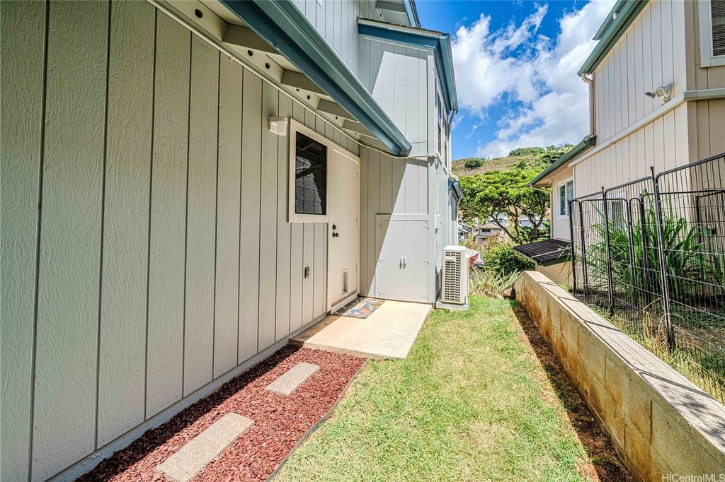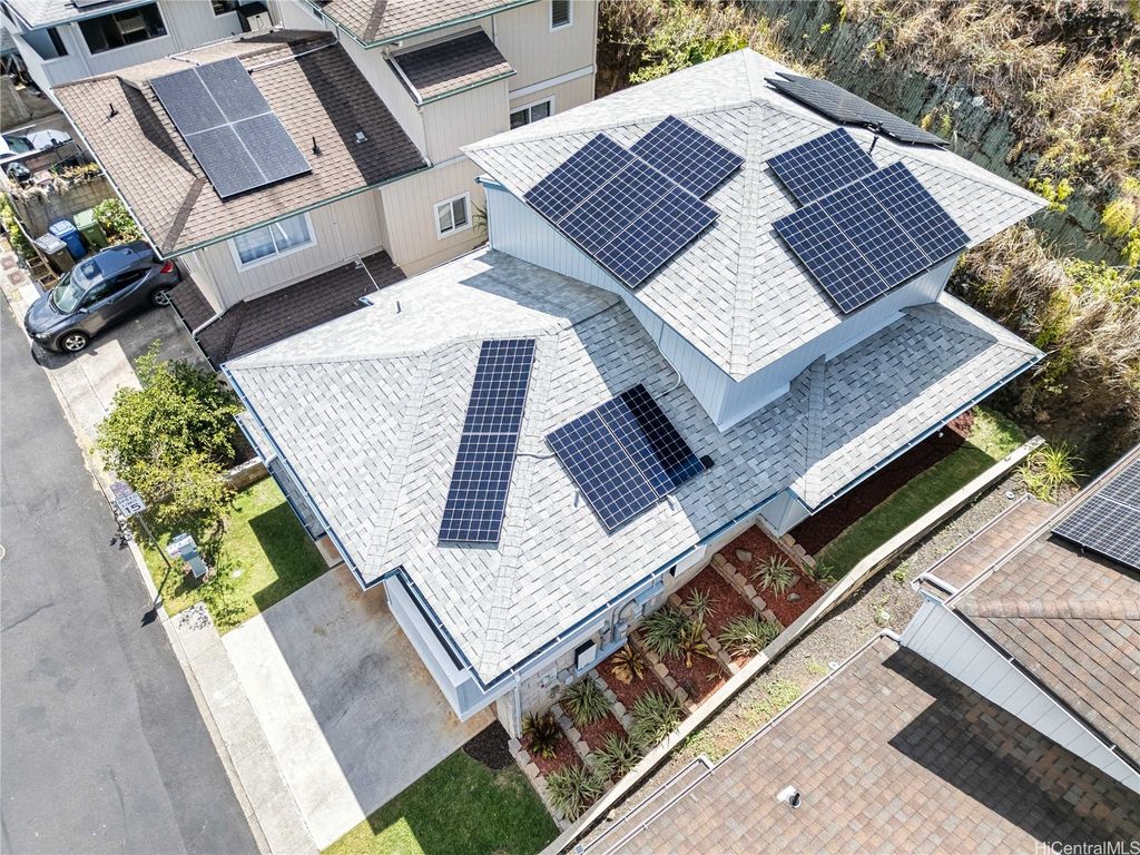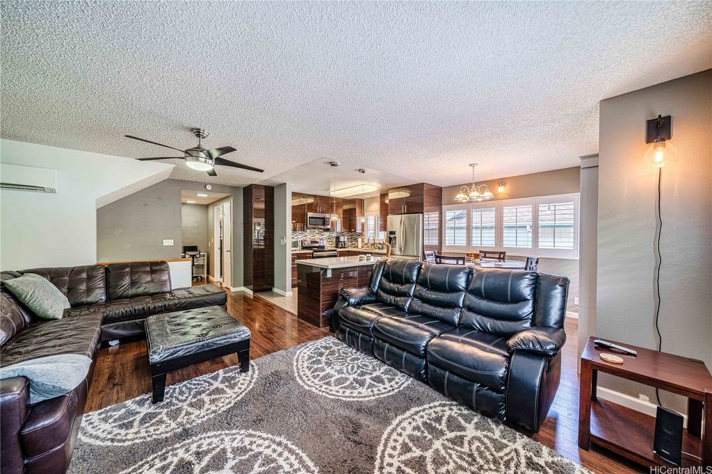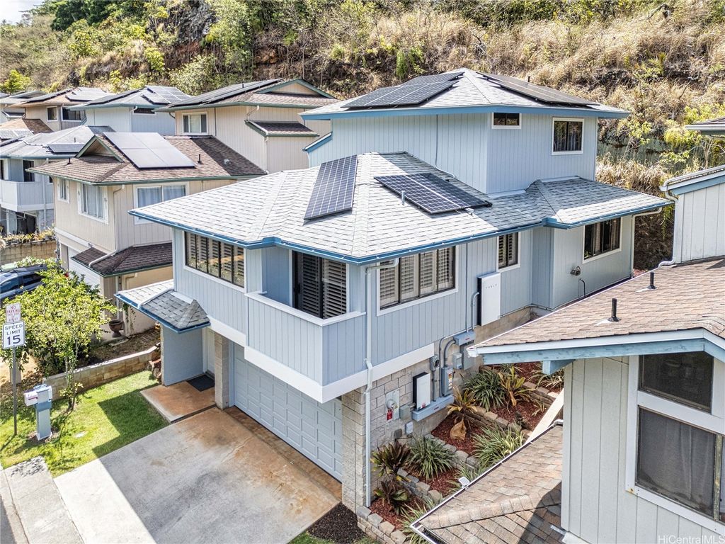 Step into this stunning 3-bedroom, 2.5-bath home in the highly desirable Aiea Park Place community, complete with an enclosed garage for your convenience. Featuring split-system A/C and ceiling fans in every bedroom and the main living area, this home ensures year-round comfort. Elegant laminated wood flooring flows through the living spaces while plush wall-to-wall carpeting adds warmth and coziness to the bedrooms. Best of all, this home comes with 16 fully paid-for solar panels, dramatically reducing your electric bills and adding long-term value! With its unbeatable combination of modern upgrades, energy savings, and prime location, this is the dream home buyers have been waiting for"”schedule your showing today before it's gone