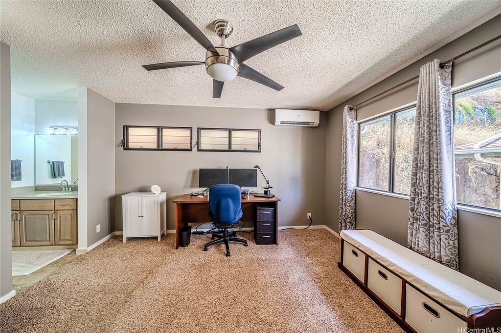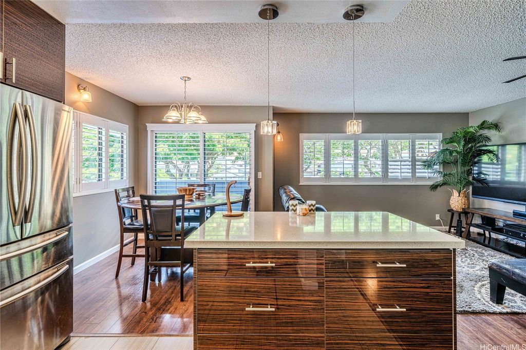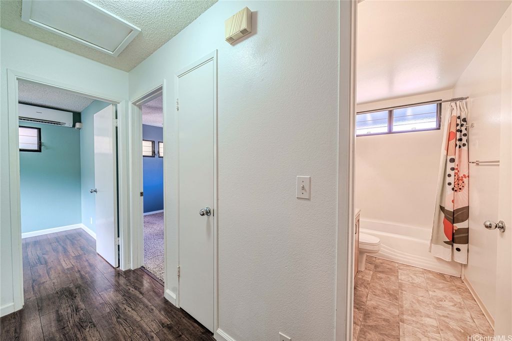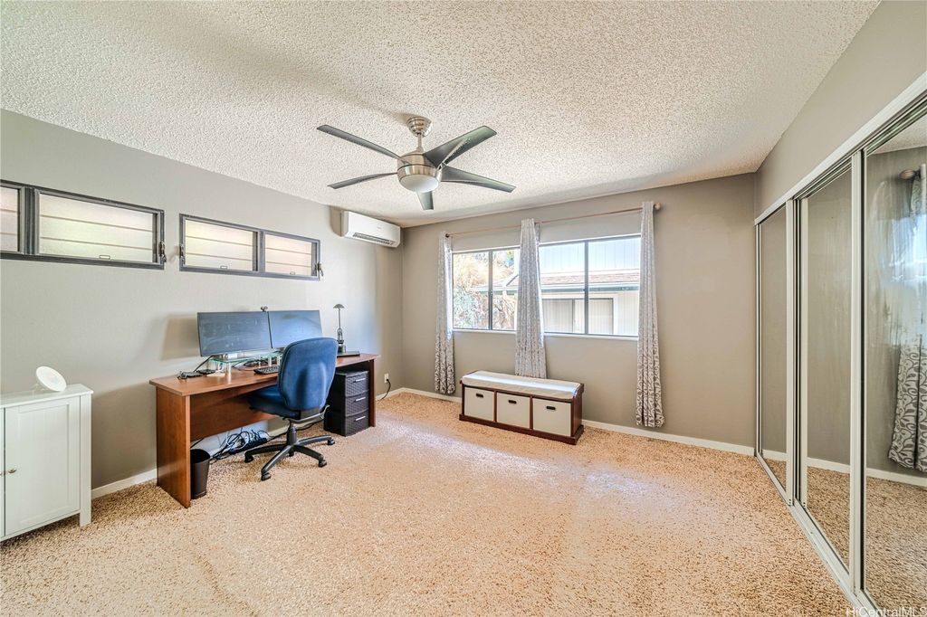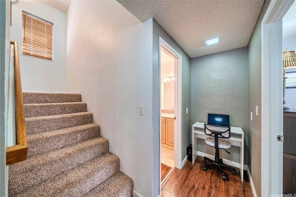 Step into this stunning 3-bedroom, 2.5-bath home in the highly desirable Aiea Park Place community, complete with an enclosed garage for your convenience. Featuring split-system A/C and ceiling fans in every bedroom and the main living area, this home ensures year-round comfort. Elegant laminated wood flooring flows through the living spaces while plush wall-to-wall carpeting adds warmth and coziness to the bedrooms. Best of all, this home comes with 16 fully paid-for solar panels, dramatically reducing your electric bills and adding long-term value! With its unbeatable combination of modern upgrades, energy savings, and prime location, this is the dream home buyers have been waiting for"”schedule your showing today before it's gone