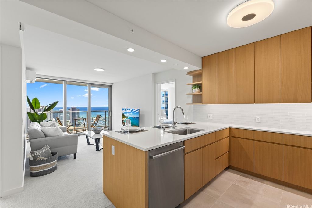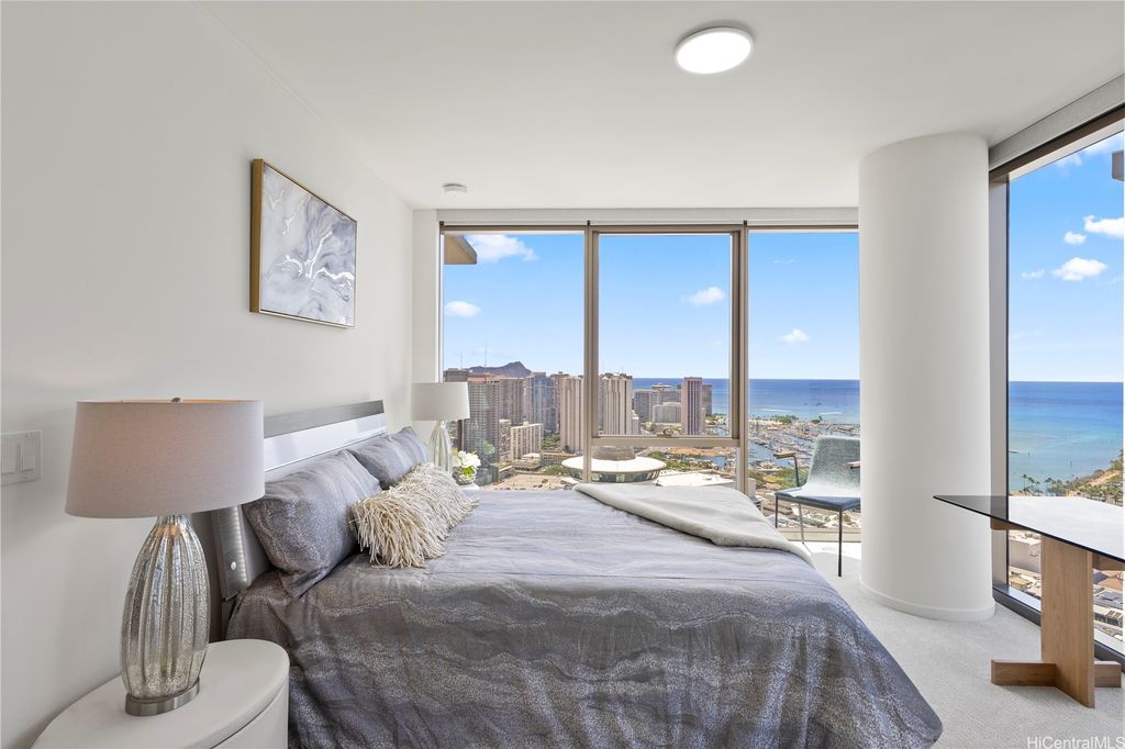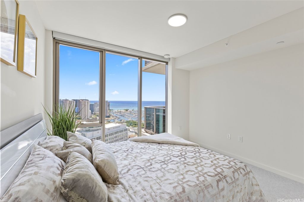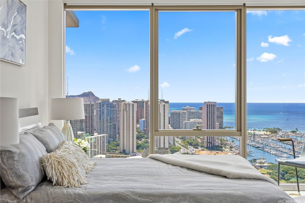 Desirable "01" corner unit with stunning Diamond Head and ocean views from the 39th floor. Features floor-to-ceiling windows, Silestone countertops, installed motorized shades, and an upgraded appliance package. Includes an EV charging station and option to purchase a rare spacious storage room. Enjoy resort-style amenities: pool, spa, sauna, fitness center, BBQ cabanas, on-site dining at Sera, and so much more! Prime location across from Ala Moana Center and minutes to Ala Moana Beach Park. Enjoy luxury urban living in the heart of Honolulu! The storage room currently attached to the unit is being sold separately and has an accepted contract.
