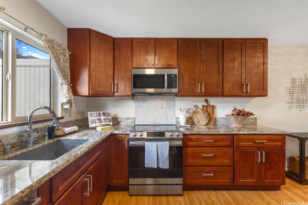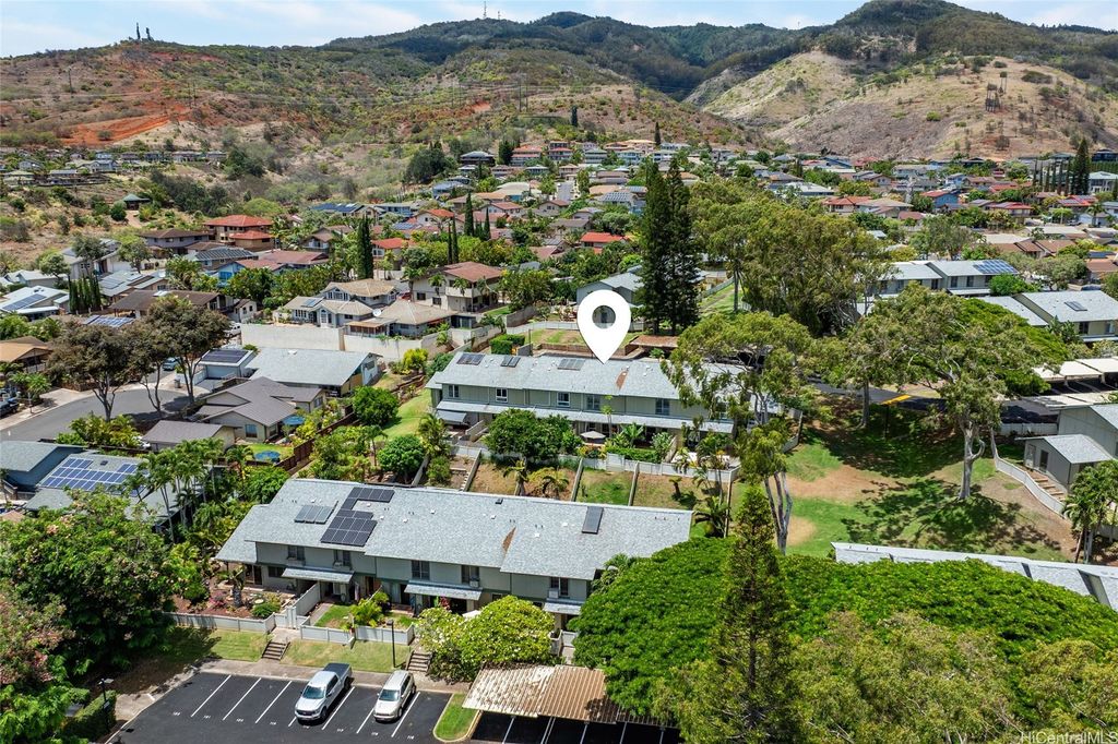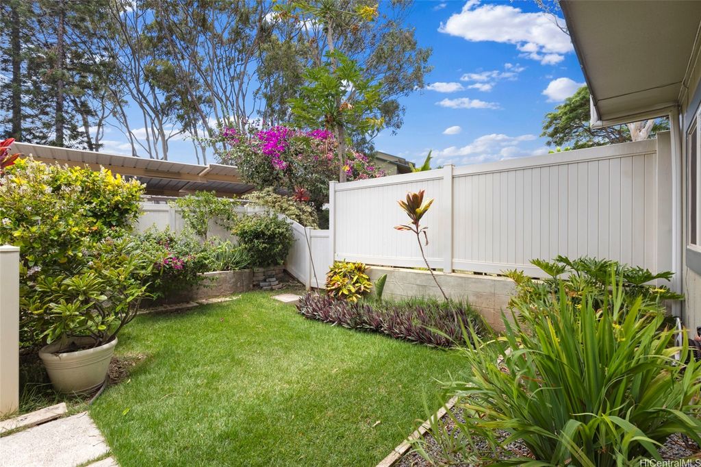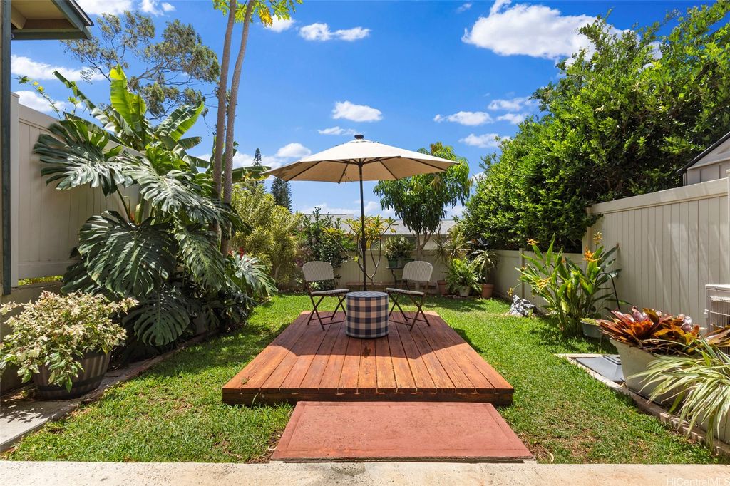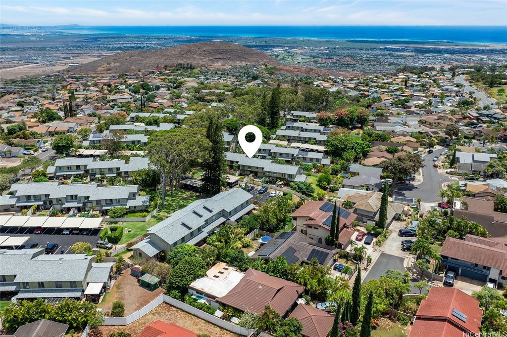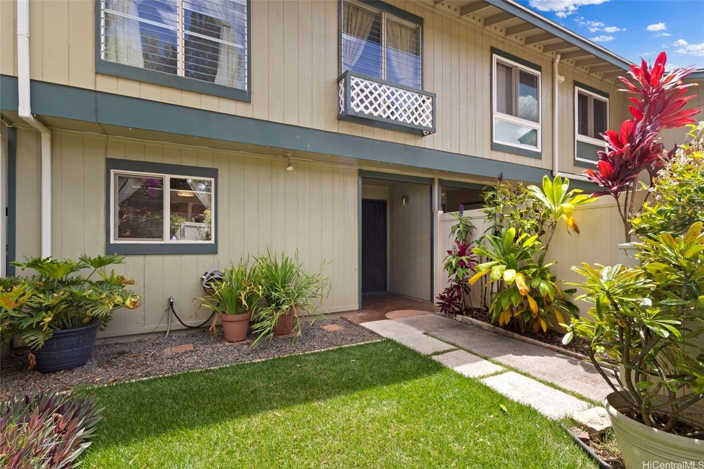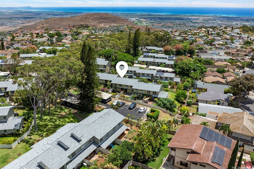 Discover island living at its finest in this stylishly updated 3-bedroom, 2-bath gem nestled in the cool hills of upper Makakilo. Designed for comfort and connection with nature, this home features two private, fenced yards filled with fruit-bearing trees, offering a peaceful, tropical setting for entertaining, relaxing, or letting pets roam free. Step inside to a bright, open kitchen complete with granite countertops, rich cherry wood cabinets, and a seamless flow into the dining space"”ideal for everyday living and casual gatherings. The primary suite is a true retreat, showcasing ocean views, a generous walk-in closet, and a sleek, modern en suite bath. Set in a pet-friendly community, this property also offers ample indoor and outdoor storage, plus plenty of room to enjoy outdoor living year-round. Conveniently located just minutes from top-rated schools, shopping, and freeway access, this home is the perfect blend of island comfort, modern upgrades, and location. Well run fiscally responsible home owners association, and an ASSUMABLE 2.35% VA LOAN offered here! The loan balance is currently $483,467 with a monthly PITI of $2,296. Reach out before it's gone.