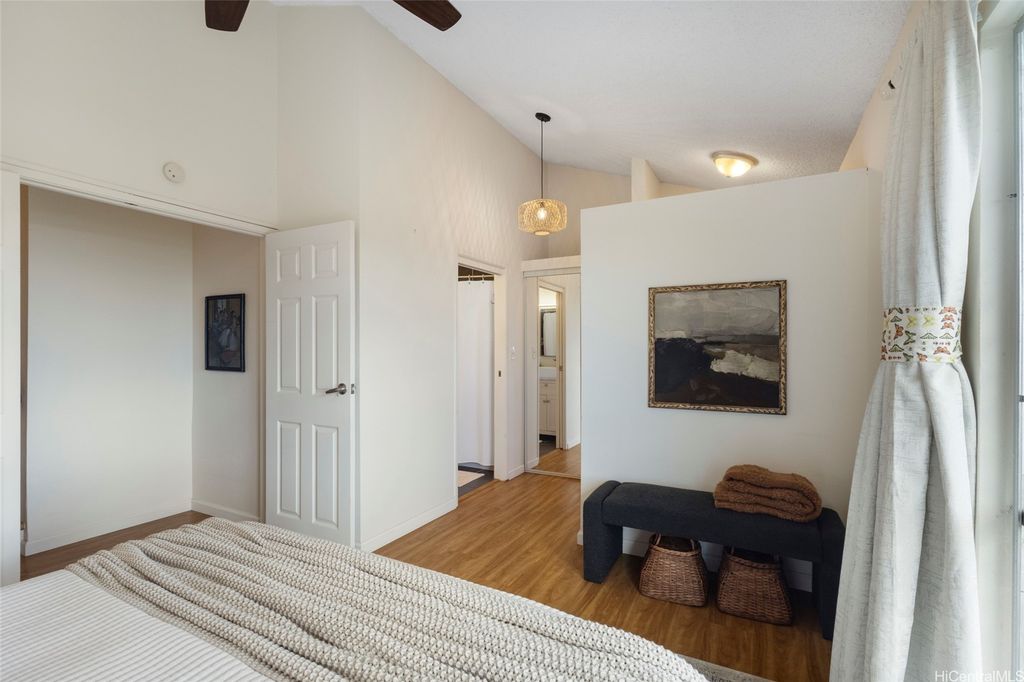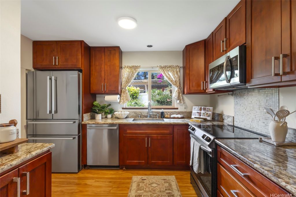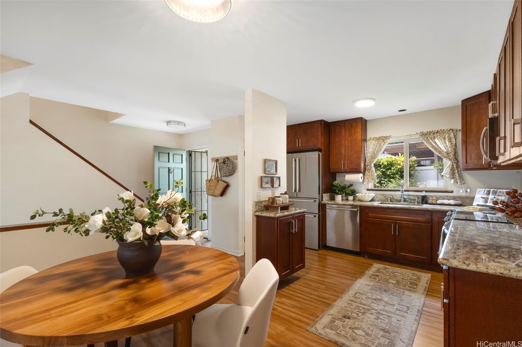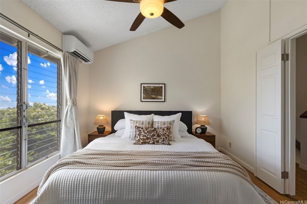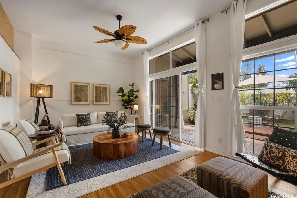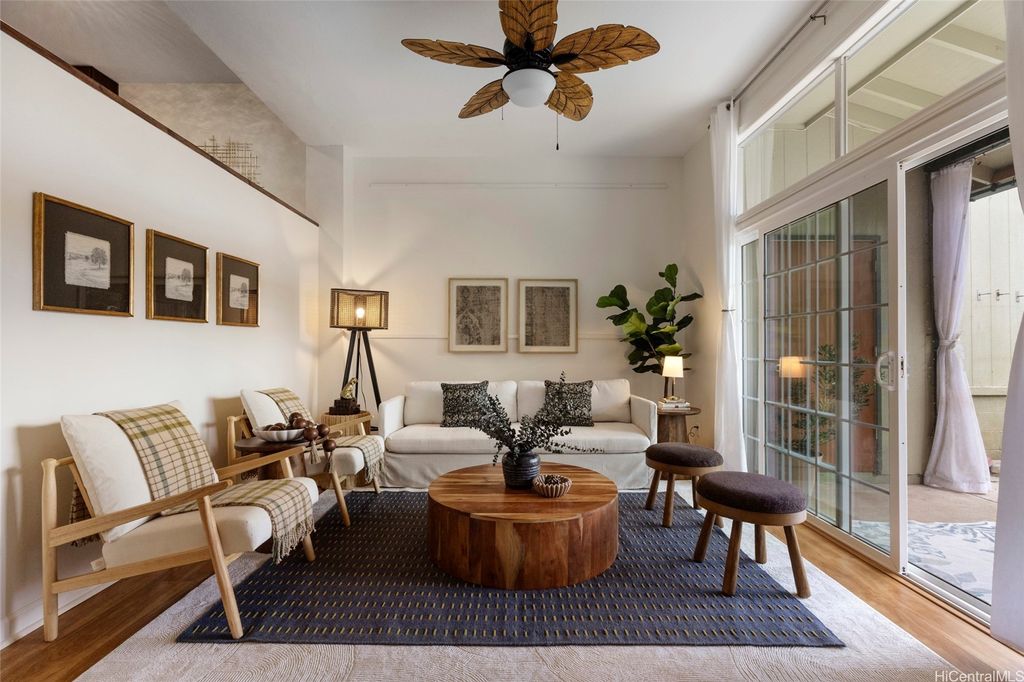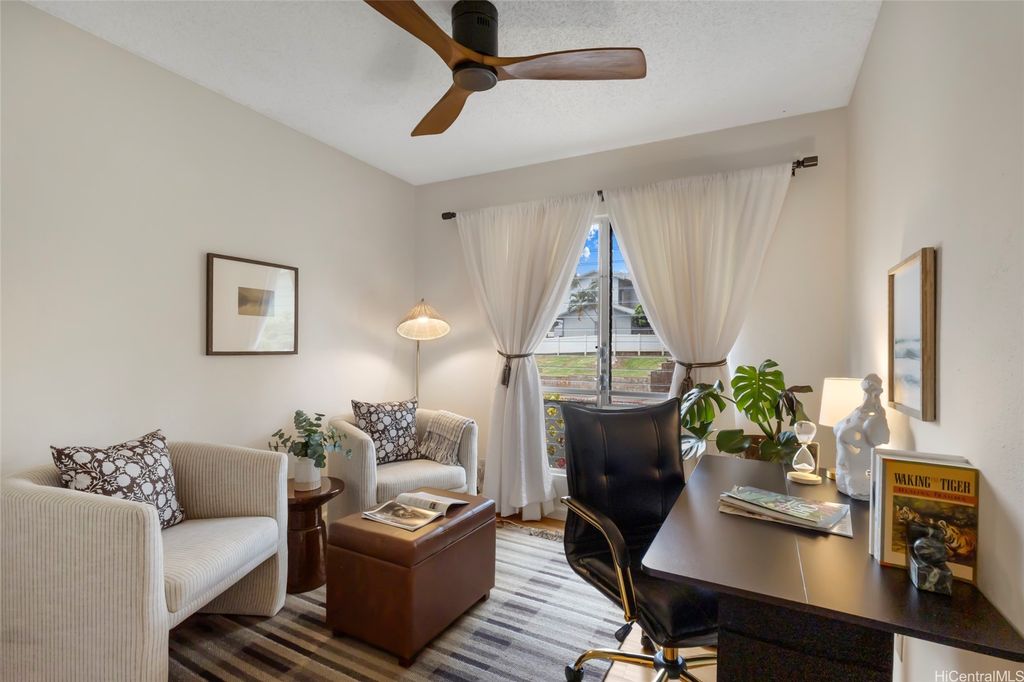 Discover island living at its finest in this stylishly updated 3-bedroom, 2-bath gem nestled in the cool hills of upper Makakilo. Designed for comfort and connection with nature, this home features two private, fenced yards filled with fruit-bearing trees, offering a peaceful, tropical setting for entertaining, relaxing, or letting pets roam free. Step inside to a bright, open kitchen complete with granite countertops, rich cherry wood cabinets, and a seamless flow into the dining space"”ideal for everyday living and casual gatherings. The primary suite is a true retreat, showcasing ocean views, a generous walk-in closet, and a sleek, modern en suite bath. Set in a pet-friendly community, this property also offers ample indoor and outdoor storage, plus plenty of room to enjoy outdoor living year-round. Conveniently located just minutes from top-rated schools, shopping, and freeway access, this home is the perfect blend of island comfort, modern upgrades, and location. Well run fiscally responsible home owners association, and an ASSUMABLE 2.35% VA LOAN offered here! The loan balance is currently $483,467 with a monthly PITI of $2,296. Reach out before it's gone.