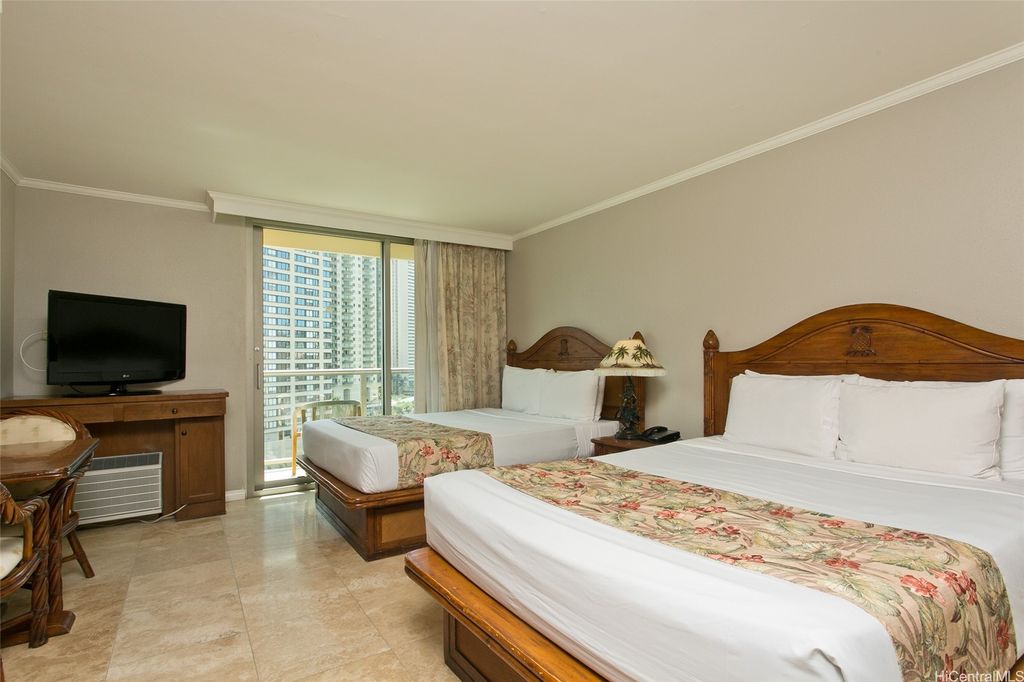 Luana Waikiki sits at the gateway into Waikiki, with Fort DeRussy Park at your doorsteps. Location is perfect to explore all corners of Waikiki. Overlooking the park and city with mountain views from the lanai, ready to relax and enjoy the resort lifestyle. This fully furnished unit has two queen size beds. It is currently in the Hotel rental pool but can be personally managed as a legal short-term rental. Resort style amenities such as pool, deck, fitness room with plenty of sitting area in the lobby with concierge, and valet.