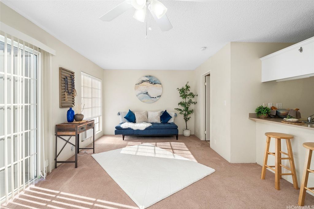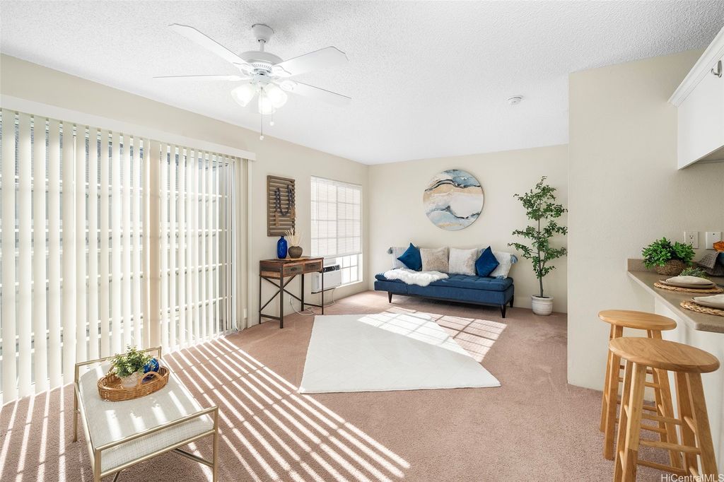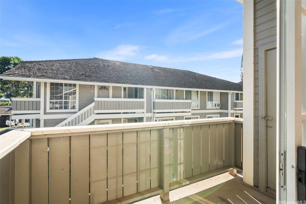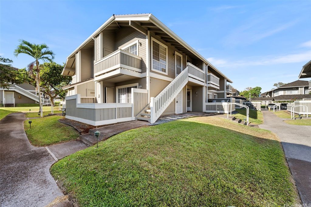 Take advantage of this opportunity to own this studio unit in the desirable Royal Palm at Waipio! This unique townhouse studio unit has been well maintained and includes a lanai with storage closet, stacked washer/dryer and 1 covered parking! This complex is centrally located near shops, parks and restaurants! Gentry Waipio Community Association fee of $18.33/month.