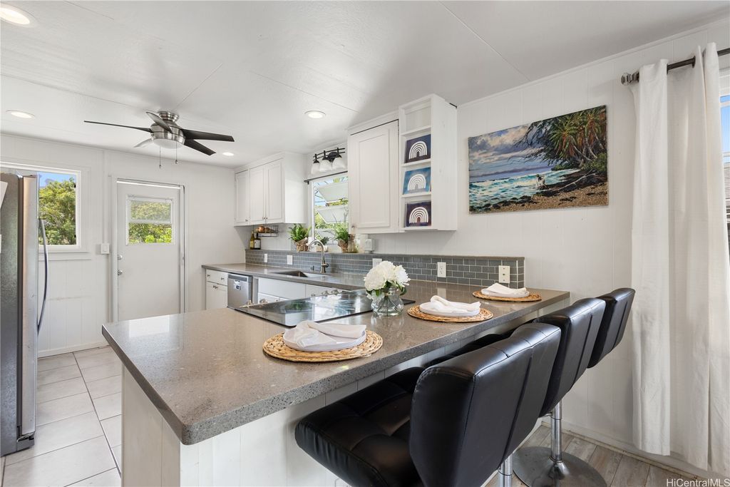 Discover the beauty of island living in this move-in ready single-family home, perfectly situated in Kaneohe with direct water access that will lead you to the Kaneohe Sandbar. This rare location offers the ultimate lifestyle for ocean lovers, where jet-ski's, paddling, and breathtaking views are just steps from your door. Inside, you'll find a beautifully updated kitchen with modern finishes, perfect for both everyday living and entertaining. The home's open and inviting layout provides seamless flow, while large windows bring in natural light and showcase the surrounding tropical beauty.