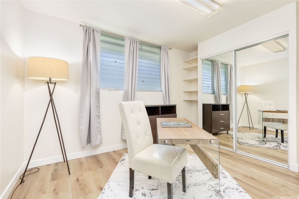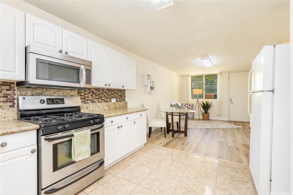 Welcome home to this rarely available, beautifully renovated 2-bedroom, 1-bath, 1-parking condo in the Holiday Apts in Kalihi. This highly sought -after, ground floor unit was updated in 2025 offering a clean and modern aesthetic, ideal for those seeking both style and convenience. Upgrades include new luxury vinyl plank, fresh interior paint, new custom door, and much more! Convenient location with close proximity to Costco, shopping, dining, and easy access to major highways. With a low maintenance fee of just $0.92 per sqft., this is an exceptional opportunity to own or invest in Honolulu. Don't miss out on this gem-schedule showing today!