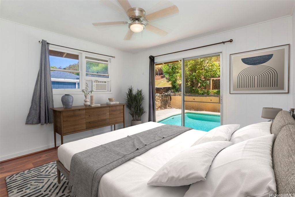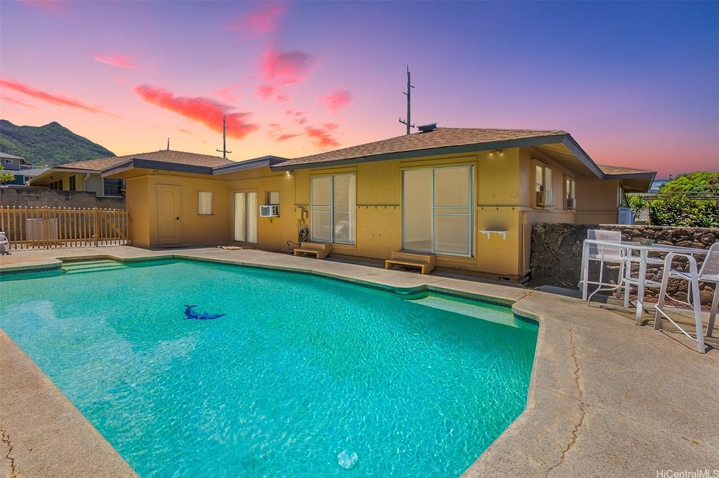Amazing opportunity to own in Kailua! This flexible floor plan offers endless possibilities with a well-maintained 4-bedroom, 2-bath main home (currently configured as a 3/1 plus a spacious studio). An additional remodeled studio (5th bedroom), separated by the saltwater pool, enjoys treetop and mountain views of Enchanted Lake, along with cool breezes and privacy. Ideal for multigenerational living, a home office, or rental income potential. The property is fully fenced and landscaped with a sprinkler system"”perfect for your fur babies! Conveniently located near world-famous Kailua beaches, parks, shops, and restaurants, with easy access to the H-3 and Pali Highway"”without having to fight traffic in Kailua town. Put this home on your must-see list! Number of bedrooms differs from tax records. One or more photos have been enhanced.