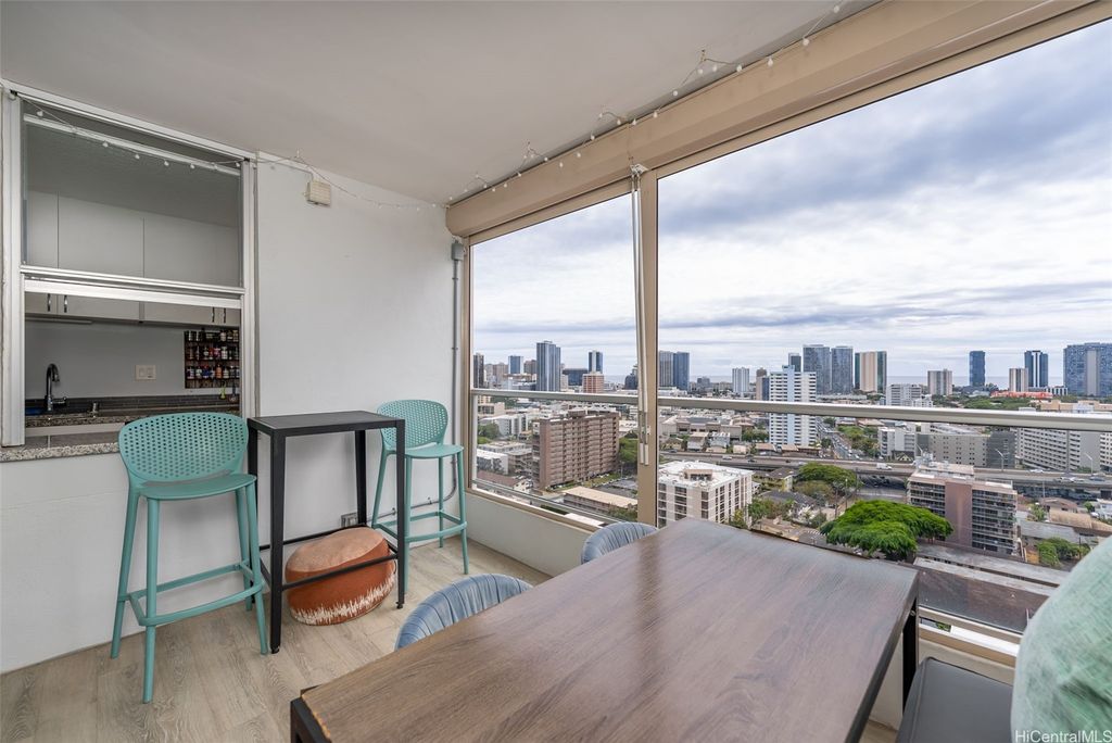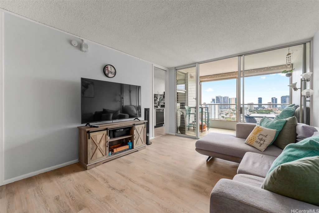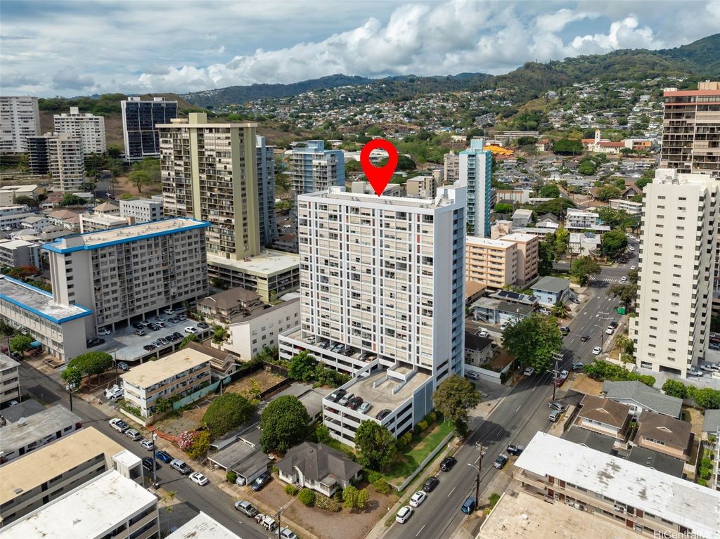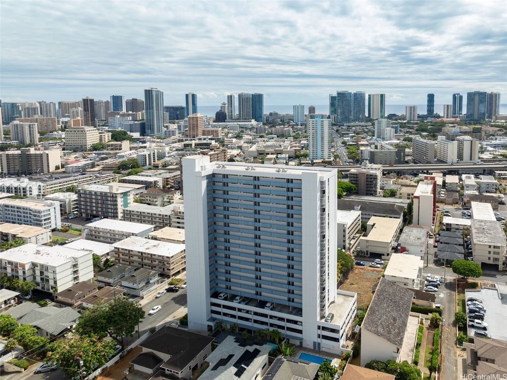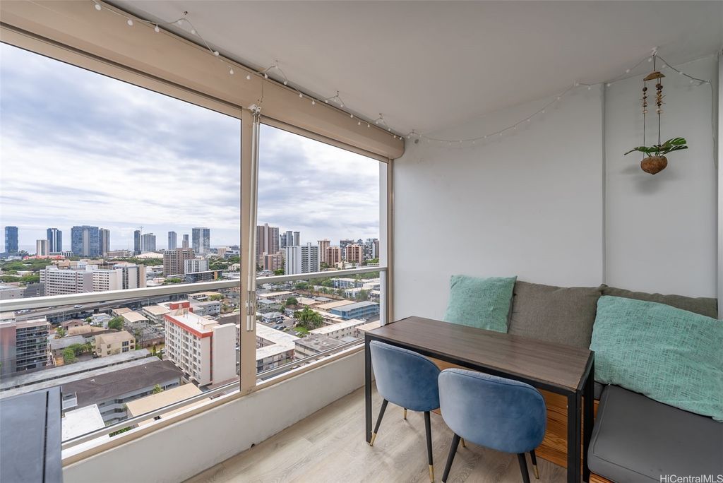 Comfort and convenience, in the heart of Honolulu. Nestled on the top floor of Pi'ikoi Tower, this stunning pet-friendly 1 bed, 1 bath condo offers breathtaking mountain and ocean views that will leave you in awe. The spacious living area flows seamlessly into the modern kitchen, featuring stainless steel appliances and a charming dining space"”on your delightful lanai. The inviting open floor plan, accentuated by laminate flooring which maximizes both comfort and functionality. This unit comes with a dedicated parking stall located conveniently near the lobby entrance as well as a dog run for fur friends. Pet policy: 1 pet, no weight limit (please confirm with management). Whether you are a first-time homebuyer, looking for a vacation retreat, or seeking an investment property, this top-floor unit provides it all. The island breezes and abundant natural light create a warm, welcoming atmosphere that you will love coming home too.