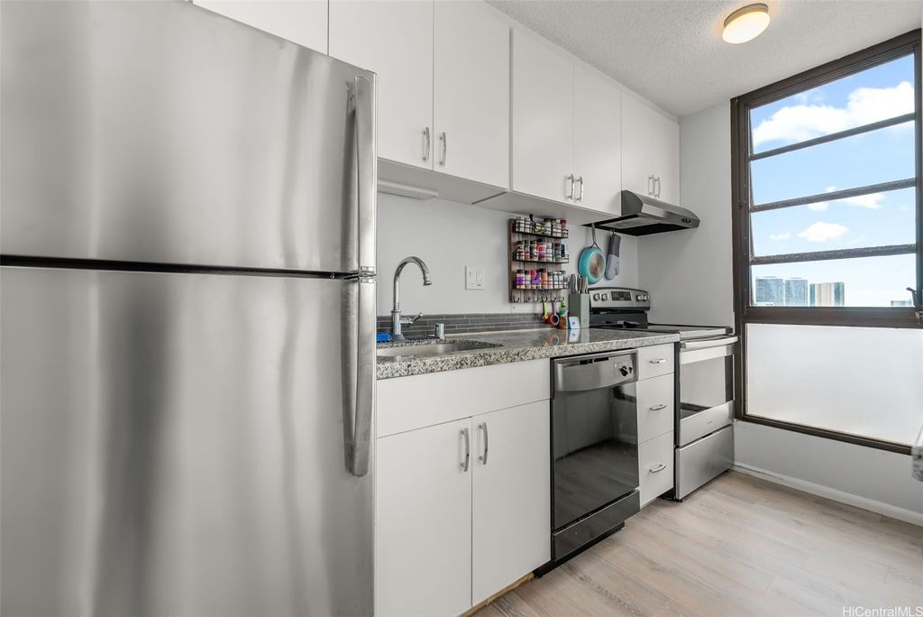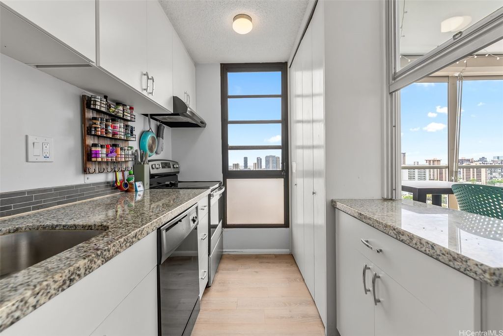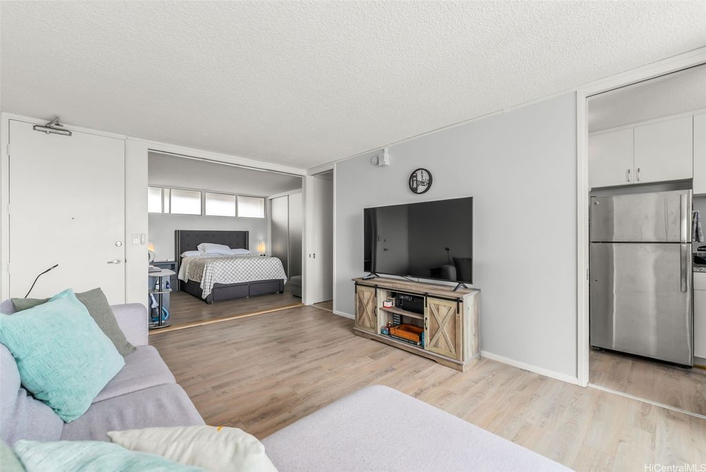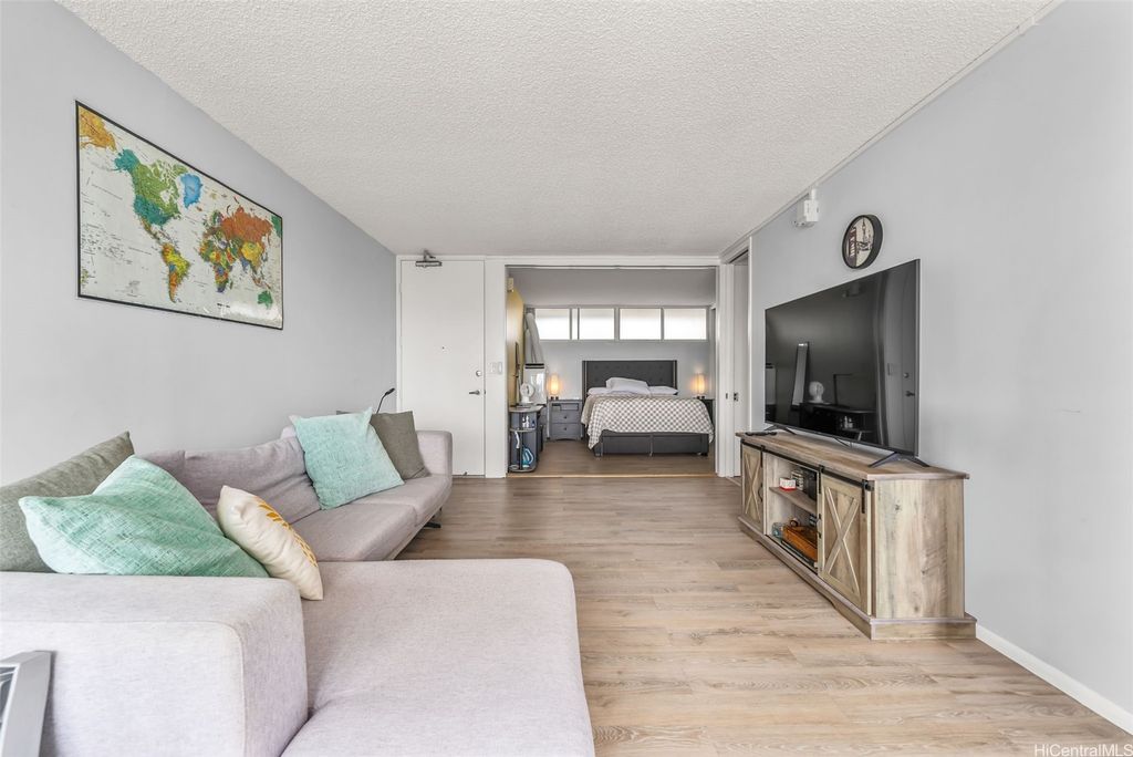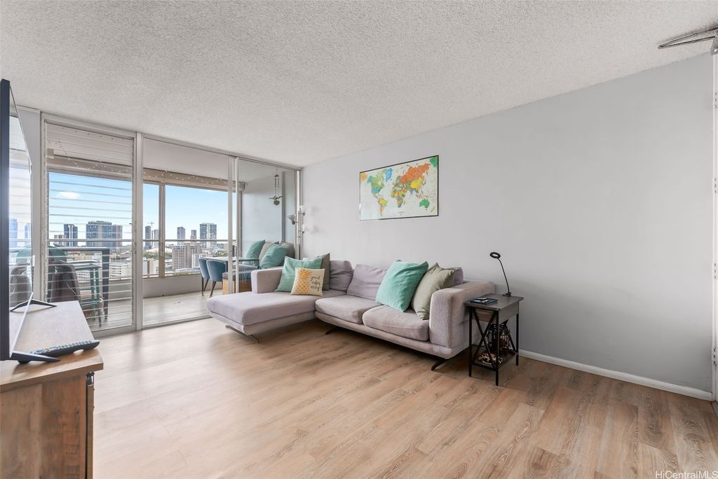 Comfort and convenience, in the heart of Honolulu. Nestled on the top floor of Pi'ikoi Tower, this stunning pet-friendly 1 bed, 1 bath condo offers breathtaking mountain and ocean views that will leave you in awe. The spacious living area flows seamlessly into the modern kitchen, featuring stainless steel appliances and a charming dining space"”on your delightful lanai. The inviting open floor plan, accentuated by laminate flooring which maximizes both comfort and functionality. This unit comes with a dedicated parking stall located conveniently near the lobby entrance as well as a dog run for fur friends. Pet policy: 1 pet, no weight limit (please confirm with management). Whether you are a first-time homebuyer, looking for a vacation retreat, or seeking an investment property, this top-floor unit provides it all. The island breezes and abundant natural light create a warm, welcoming atmosphere that you will love coming home too.
