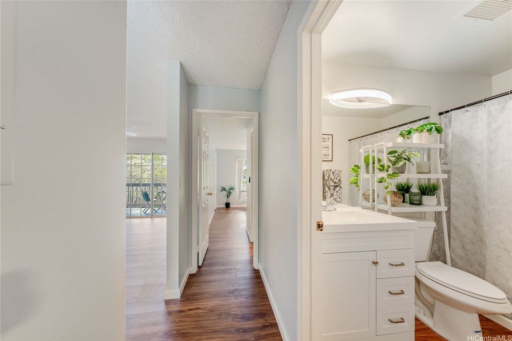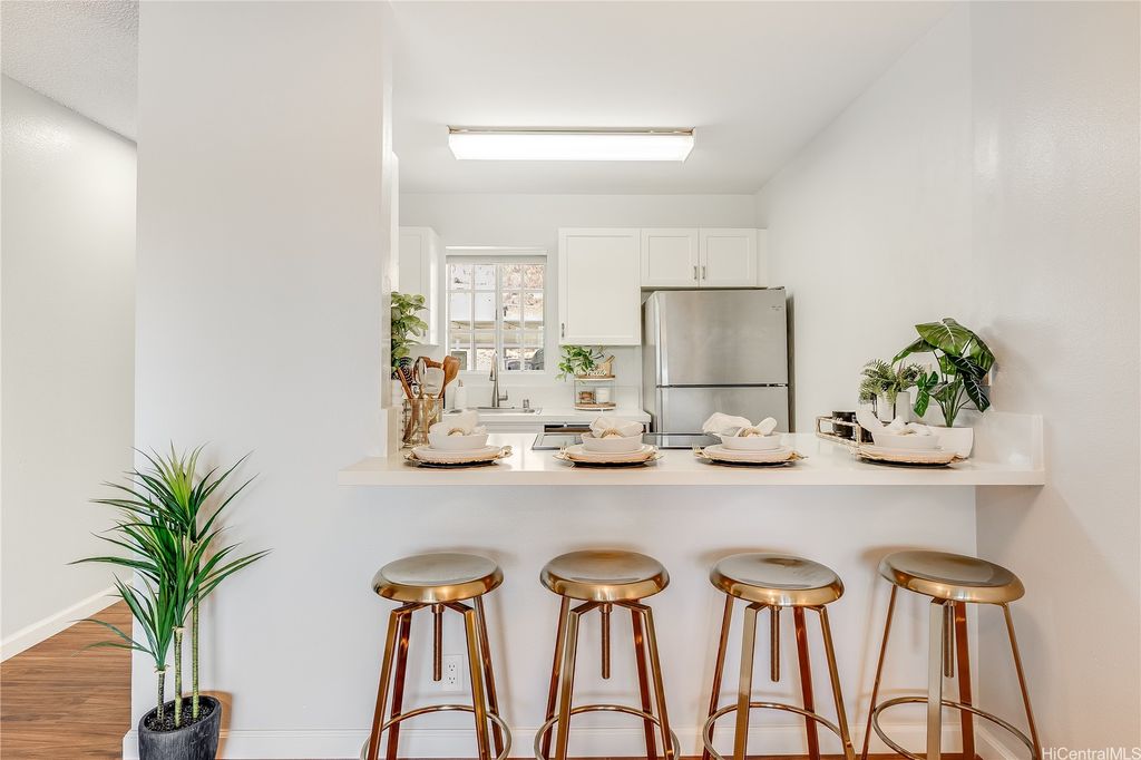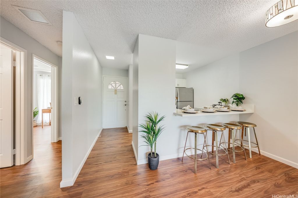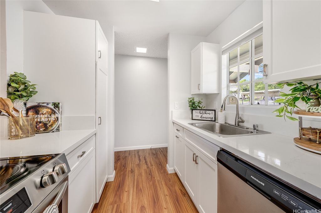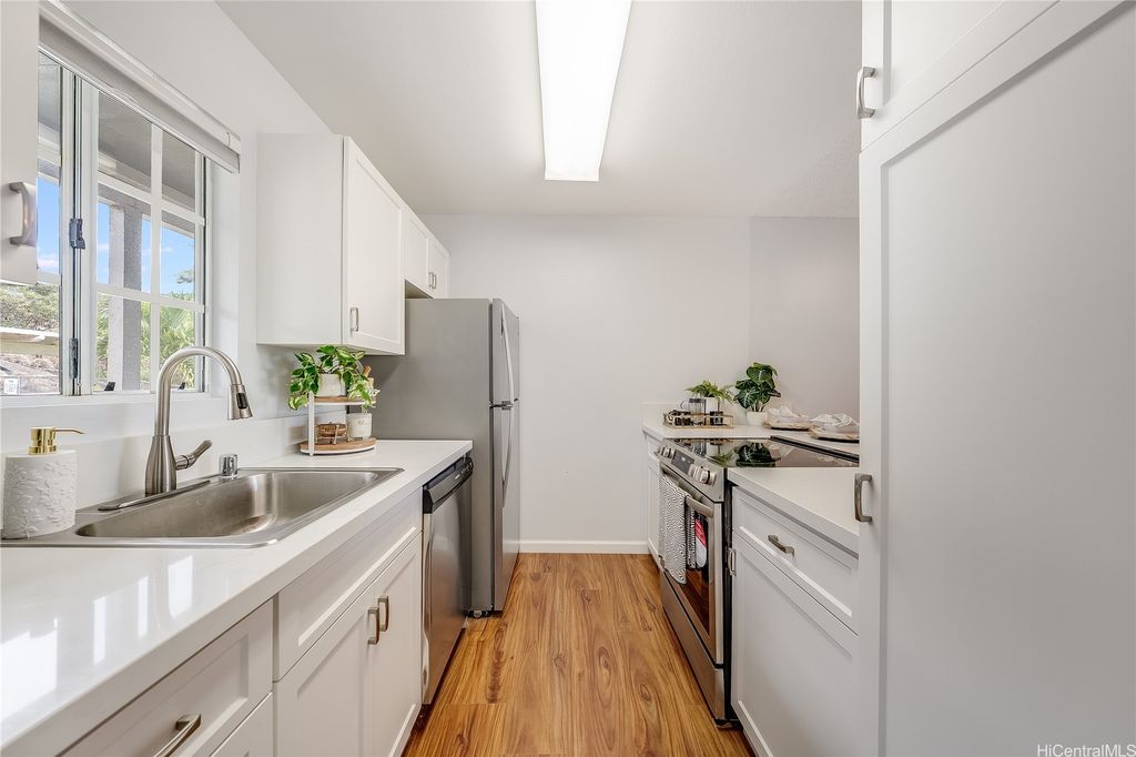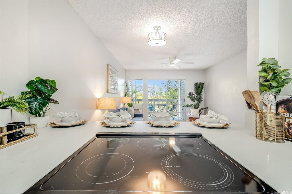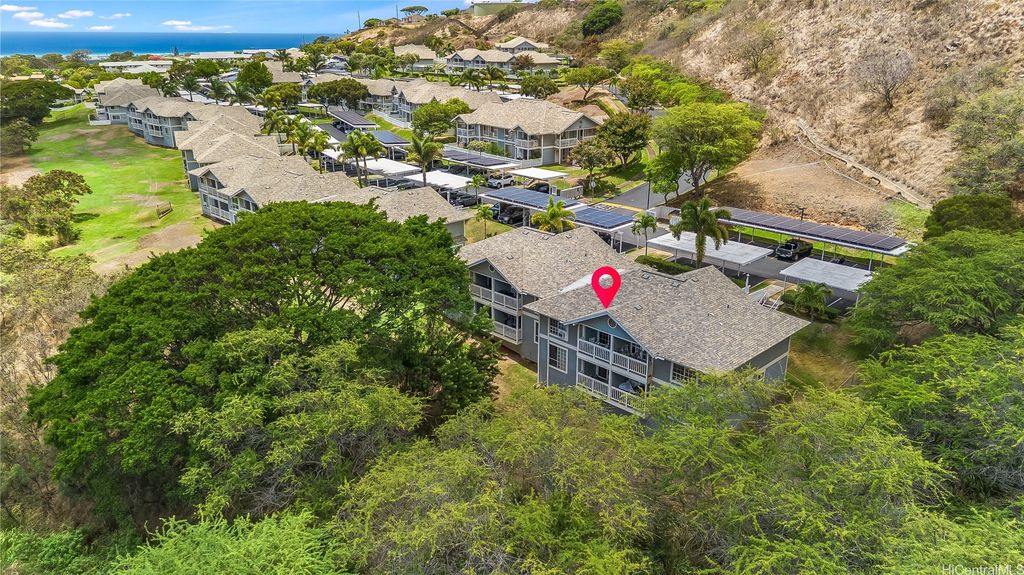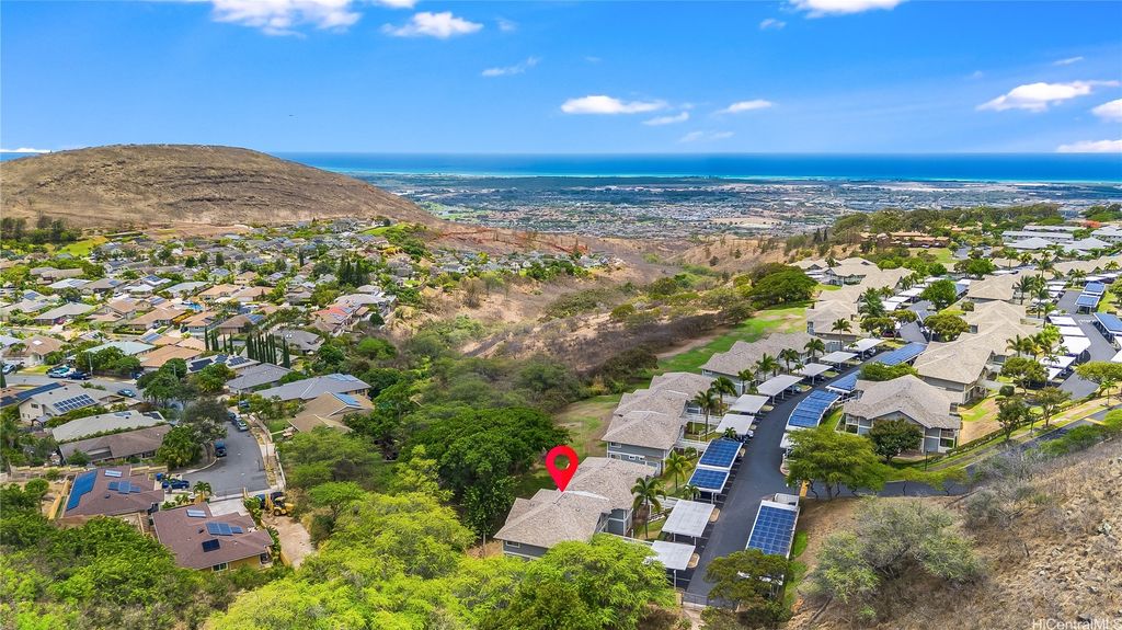 Prime Makakilo Cliffs Living! Corner Top of Community 2-bedroom, 2-bath townhouse with 2 Covered Parking offers lush views from your lanai. Enter home with ease since there is no up & down stairs to carry groceries in from your stall.The Open Concept Living / Dining space flows into a functional kitchen with brand new countertops, oven, sink, dishwasher, and washer/dryer. Recently refreshed with new laminate floors, neutral paint, and updated baths, this move-in ready home blends style & comfort. The primary suite features its own full bath, while the second bedroom is perfect for guests, family, or a home office. Stay cool with breezy trade winds or living room & primary room A/C. Perched on the hills of Makakilo, the Makakilo Cliffs community is known for its cooler climate, scenic surroundings & welcoming atmosphere. Enjoy BBQ areas, guest parking, and the tranquility of hillside living just minutes from everything. Kapolei, the "Second City" offers shopping at Ka Makana Ali"˜i, dining, theaters, and schools, while easy freeway access makes commuting a breeze. Don't miss this rare opportunity for comfort, location & lifestyle in one! Schedule your private showing today!