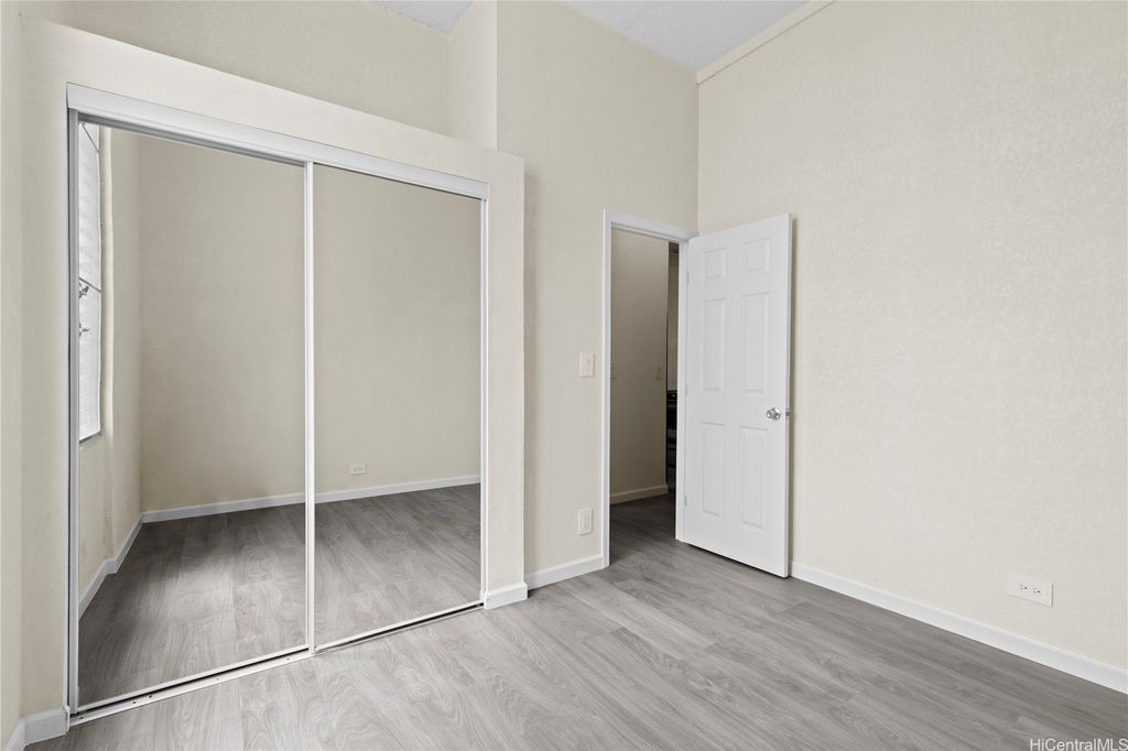 WHY RENT IF YOU CAN BUY? This RARERY AVAILABLE GROUND FLR UNIT W/ 10 FT CEILING in Leolua Regent has been meticulously renovated & is ready for you! Featuring 2 bedrooms, 1 bath, & 1 assigned parking & lots of street parking. This stunning condo boasts brand-new stainless steel appliances, new ceiling fans on all bedrooms, floor to ceiling bathroom tiles, fresh paint, soaring 10FT CEILINGS, and elegant luxury vinyl plank flooring throughout, self closing kitchen cabinets & drawers with European style cabinets, quartz countertop, sliding glass door in bathroom, mirror closet & ceiling fans on all bedrooms and dining area, stainless steel appliances & more. Located behind Seafood City Supermarket, Waipahu Shopping Center, & directly across from the Waipahu Post Office, w/ minutes away to freeway exit. Designated parking close to the unit. Move-In Ready & Fully Renovated! Enjoy community amenities, including a sparking pool and laundry facilities. Community amenities include swimming pool & laundry facilities. Maintenance Fee (includes electricity, water, hot water & common area upkeep) + Special Assessment that covers spalling & painting started 9/24 & payable only for 10 years