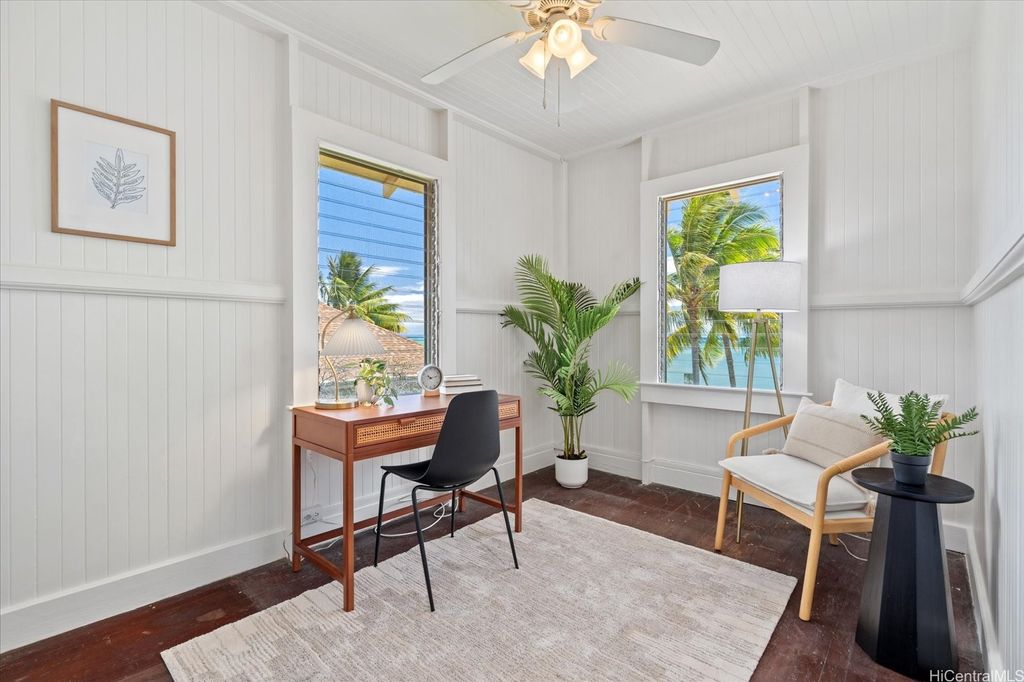 Every day brings a new adventure on Paiko Peninsula with paddling, swimming, snorkeling, surfing or kayaking. Or simply sway in a hammock under the palms as the trade winds carry your worries away! Host unforgettable sunset gatherings by the sand, or picnic beneath the beloved climbing tree. This charming 1929 beach home effortlessly blends vintage character with relaxed island living. A true gem with 5 bedrooms, a spacious yard, and timeless curb appeal, combined with the economic practicality of 20 owned PV panels and a plug-in charger. This enchanting beachfront retreat is tucked into a quiet, sandy peninsula; away from the hubbub of Kalanianaole Highway, yet close to town amenities. Find calm waters and sand bars on the inside, excellent surf on the outside. Watch turtles and fish glide along the reef's edge, spot whales breaching beyond in the distance and paddle out to some of the best uncrowded surf spots the South Shore offers. From sunrise to sunset, the views are divine. This is more than simply a home; this is a rare and magical place!
