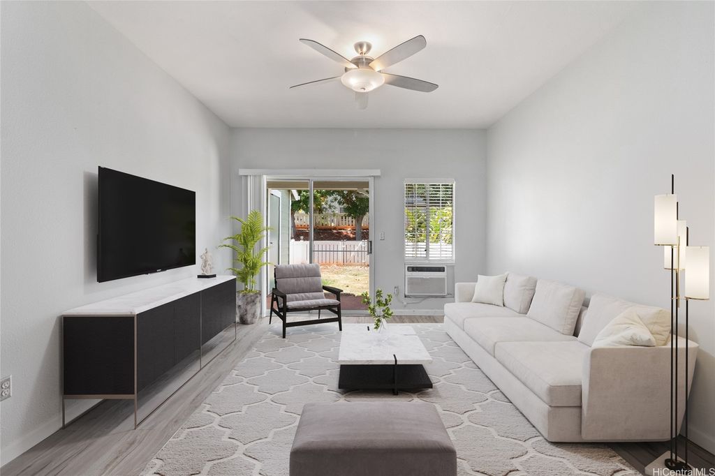 Live with ease in Waikele! Welcome home to this comfortable, functional 2-bed, 2-bath townhome at Village on the Greens in Waikele. The ground floor of the residence features your kitchen w/ ample cabinets, under-stair storage, bonus half-bath, versatile living/dining room layout, and access to your fenced-in patio & yard; while your bedrooms, full bathrooms and laundry are upstairs. TWO PARKING stalls conveniently positioned near your front door. Just outside your townhome community, spacious walking paths flanked by landscaped grounds will guide you to Waikele Country Club and Waikele Shopping Center - which features an outlet mall, restaurants, retail, groceries and services. Waikele's central location is great for commuting, with freeway onramps to access all parts of the island just minutes away. This is your opportunity to plant roots in an established, desirable community. *Some photos enhanced and/or virtually staged.