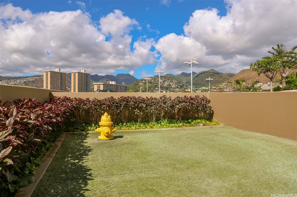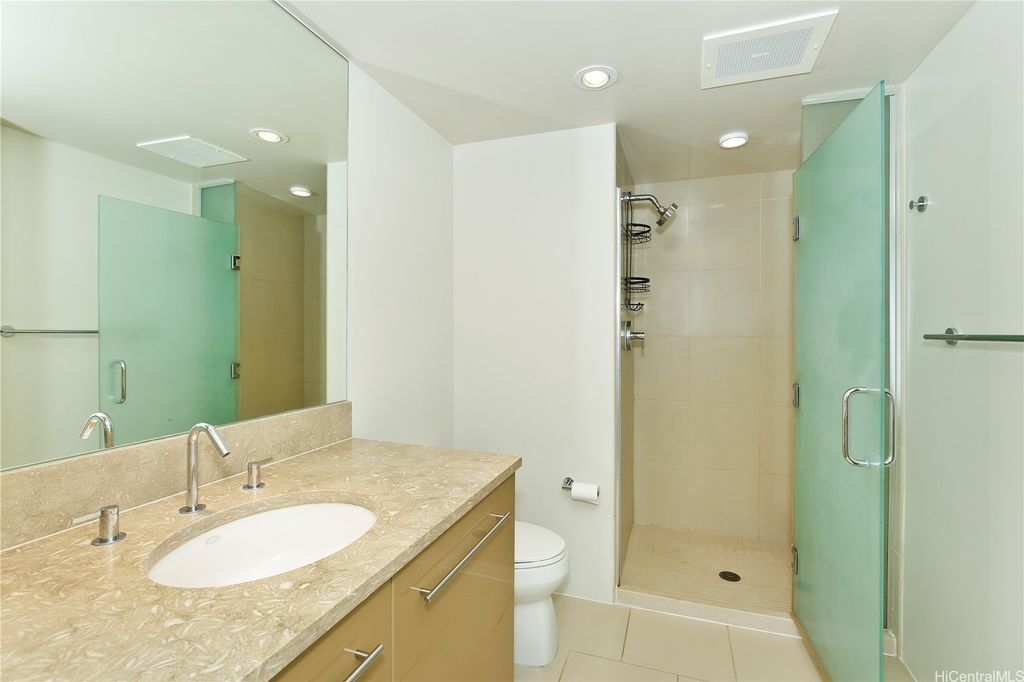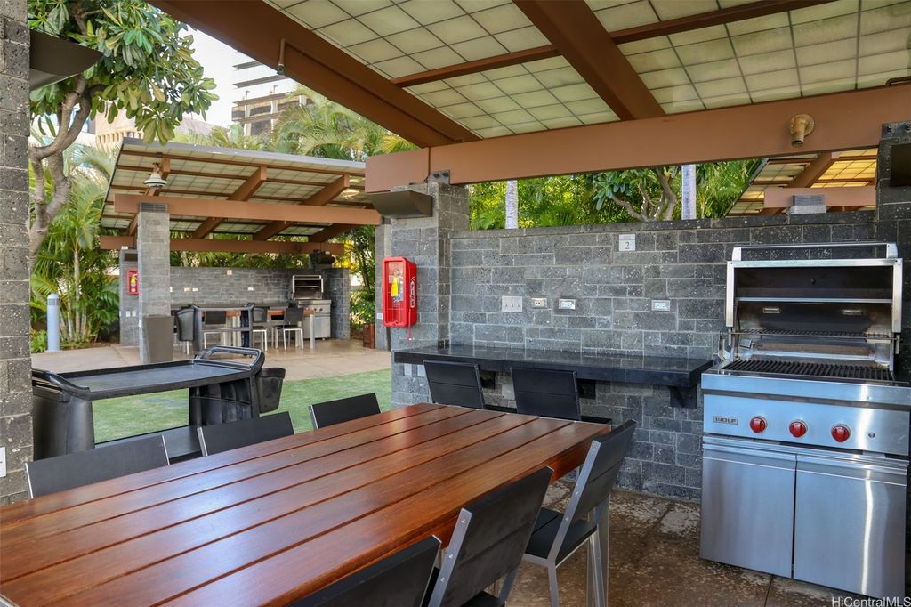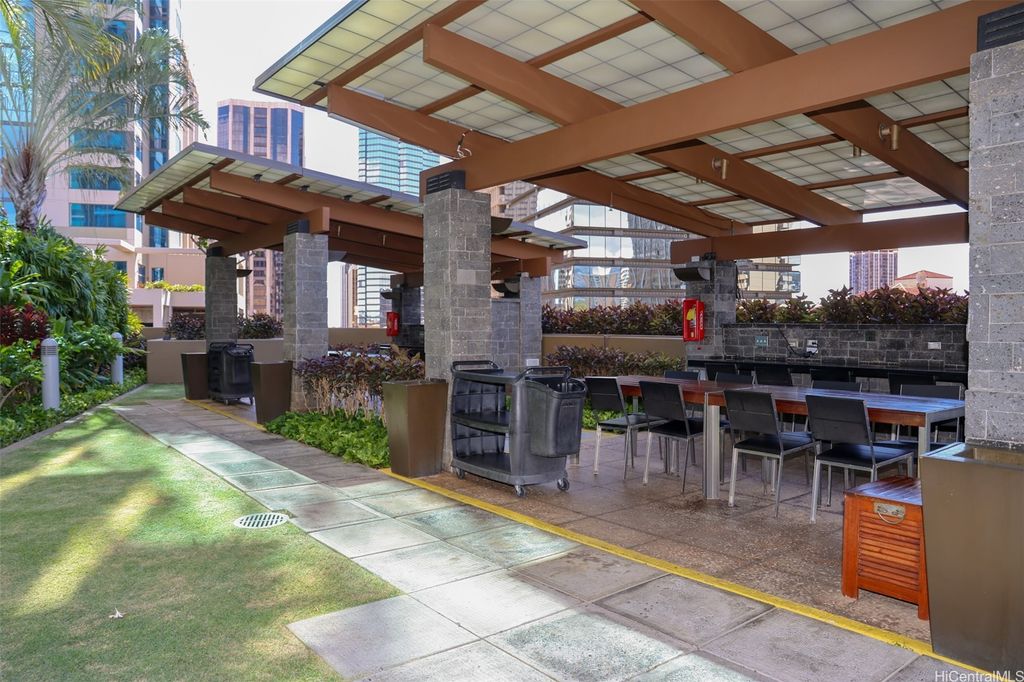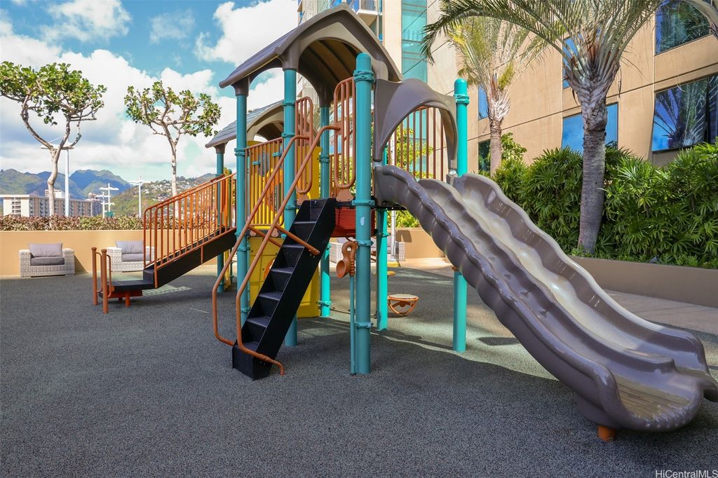 BACK ON THE MARKET. Downtown Penthouse living at its finest. Just minutes from downtown, restaurants, shopping and entertainment. This corner-end unit with floor to ceiling windows offers panoramic views of the city, ocean, Waianae mountains, Punchbowl and the Koolaus. The spacious 1,268 sq. ft. unit provides open concept living with a den area, walk-in closet and much more. Modern chef's kitchen with Viking appliances and a wine refrigerator! Split A//C in every room. Luxury resort-like amenities include a movie theater, infinity pool, jacuzzi, fully equipped fitness center, BBQ cabanas, yoga and music rooms, dog park, playground and party room. Large storage locker in garage. Photos were taken when the unit was vacant.