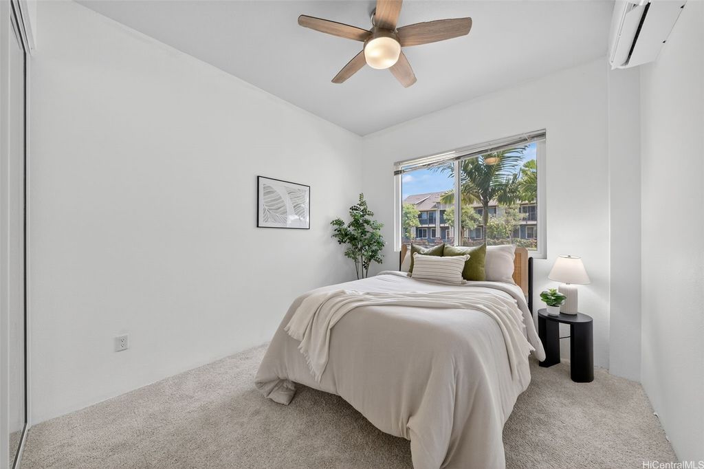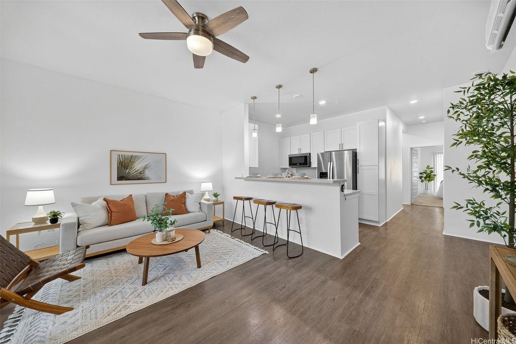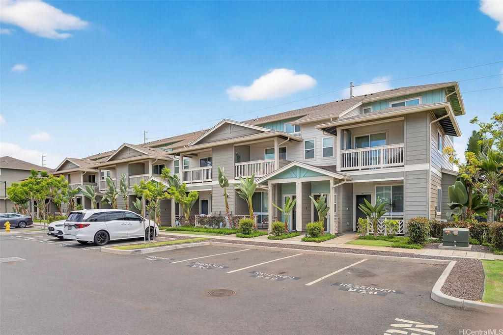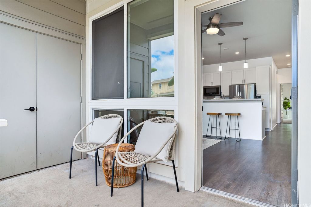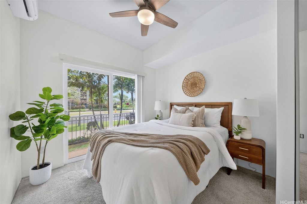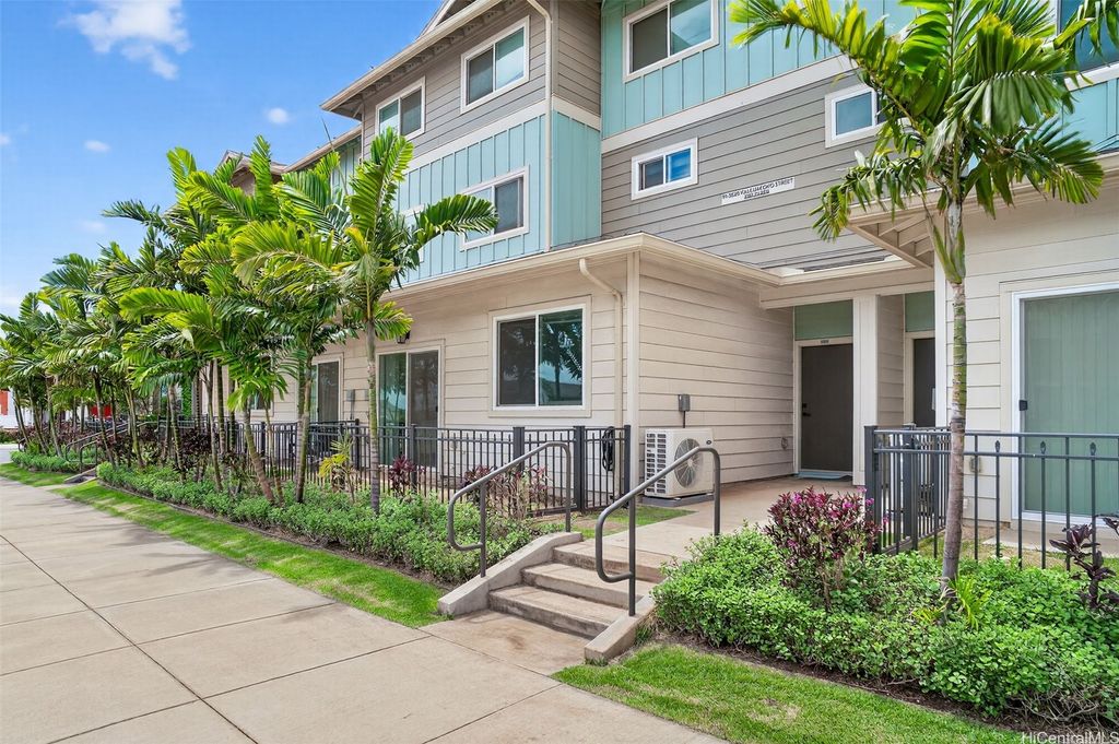 Freshly painted and ready for its next owner, this ground-floor Kohina Phase 2 unit offers 2 bedrooms, 2 full baths, and 2 assigned parking stalls. The open layout features vinyl flooring in the living areas, kitchen, and bathrooms, with carpet in the bedrooms for comfort. Split AC units in the living room and both bedrooms keep the home cool year-round. The primary suite opens to a small, private yard with street access"”ideal for relaxing or enjoying a morning coffee. Situated near UH West O"˜ahu, Ka Makana Ali"˜i, the Kroc Center, freeway on-ramps, and rail and bus stops, the location is as convenient as it gets. A standout feature is the VA loan assumption option at a 3.75% interest rate (Freedom Mortgage, approx. $490,000 balance), providing a rare financing advantage.