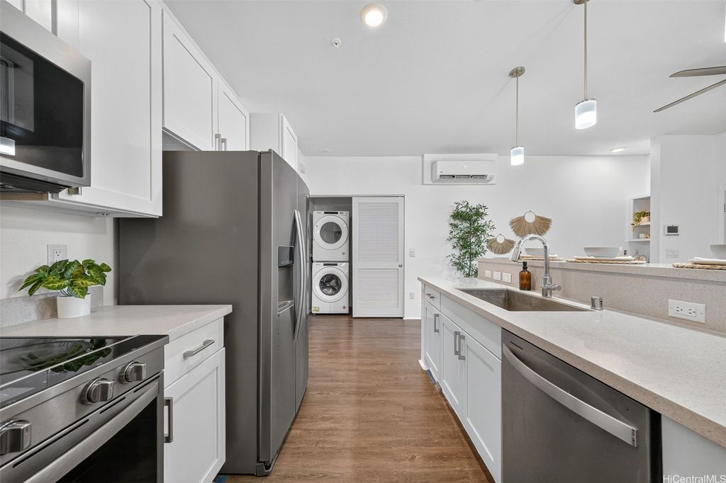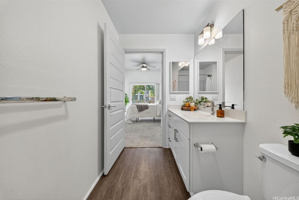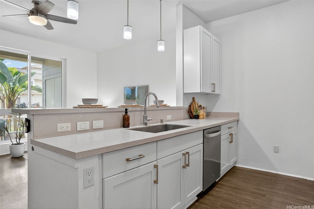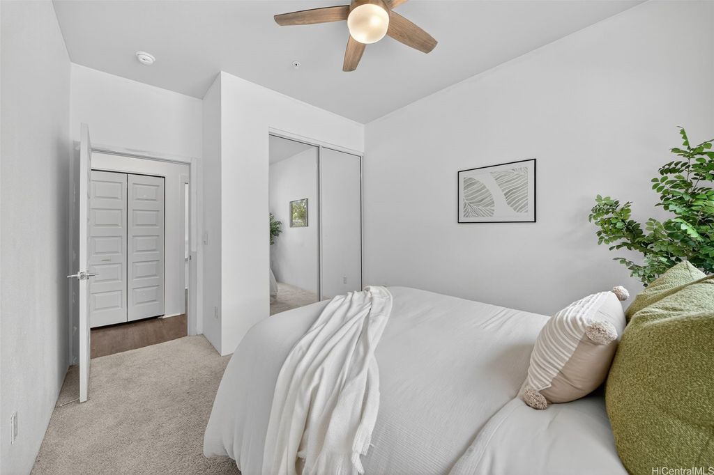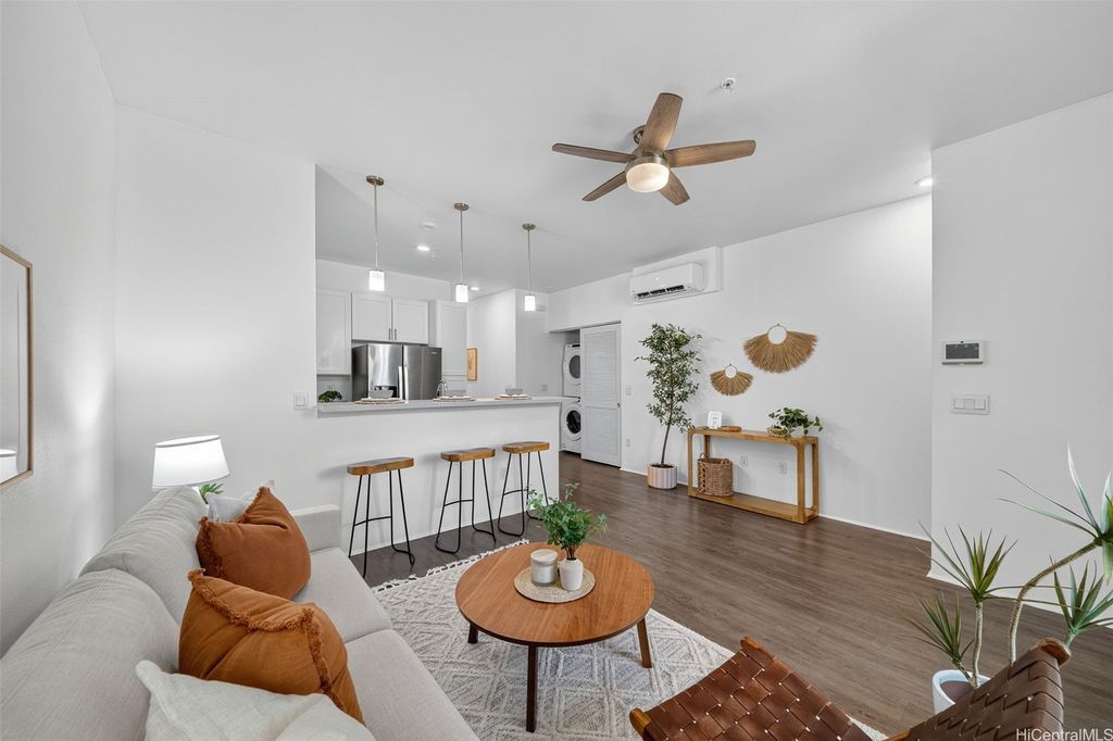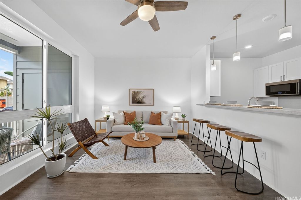 Freshly painted and ready for its next owner, this ground-floor Kohina Phase 2 unit offers 2 bedrooms, 2 full baths, and 2 assigned parking stalls. The open layout features vinyl flooring in the living areas, kitchen, and bathrooms, with carpet in the bedrooms for comfort. Split AC units in the living room and both bedrooms keep the home cool year-round. The primary suite opens to a small, private yard with street access"”ideal for relaxing or enjoying a morning coffee. Situated near UH West O"˜ahu, Ka Makana Ali"˜i, the Kroc Center, freeway on-ramps, and rail and bus stops, the location is as convenient as it gets. A standout feature is the VA loan assumption option at a 3.75% interest rate (Freedom Mortgage, approx. $490,000 balance), providing a rare financing advantage.