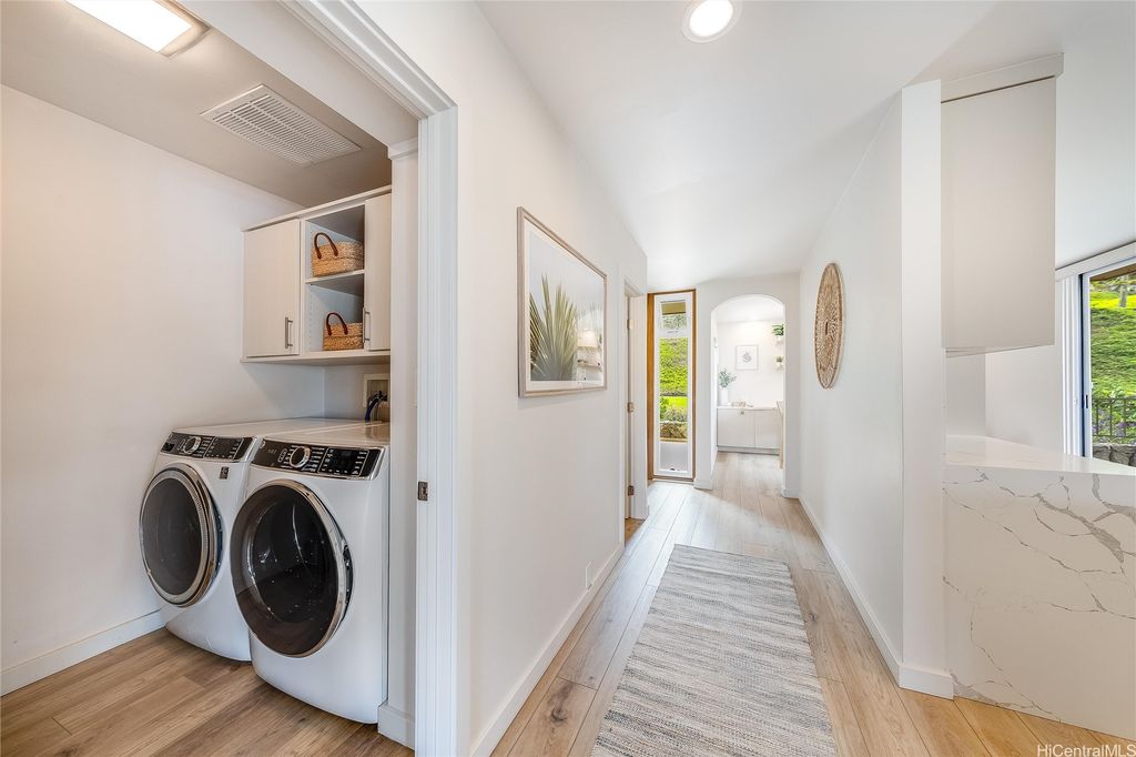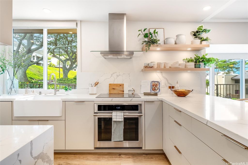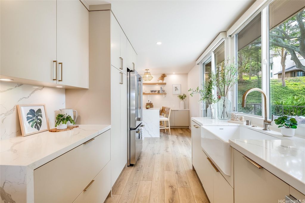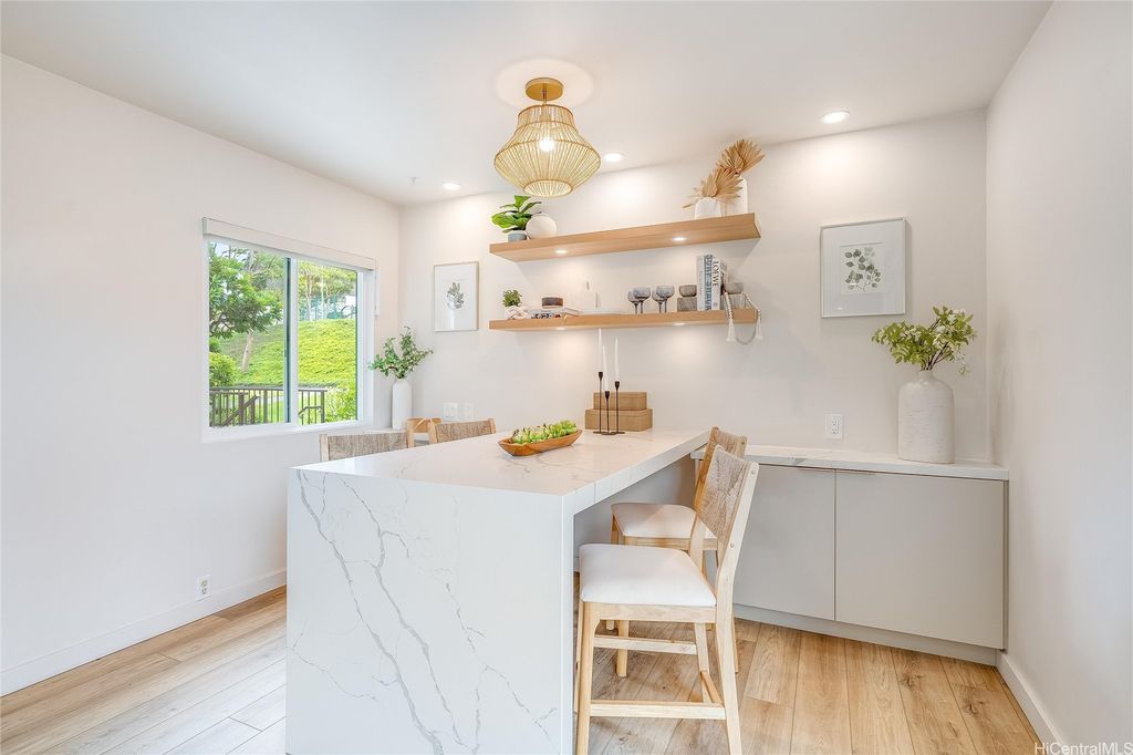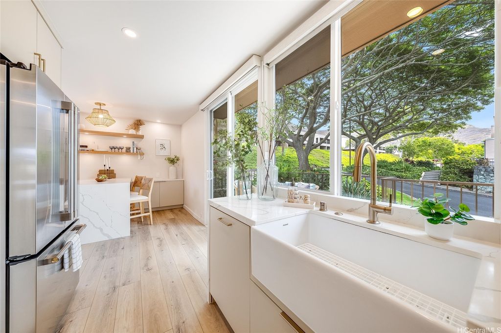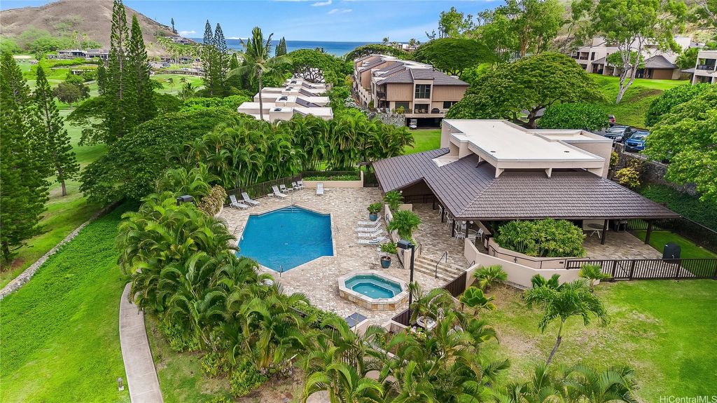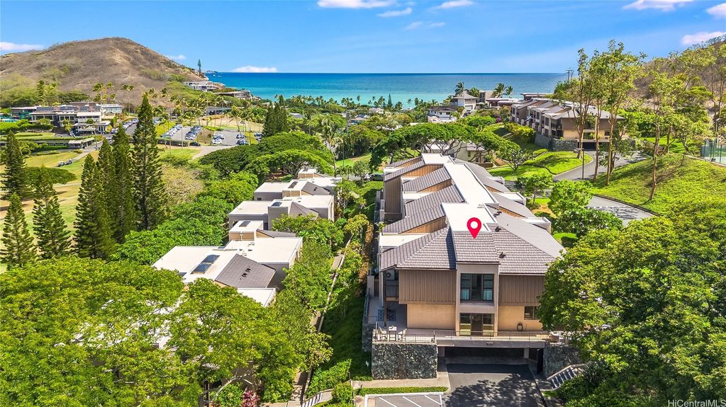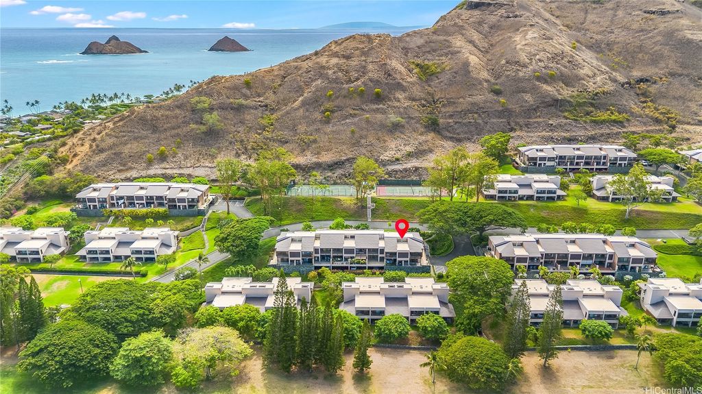 LUXURY in every detail! This rare 4-bedroom, 2.5-bath corner end unit at Bluestone in Lanikai overlooks the Koolau mountain range and Mid-Pacific Country Club golf course. The townhome offers expansive square footage, a wrap-around lanai, & a bonus third-level room. Renovated with sophistication, the kitchen features Calacatta Laza quartz with a waterfall dining table, farmhouse sink, Monogram appliances, and Makai Vinyl windows and doors built to endure Hawaii's climate. Custom designer touches include Hunter Douglas shades, vinyl shutters, built-out walk-in closets, a reimagined laundry room, & an Albizia cane webbing vanity in the lovely powder room. Additional upgrades include Mitsubishi split AC in the primary suite, Moda Living luxury vinyl plank flooring, and a 2021 water heater. A separate storage unit is located right next to 2 covered parking stalls. Within the pet-friendly, gated community, enjoy tennis and pickleball courts, heated pool, jacuzzi, sauna, lush landscaping, privacy and security"”all just minutes from Lanikai Beach and the popular Pillbox hike, in one of Kailua's most coveted neighborhoods. Opportunities like this don't come often. Come see it for yourself!