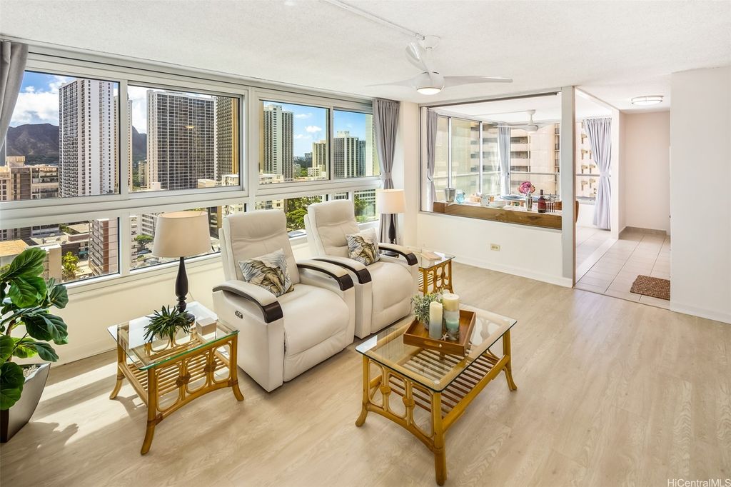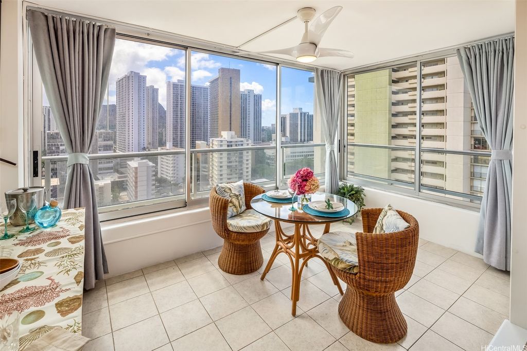 Located in the heart of Waikiki, and tucked away on a quiet lane Waikiki Townhouse is a secured, pet friendly, boutique building just minutes away from world-class dining, vibrant nightlife, shopping, schools and Waikiki Beach! This highly desirable "04" corner-end apartment has beautiful views from Diamond Head and the Ala Wai Golf Course to the ocean. Owner has enclosed the lanai, with windows that open to catch those wonderful breezes and sunsets, which gives you a wonderful dining or office area just off the kitchen. Recently updated with fresh paint, vinyl plank flooring and new washer/dryer, this home has been well maintained over the years. Skip the cost, upkeep and hassle of car ownership! This prime location offers quick access to work, dining, and fun, with public transportation nearby - perfect for Buyers who want to invest their savings elsewhere!