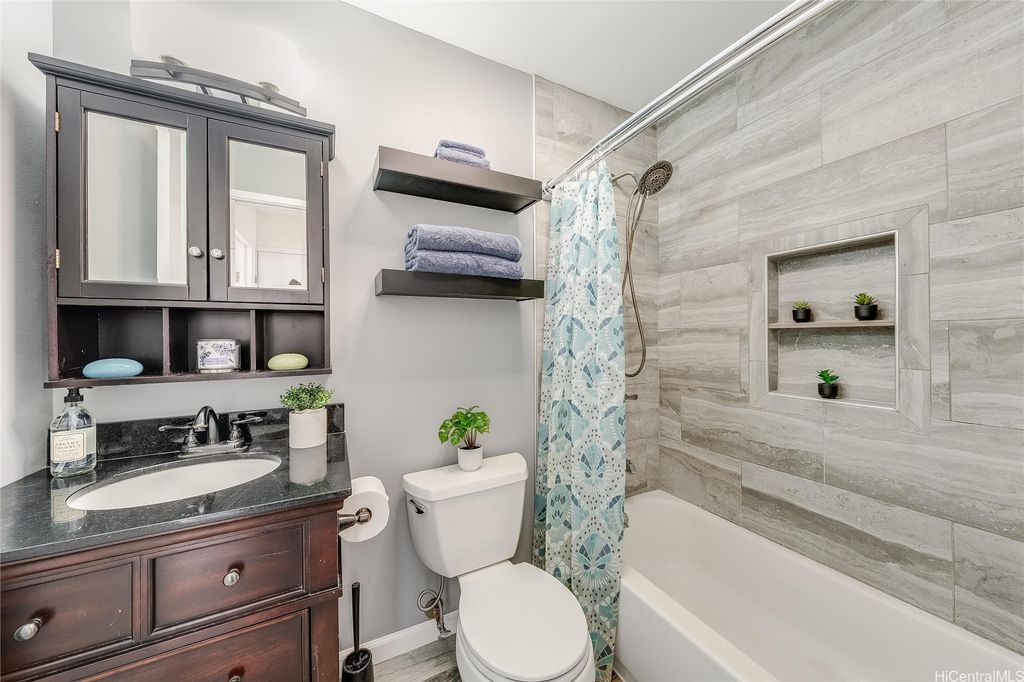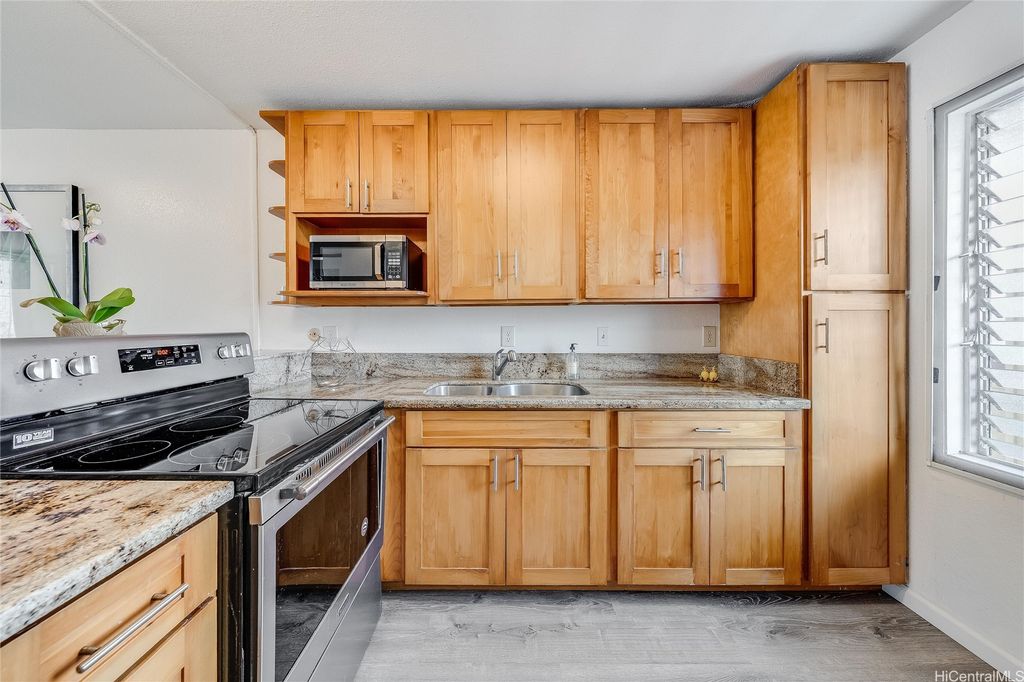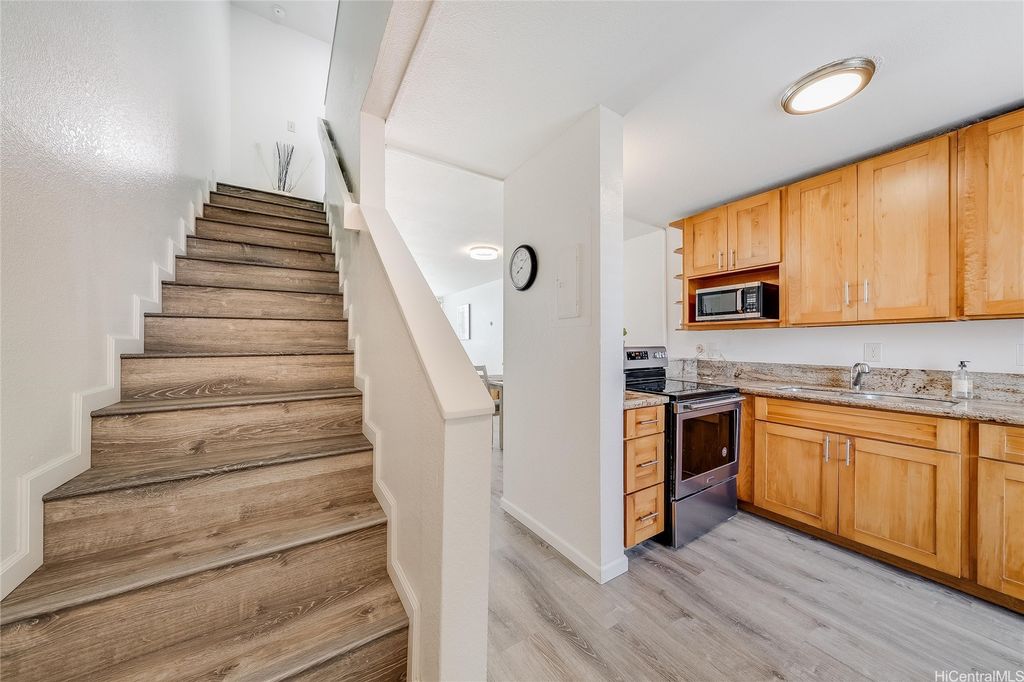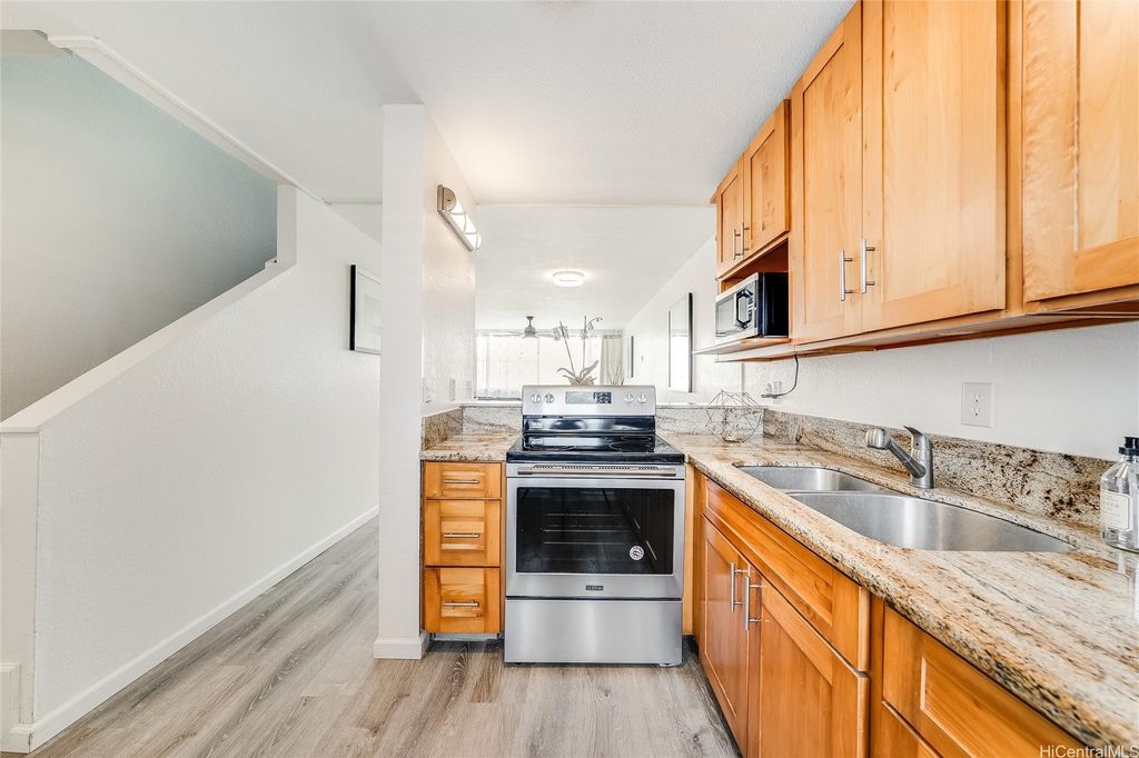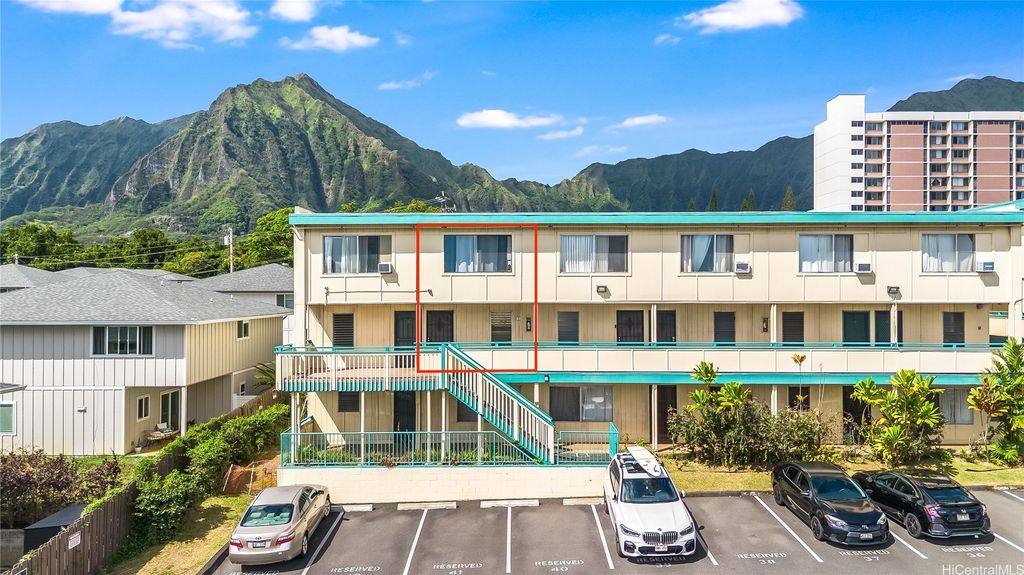 Welcome to the Windward side! 2.625% assumable VA loan (for qualified VA buyers) - offering incredible savings in today's market! Ideally located near shopping, dining, entertainment, banking, movie theaters, recreational areas, Windward Mall and Marine Corps Base Hawaii, this beautifully maintained home features a stunning mountain view backdrop. You'll find tasteful upgrades throughout, including luxury vinyl plank flooring, granite countertops, air-conditioned bedrooms for year-round comfort and modern tech touches like pre-wiring for a wall-mounted TV, optimized Wi-Fi signal, and Bluetooth audio in the bathroom. Natural light and cool breezes pour in through large windows. Generous closet space and a spacious under-stair storage area provide excellent functionality. Enjoy the well-maintained grounds, a recently renovated pool, and a Community Room for your private events. With a current loan balance of $347,864 as of 9/1/25, this home offers exceptional value and a pet-friendly policy (verify). "Other Fees" include 2 special assessments ending in December (total $282.09/mo through 12/2025). Priced well below tax-assessed value - don't miss your opportunity to call this home!