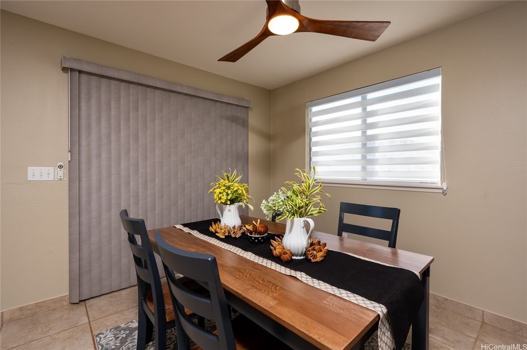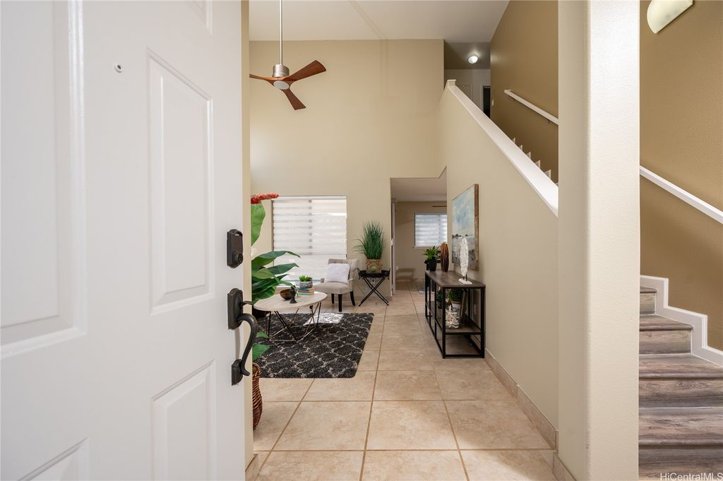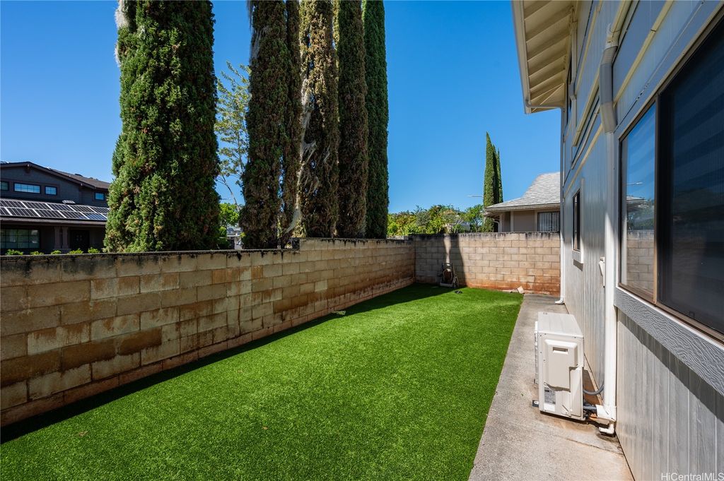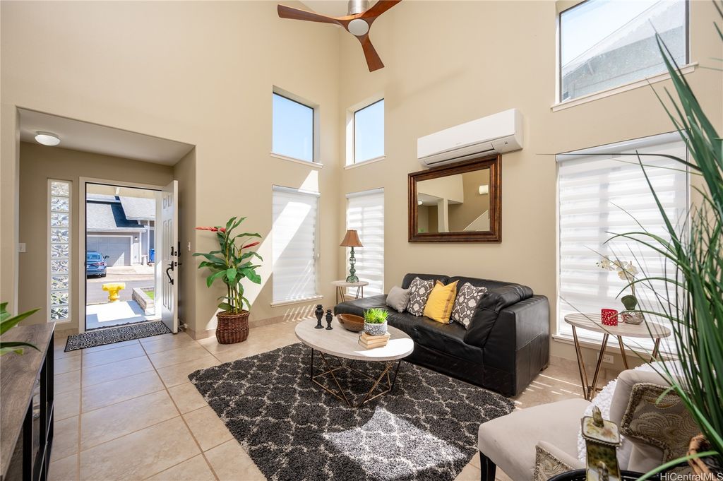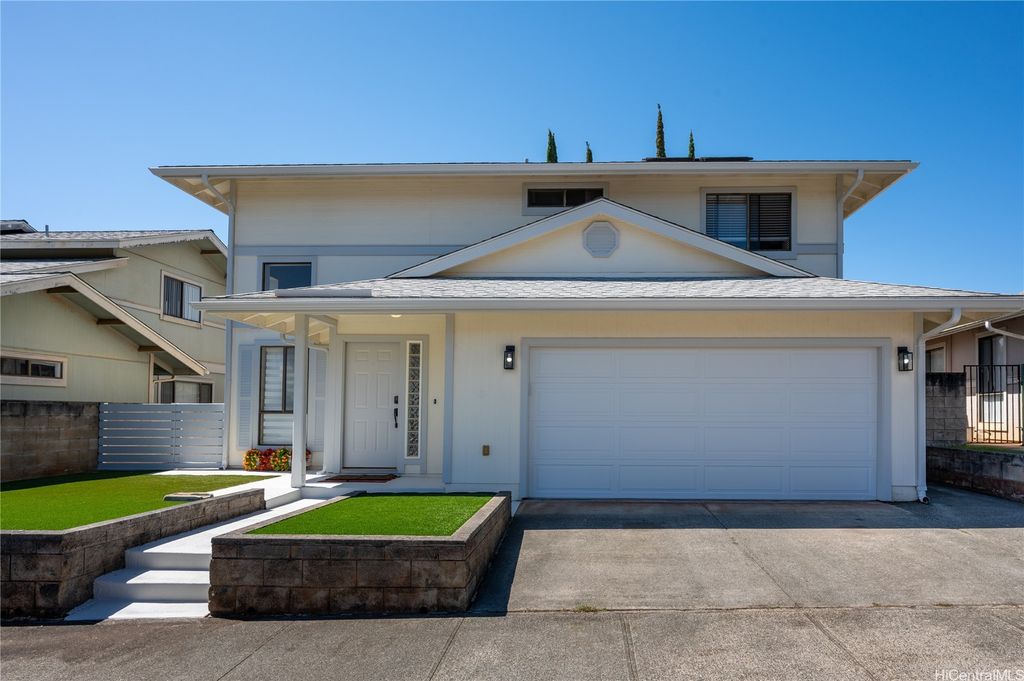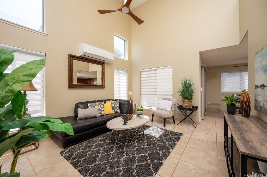 Largest Hoaloha Ike model with brand new interior paint and many upgrades. Beautifully renovated kitchen, ceramic tile and luxury vinyl flooring, new split air conditioning, and solar water heater (2 panels) enhance this wonderful Mililani Mauka home! The elegant double-height living room welcomes your guests, and the covered lanai flows from the dining and kitchen for indoor/out-door living. A pet will love your walled gated back yard. The location is excellent on a charming small street off a wider, landscaped road in a beautiful neighborhood. There is no back neighbor, for the feeling of openness and elbow room (the house backs up on a slight rise above another quiet street). Corner bedrooms with cross breezes will remind you why you live in this prized neighborhood. One owner...well maintained and loved. Don't miss this home! First OPEN Sunday 9/7 from 1-4.