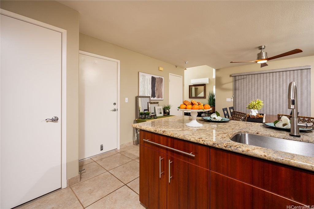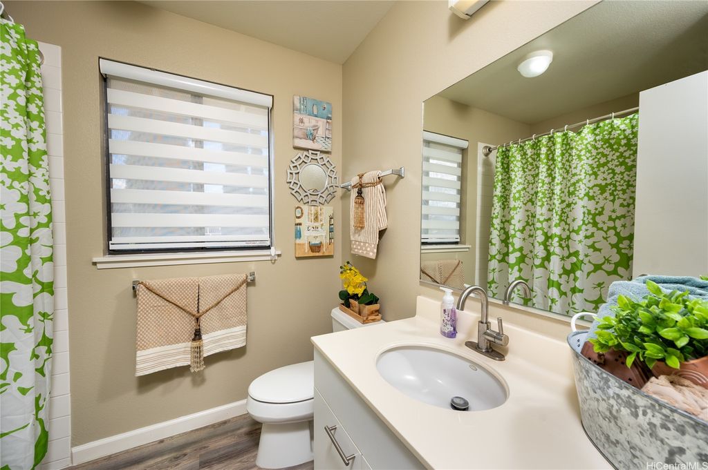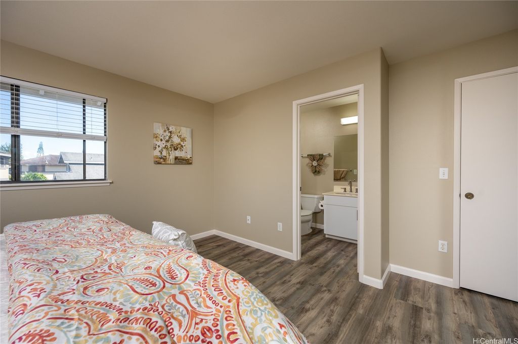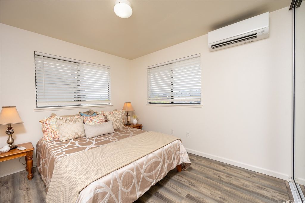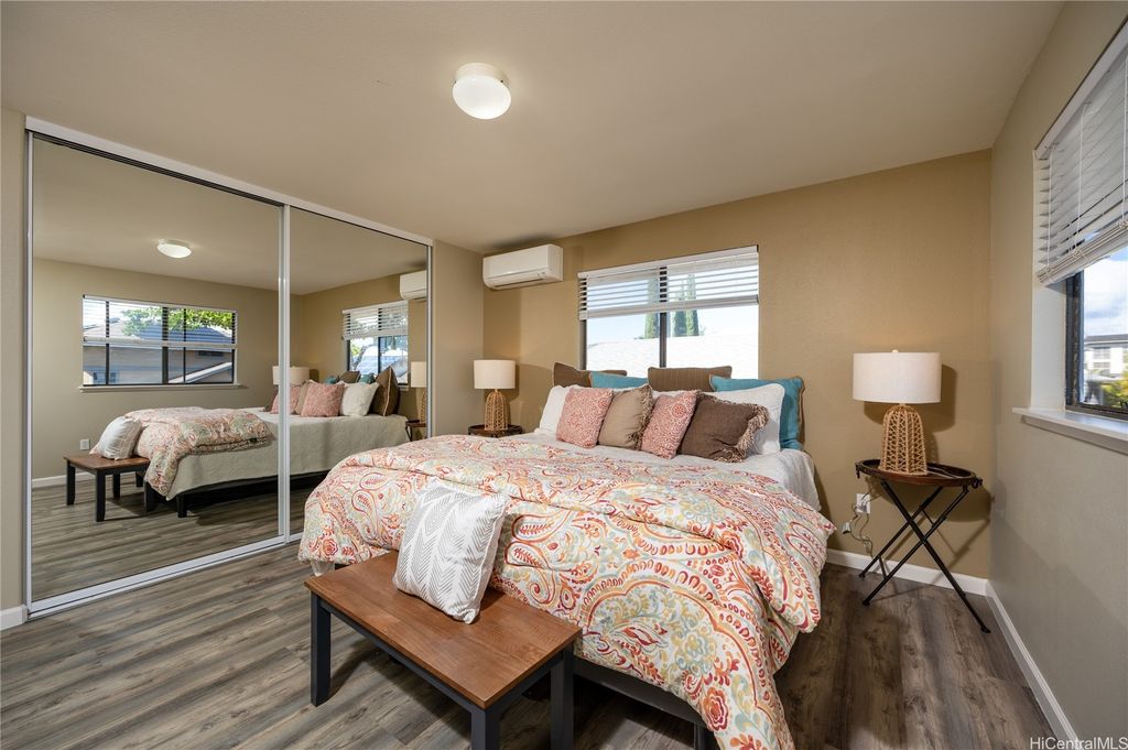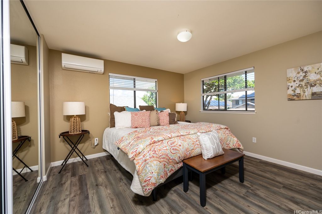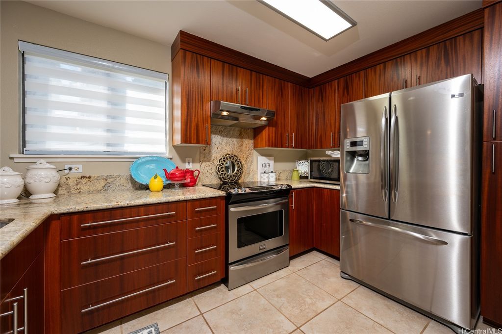 Largest Hoaloha Ike model with brand new interior paint and many upgrades. Beautifully renovated kitchen, ceramic tile and luxury vinyl flooring, new split air conditioning, and solar water heater (2 panels) enhance this wonderful Mililani Mauka home! The elegant double-height living room welcomes your guests, and the covered lanai flows from the dining and kitchen for indoor/out-door living. A pet will love your walled gated back yard. The location is excellent on a charming small street off a wider, landscaped road in a beautiful neighborhood. There is no back neighbor, for the feeling of openness and elbow room (the house backs up on a slight rise above another quiet street). Corner bedrooms with cross breezes will remind you why you live in this prized neighborhood. One owner...well maintained and loved. Don't miss this home! First OPEN Sunday 9/7 from 1-4.